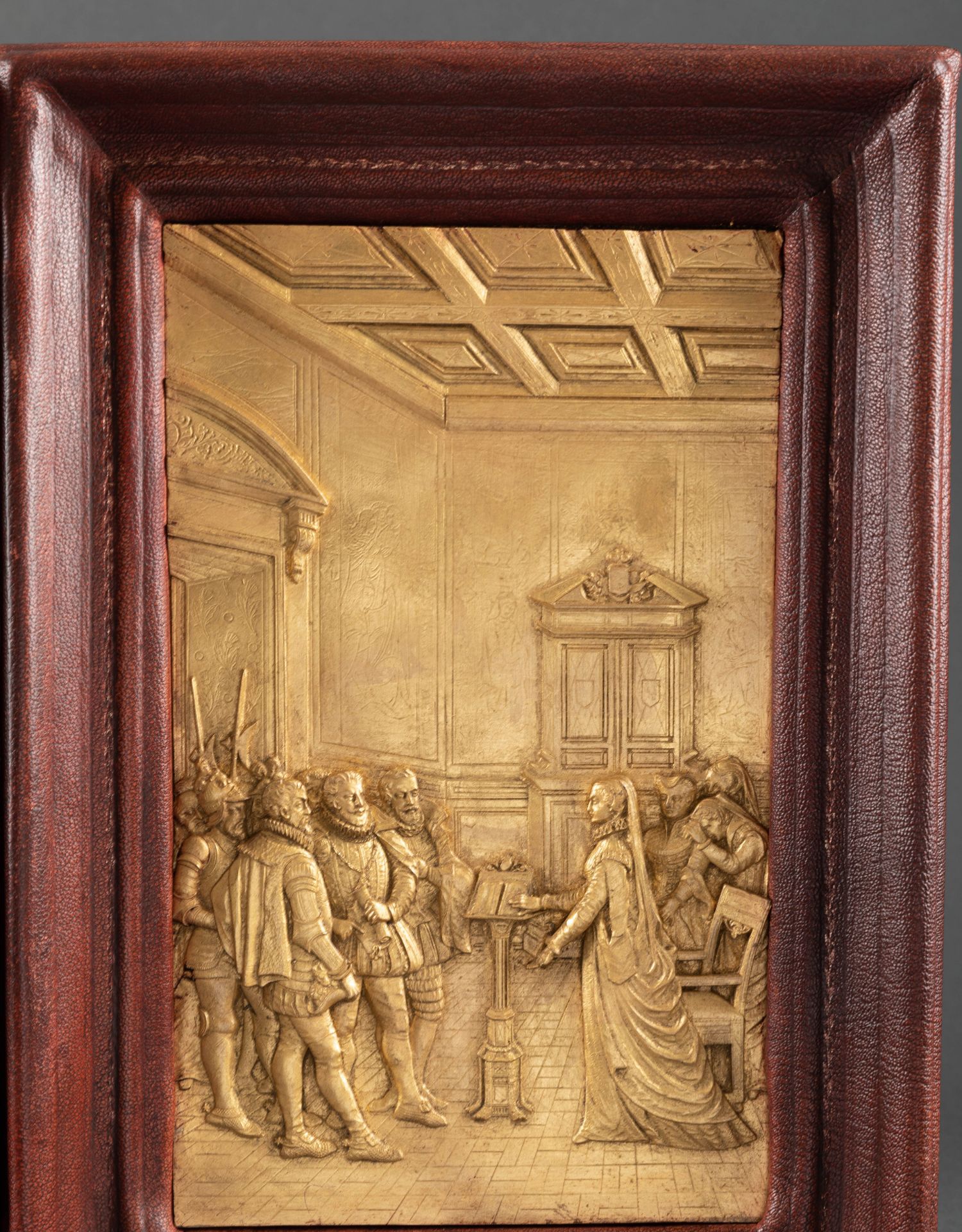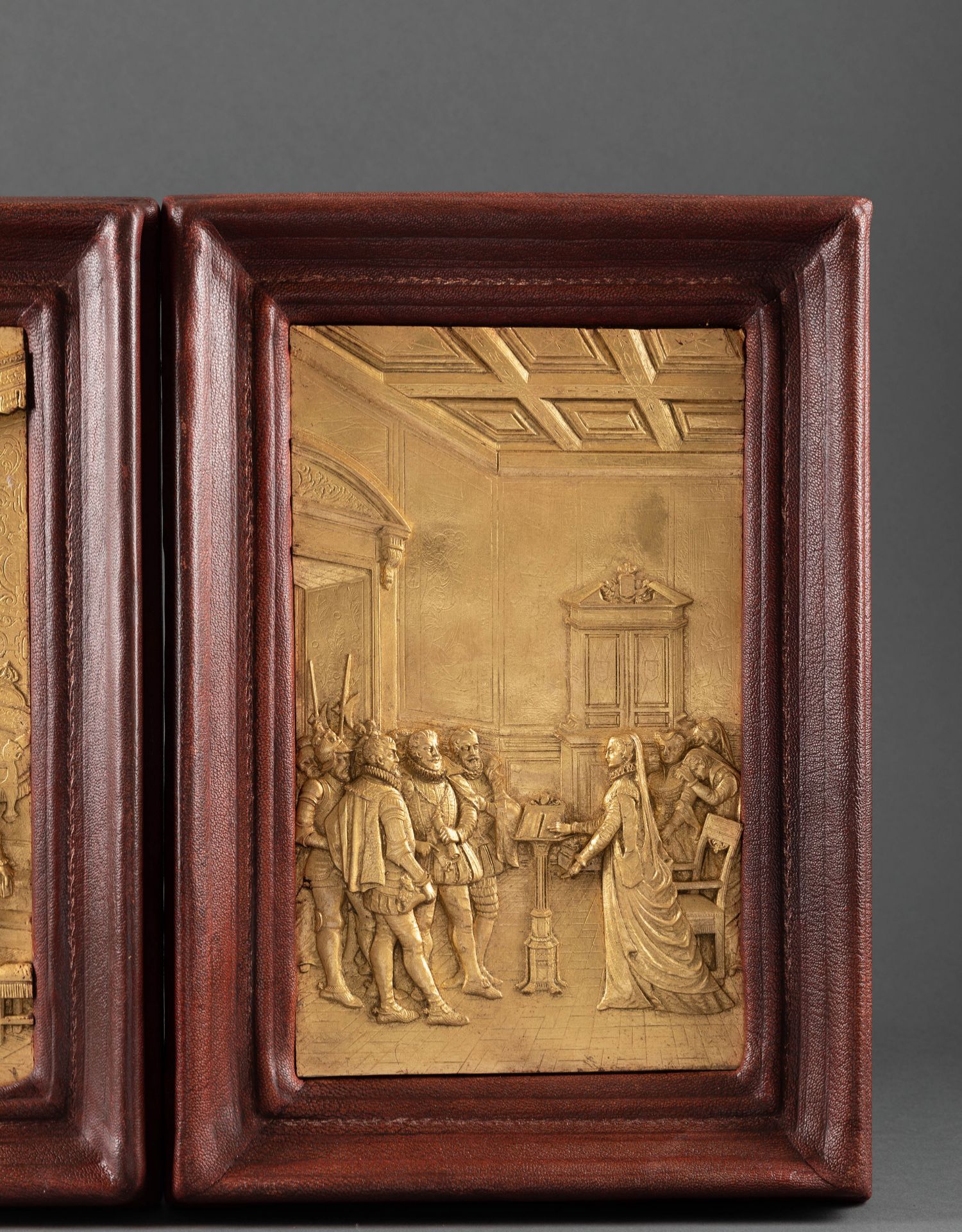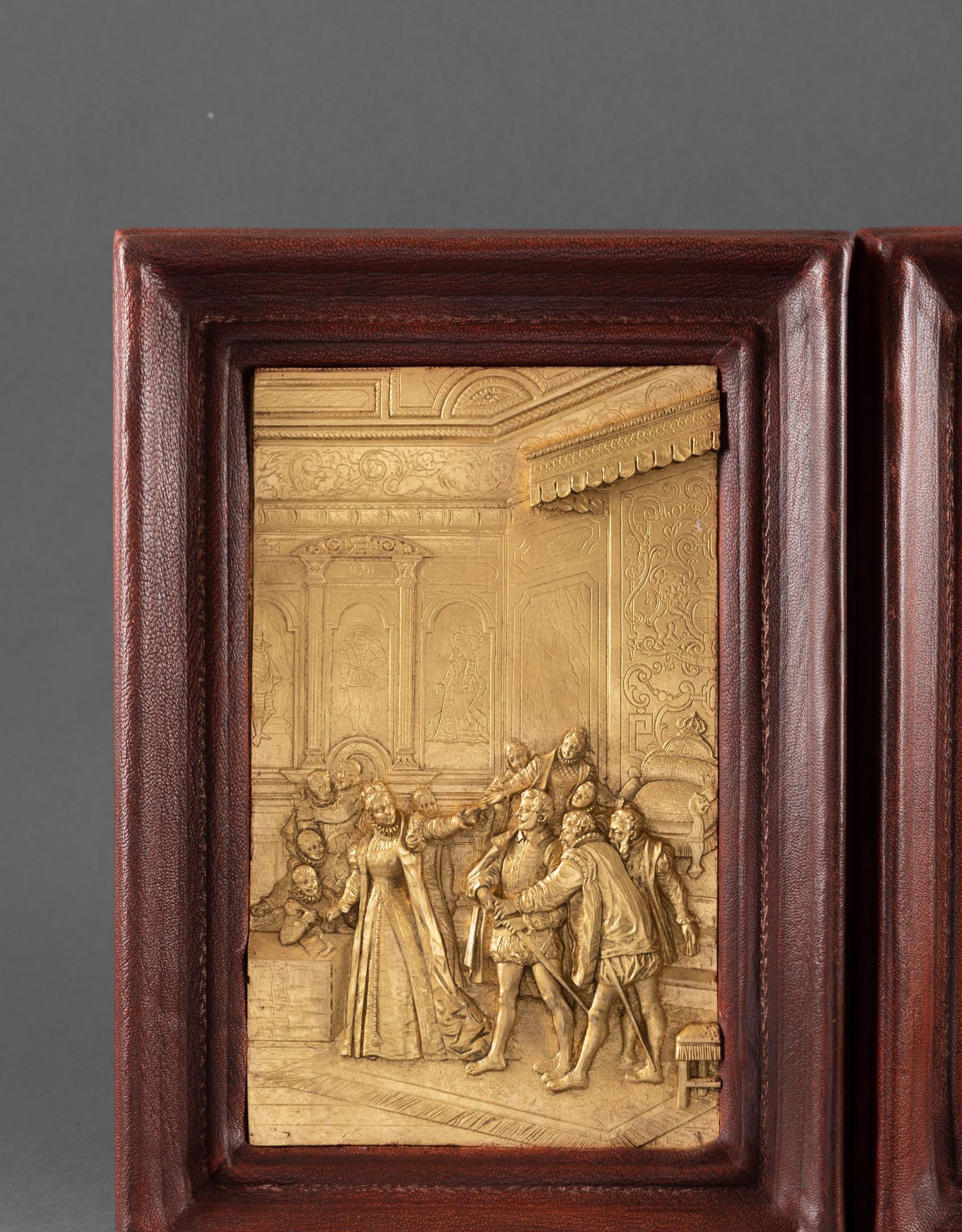 独角鹿西洋古董家居装饰19世纪法国金属镀金皇室主题浮雕挂饰一对