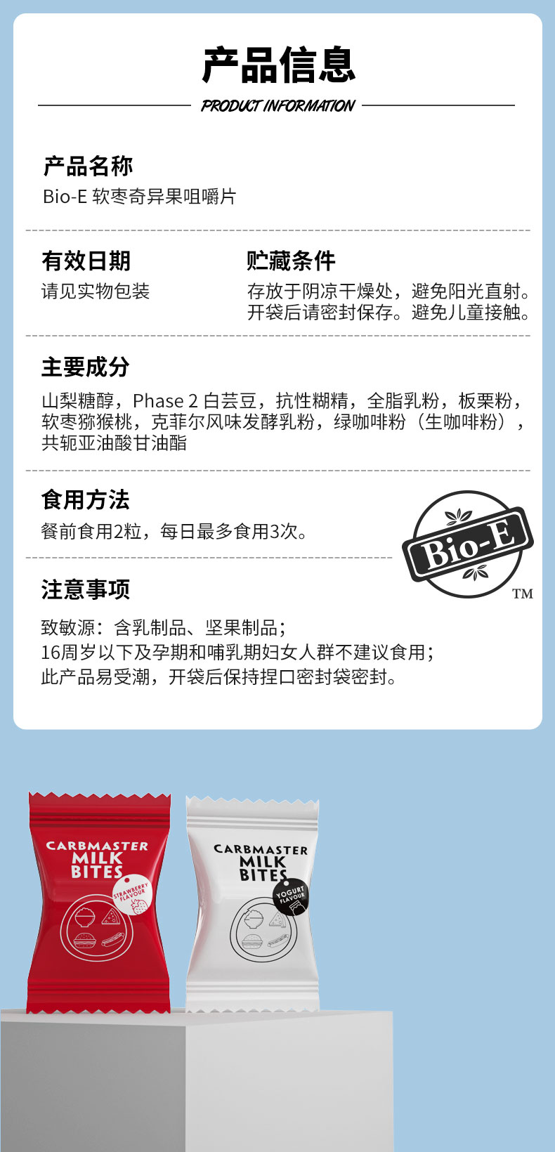 【阻断热量 守护吃货的尊严】Bio-E白芸豆狙击片 3级断控4步减脂 每片仅7.31卡 断糖排油轻享美食 酸奶/草莓两口味可选