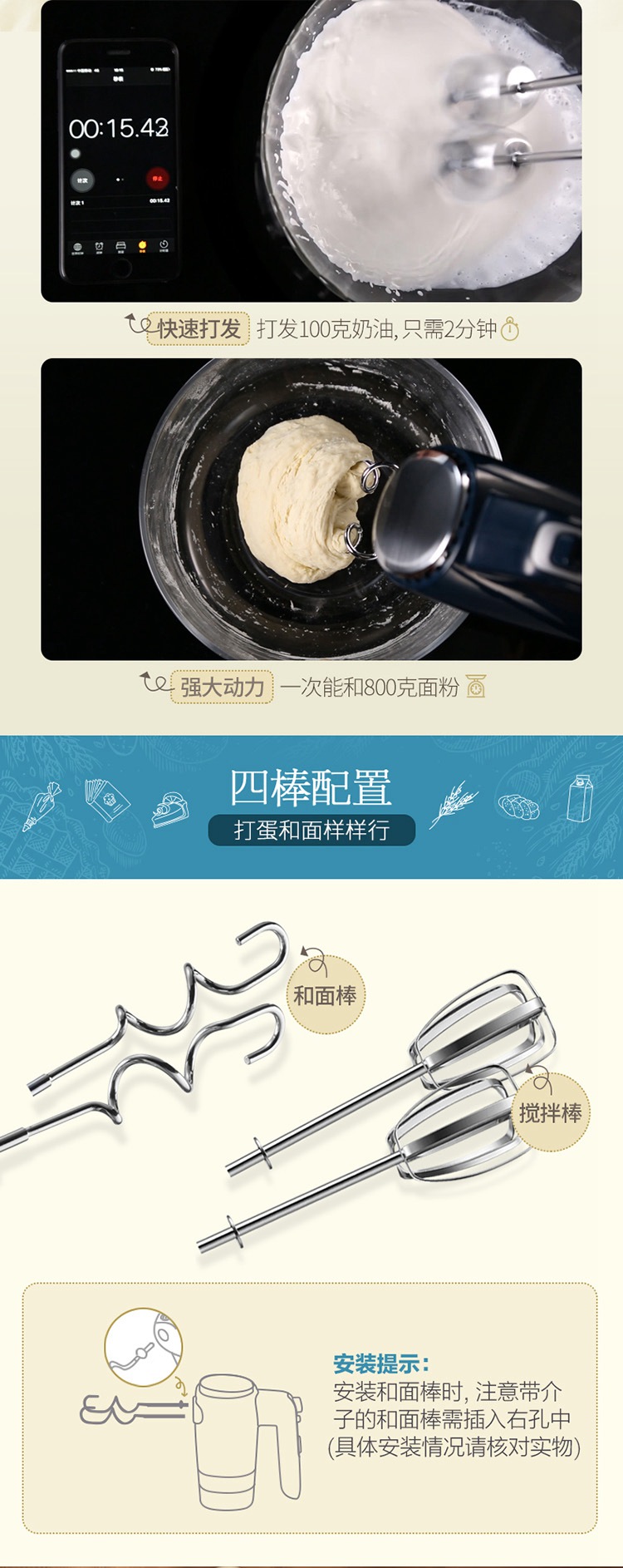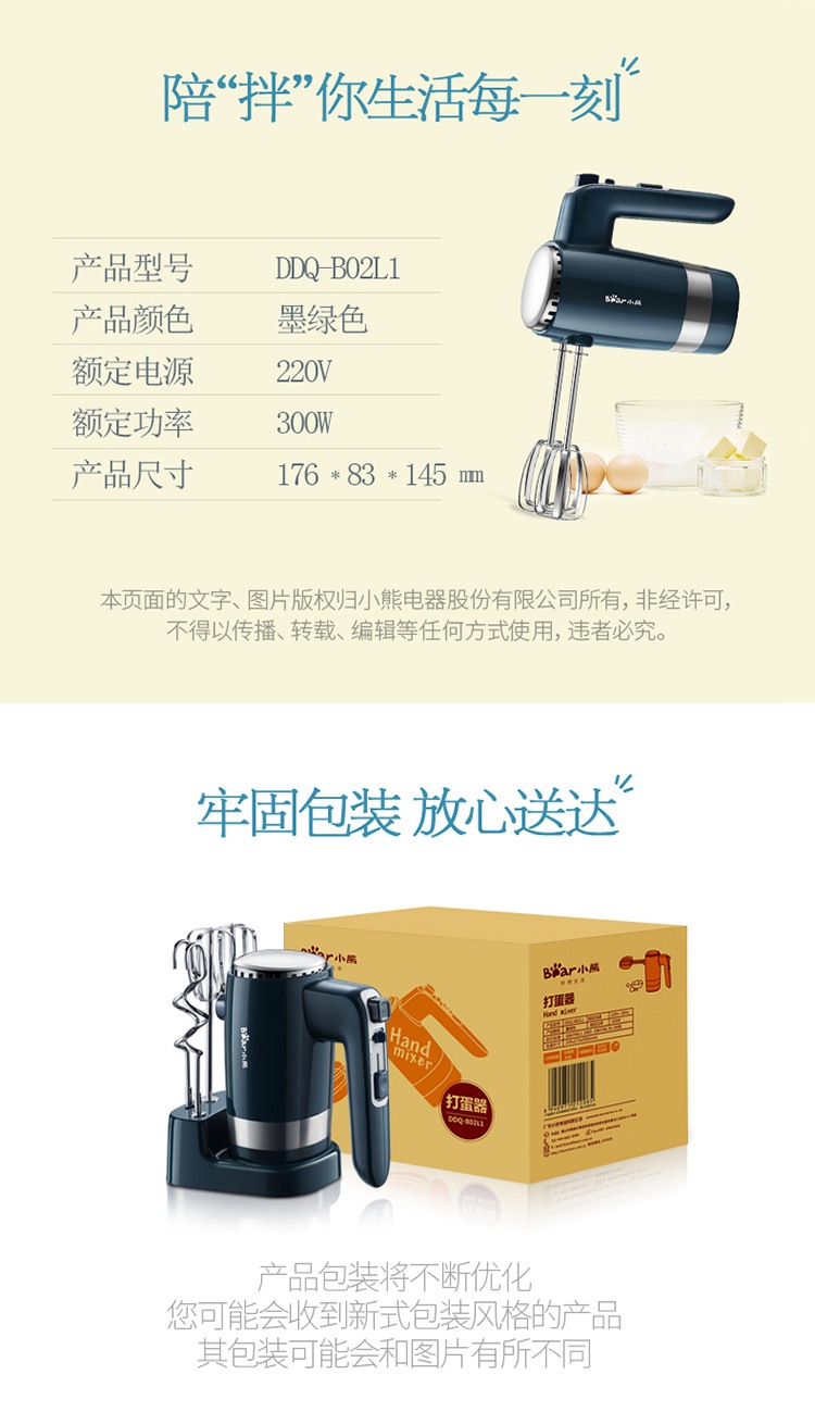 小熊(Bear)打蛋器电动家用奶油奶盖打发器和面烘焙手持搅拌器DDQ-B02L1
