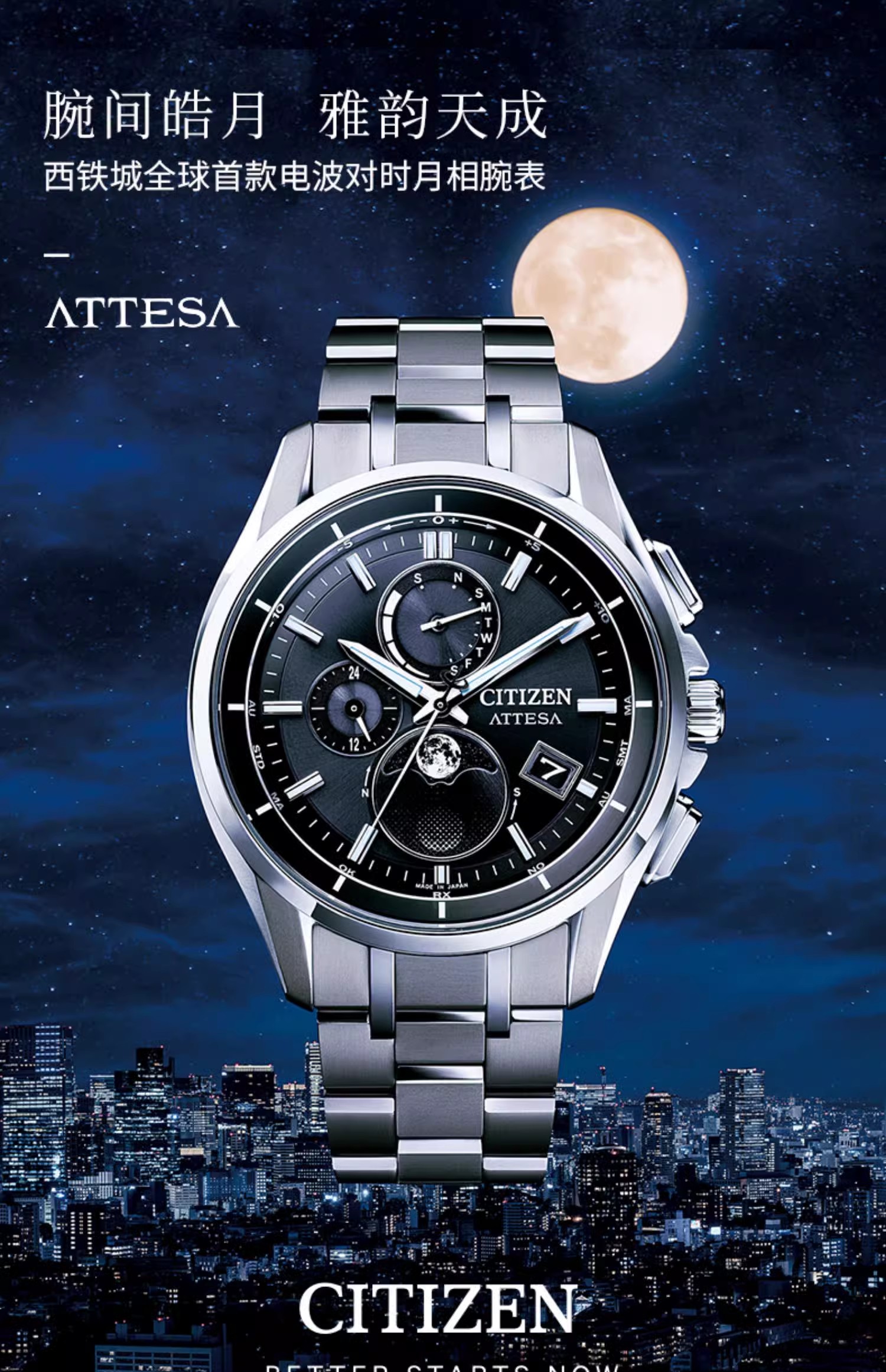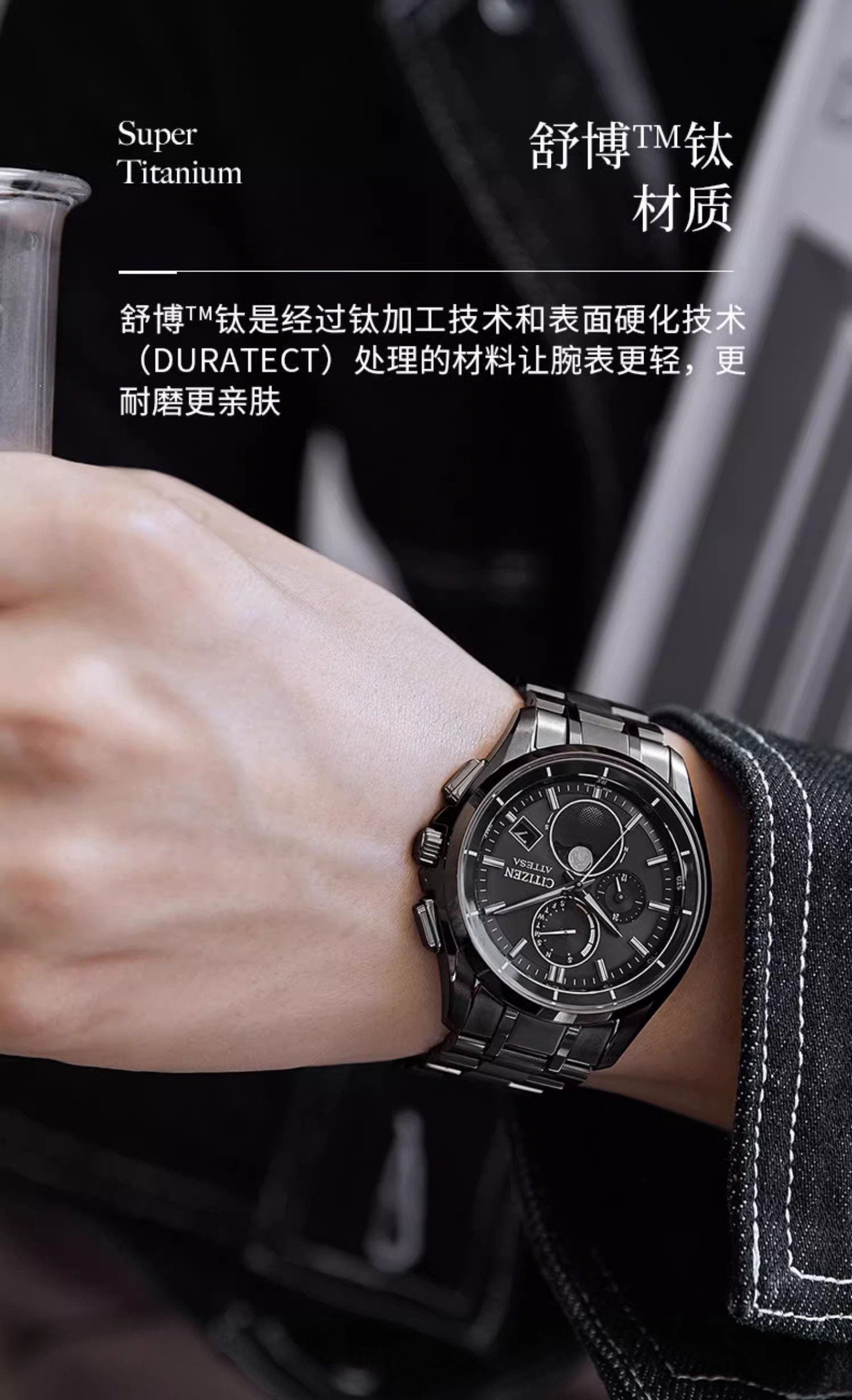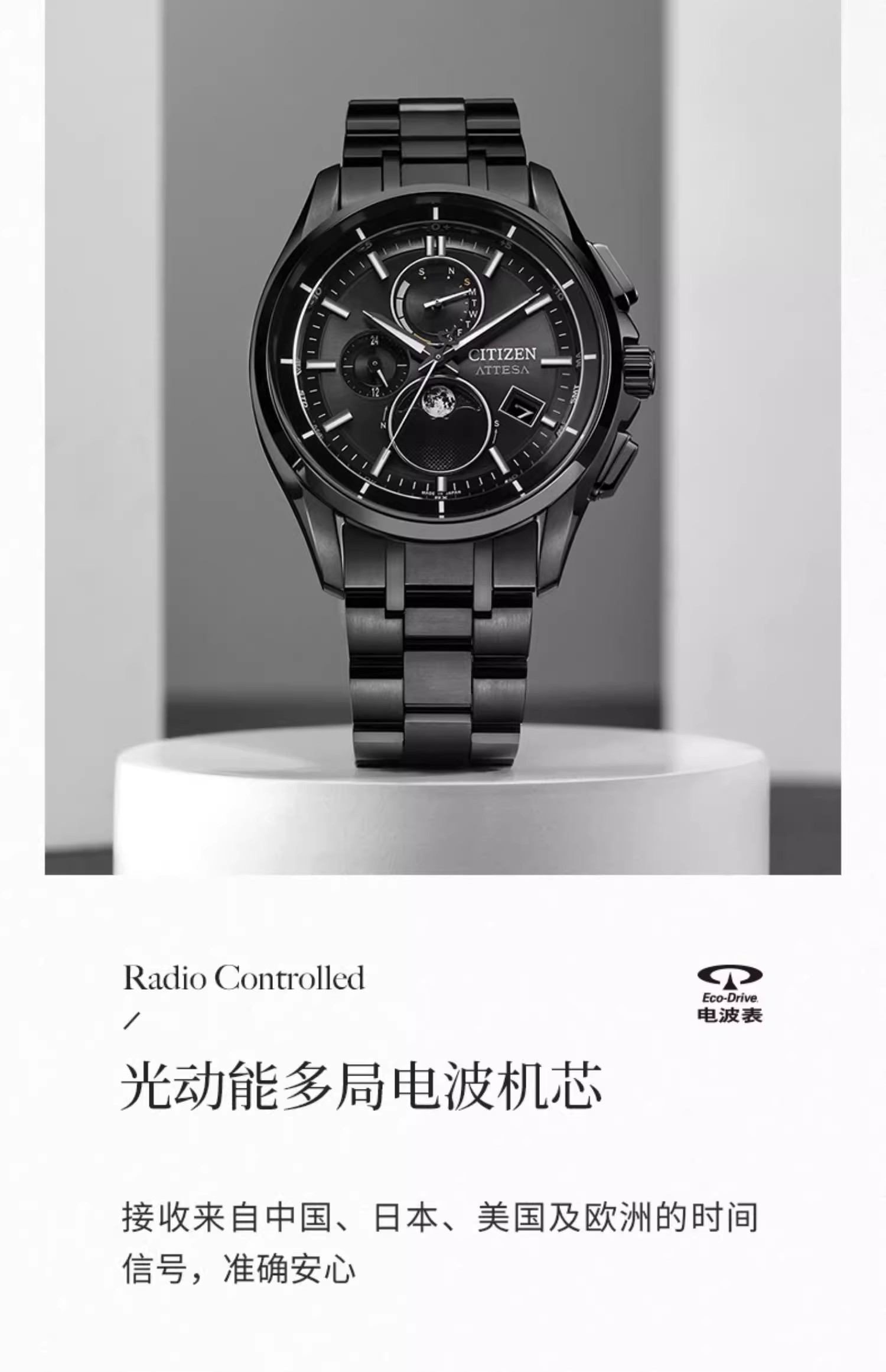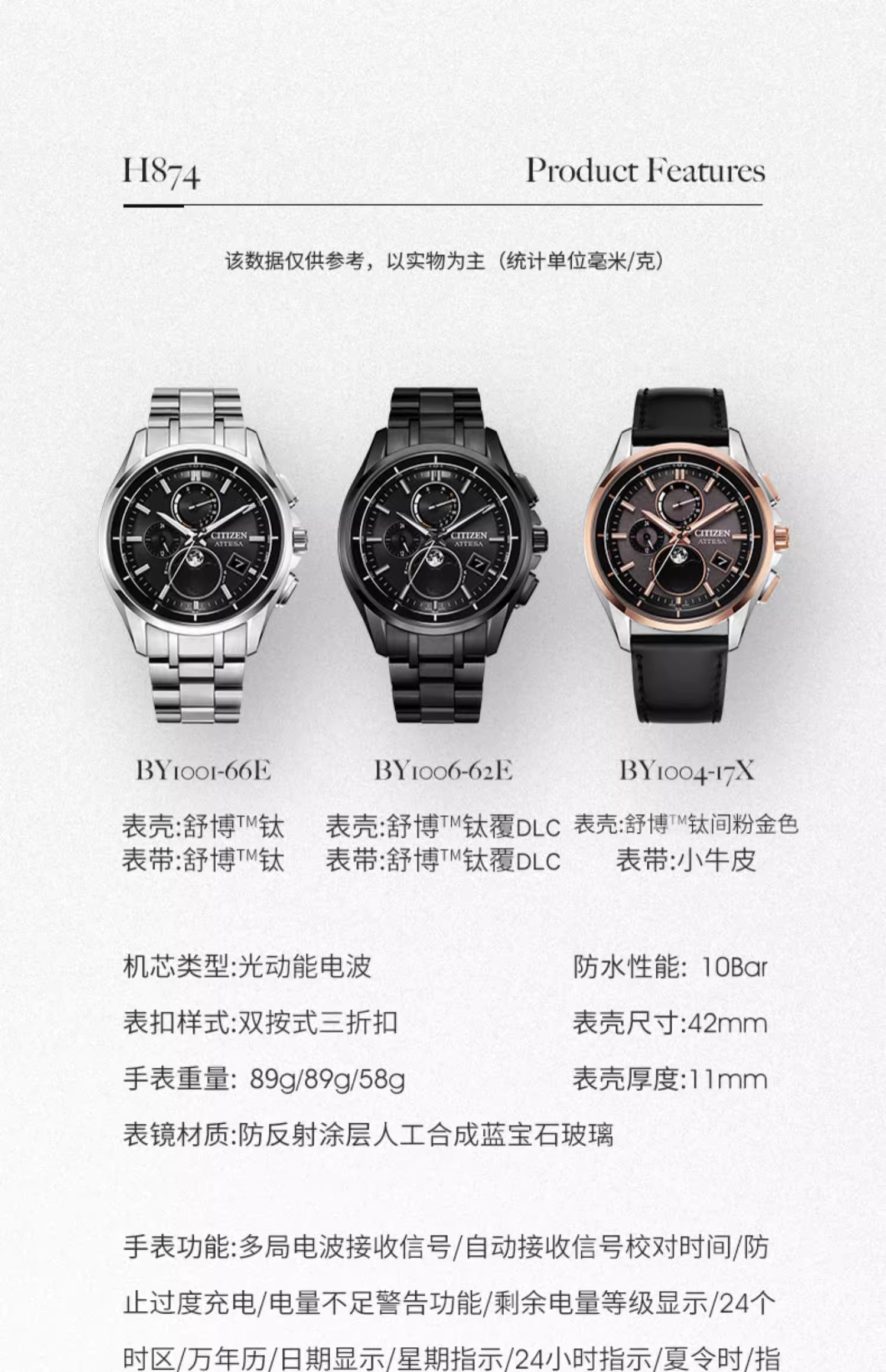 西铁城/CITIZEN光动能电波对时月相舒博™钛BY1001-66E