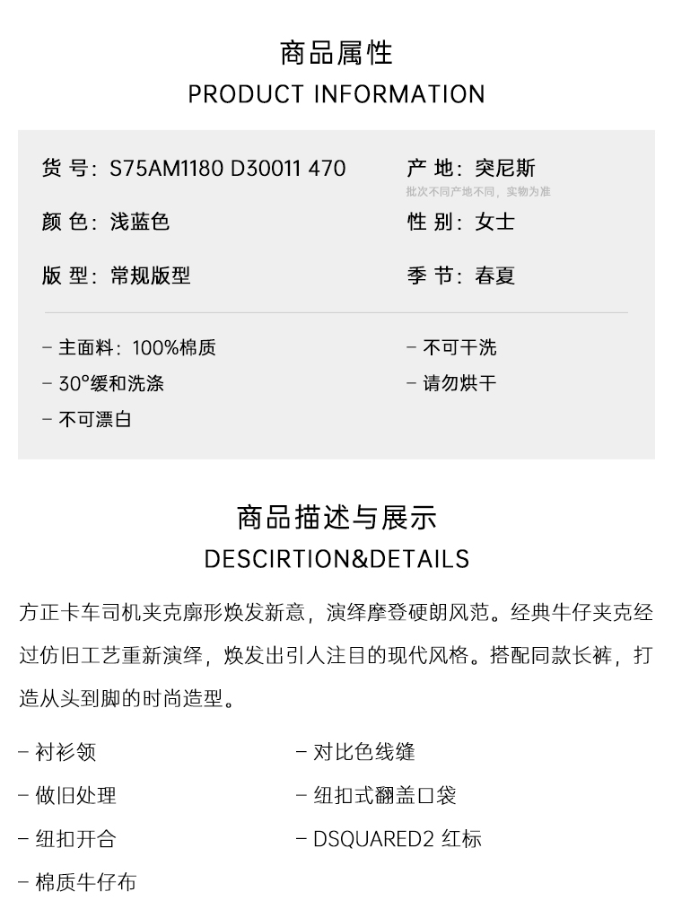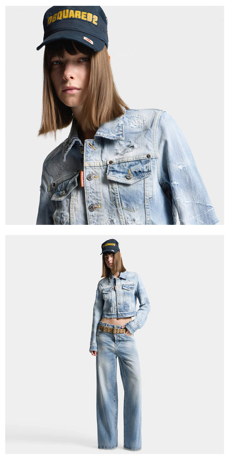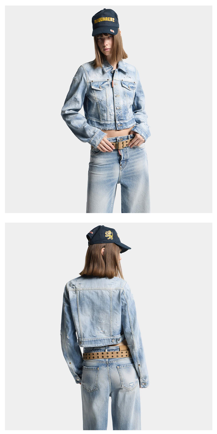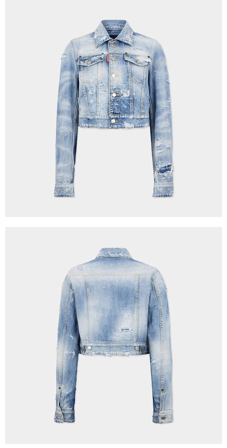 DSQUARED2 女士字母徽标标签做旧牛仔夹克外套 浅蓝色 S75AM1180 D30011 470