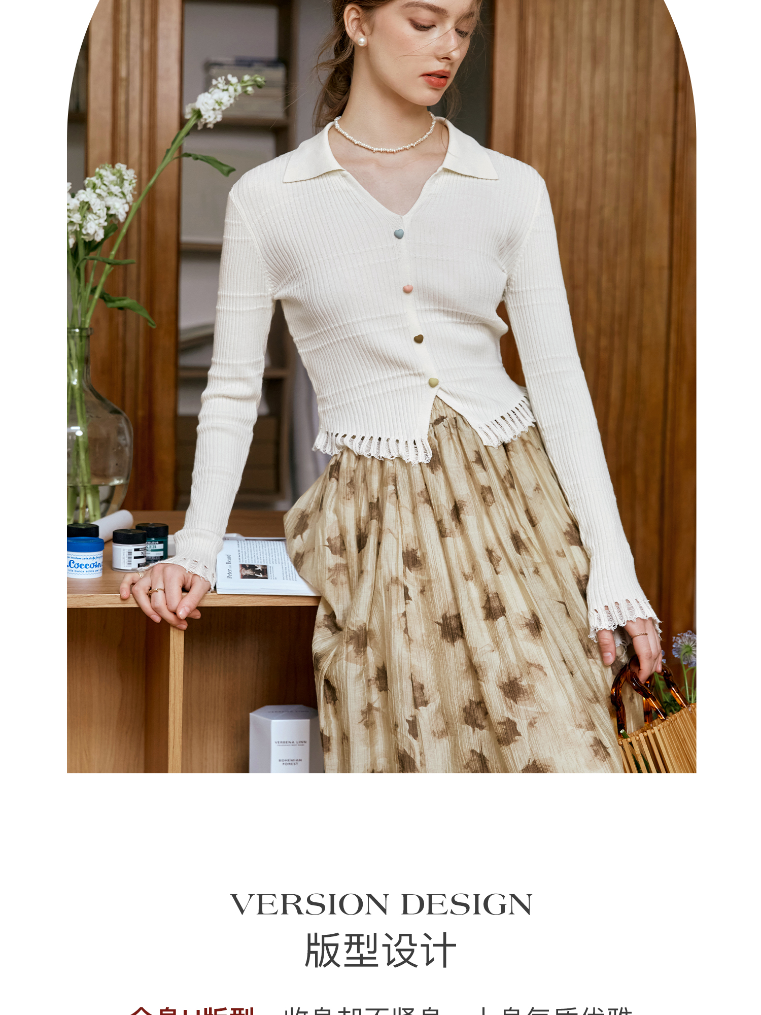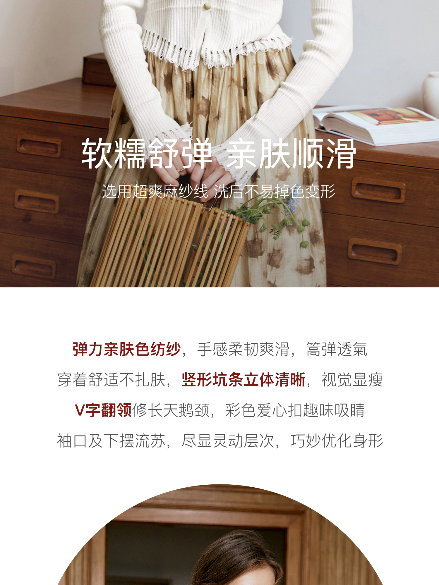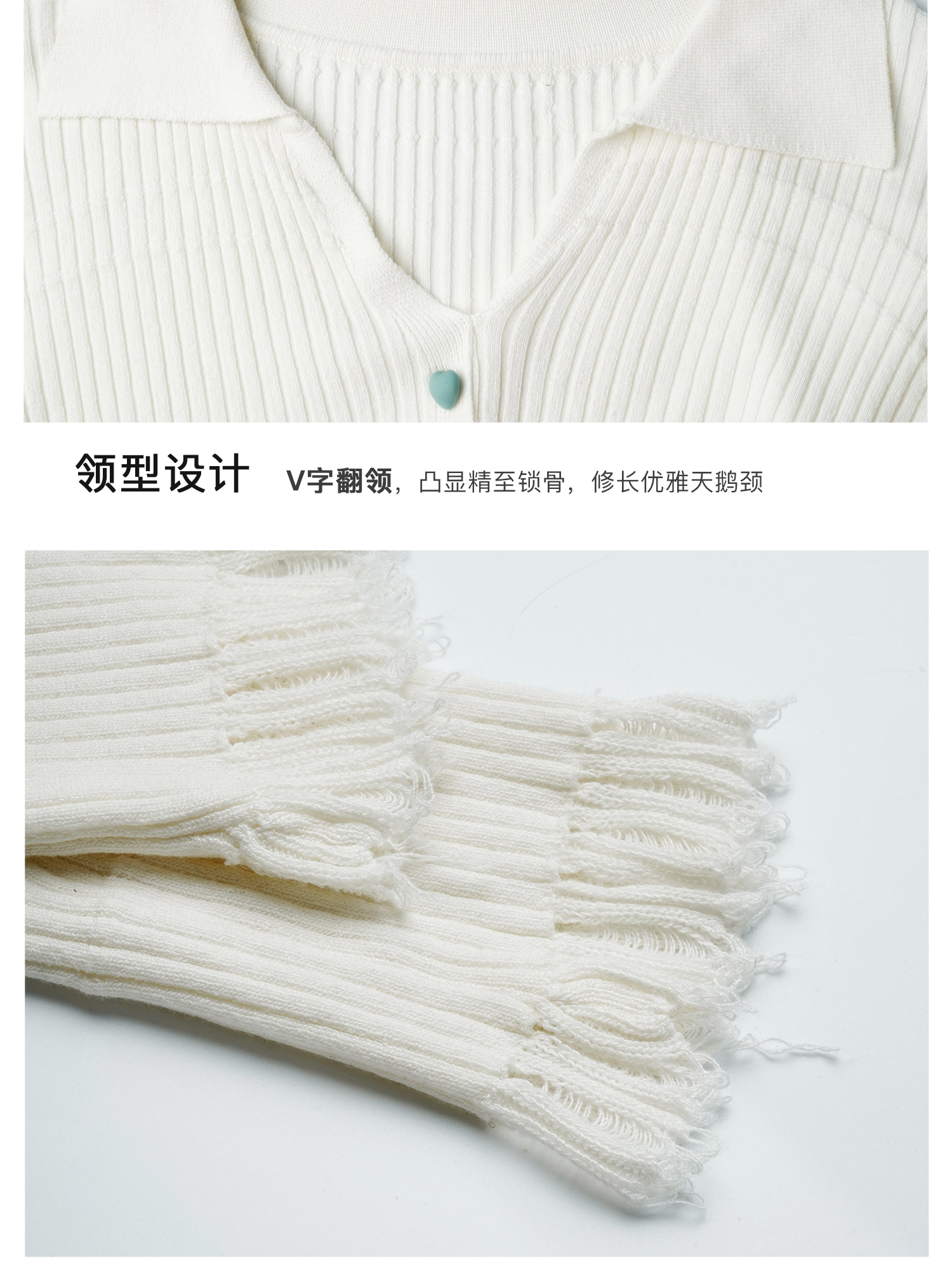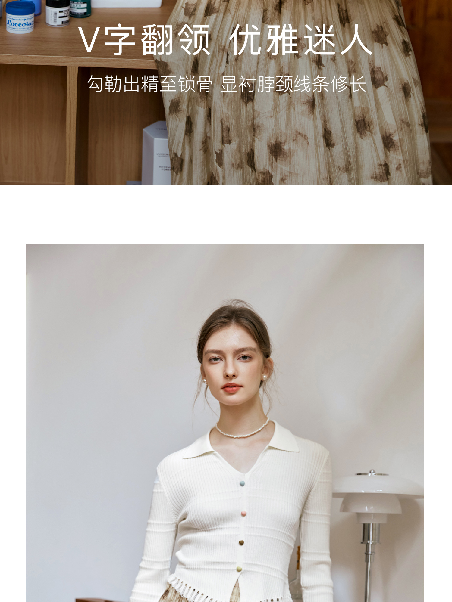 OLrain欧芮儿法式杏色v领针织衫女秋季2024新款修身收腰翻领上衣