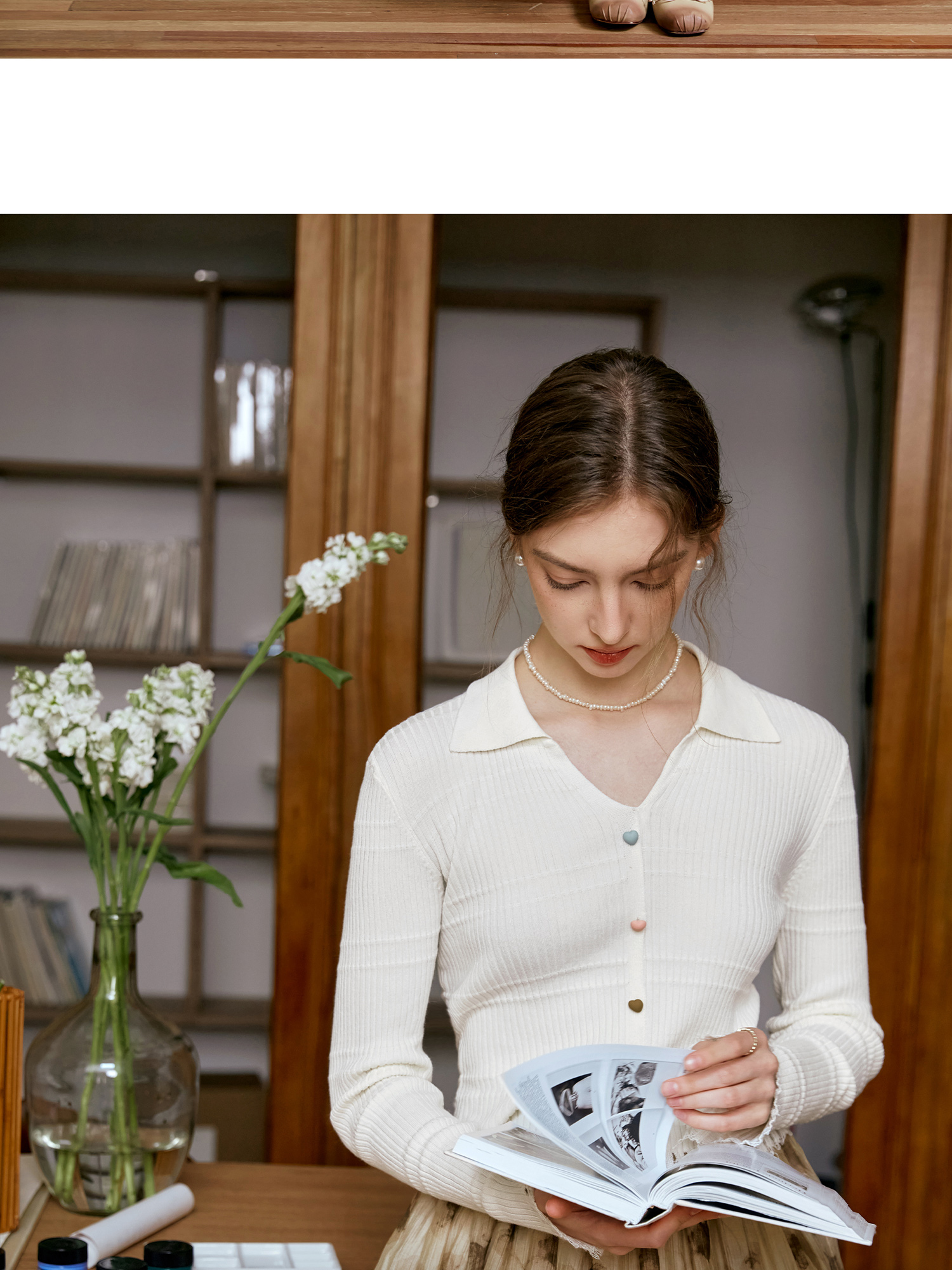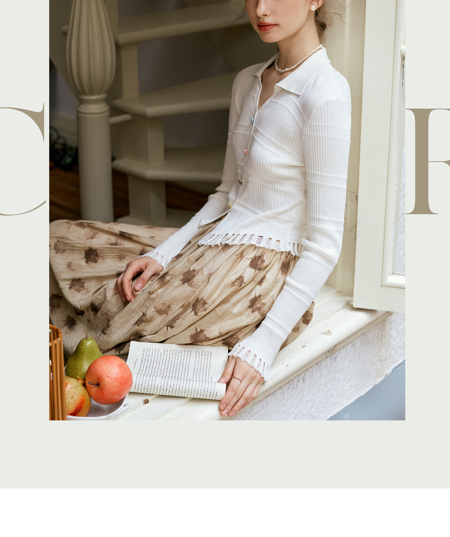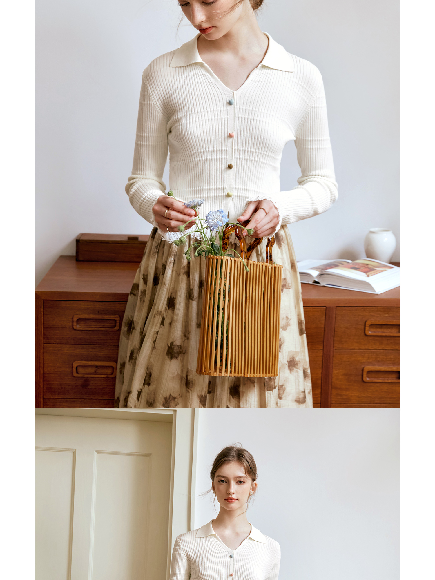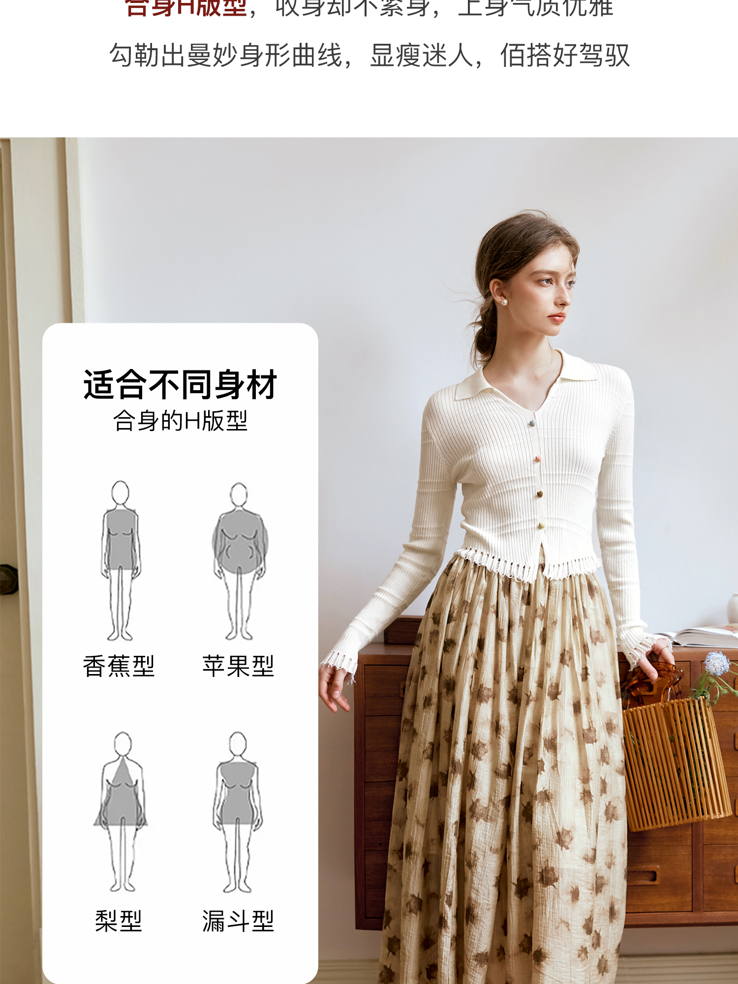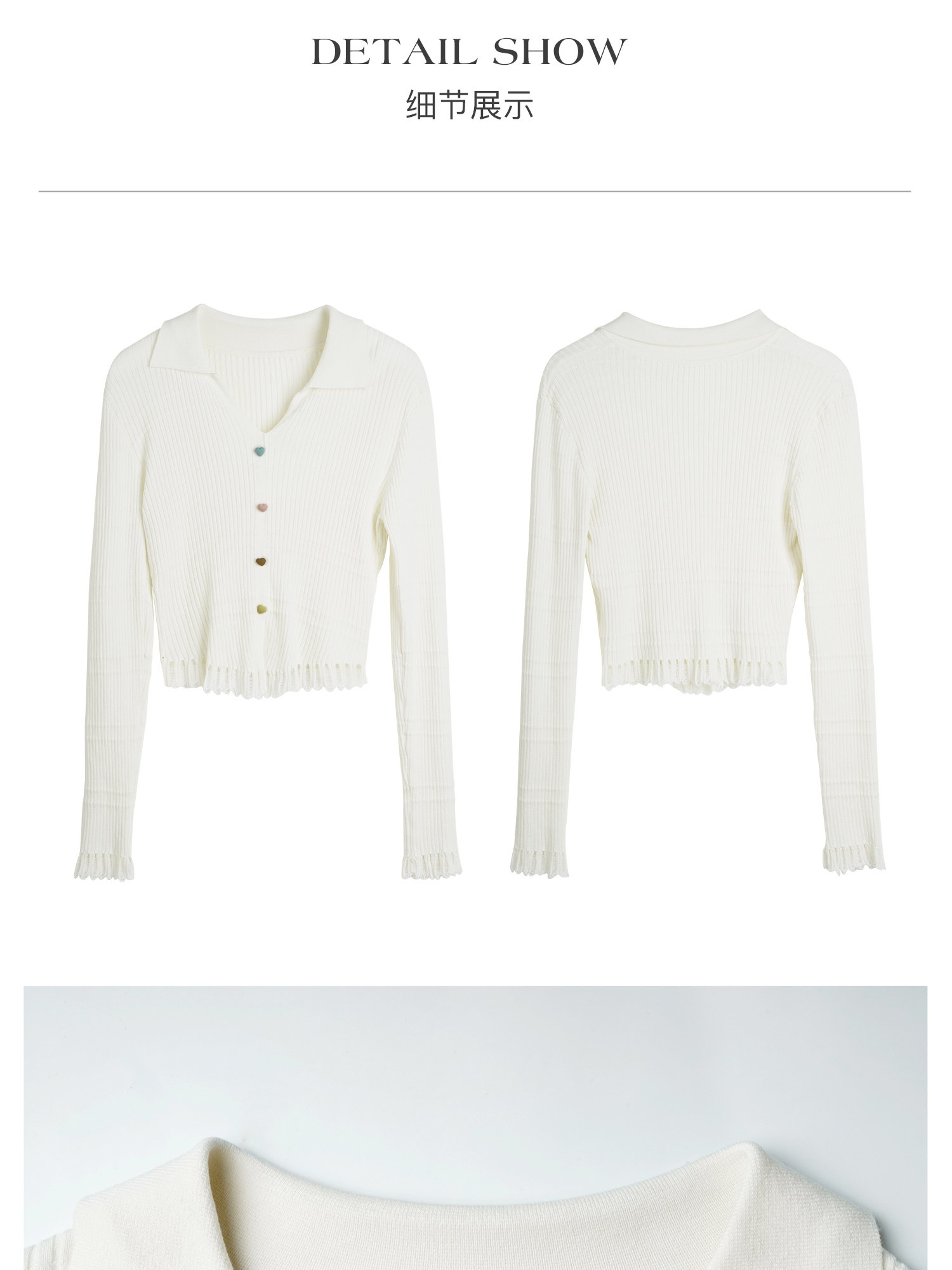OLrain欧芮儿法式杏色v领针织衫女秋季2024新款修身收腰翻领上衣