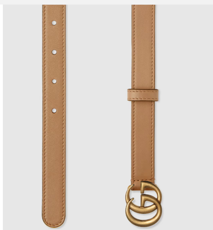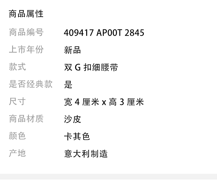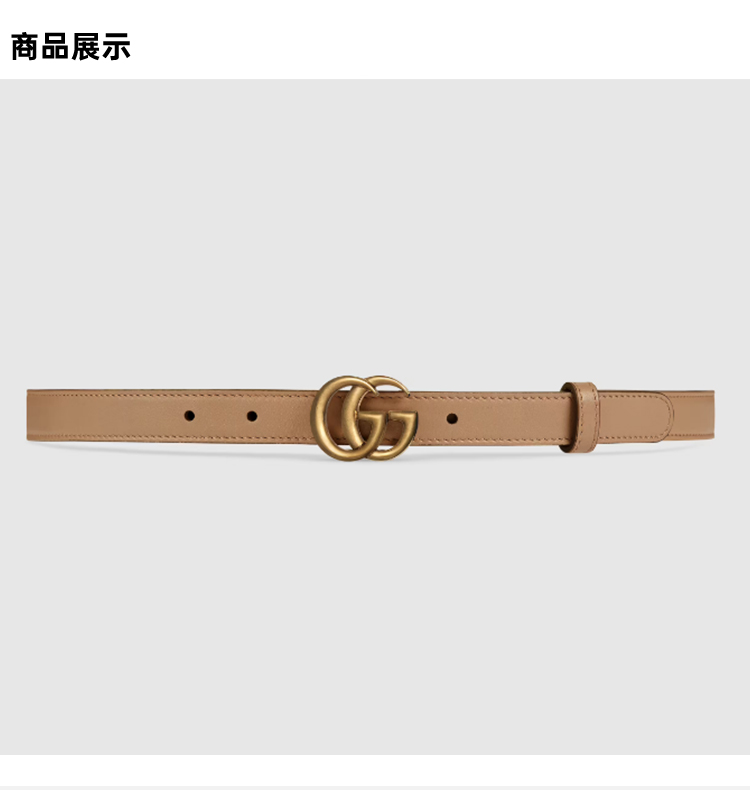 GUCCI 古驰 双G带扣细版腰带 女士腰带 卡其色 409417 AP00T 2845