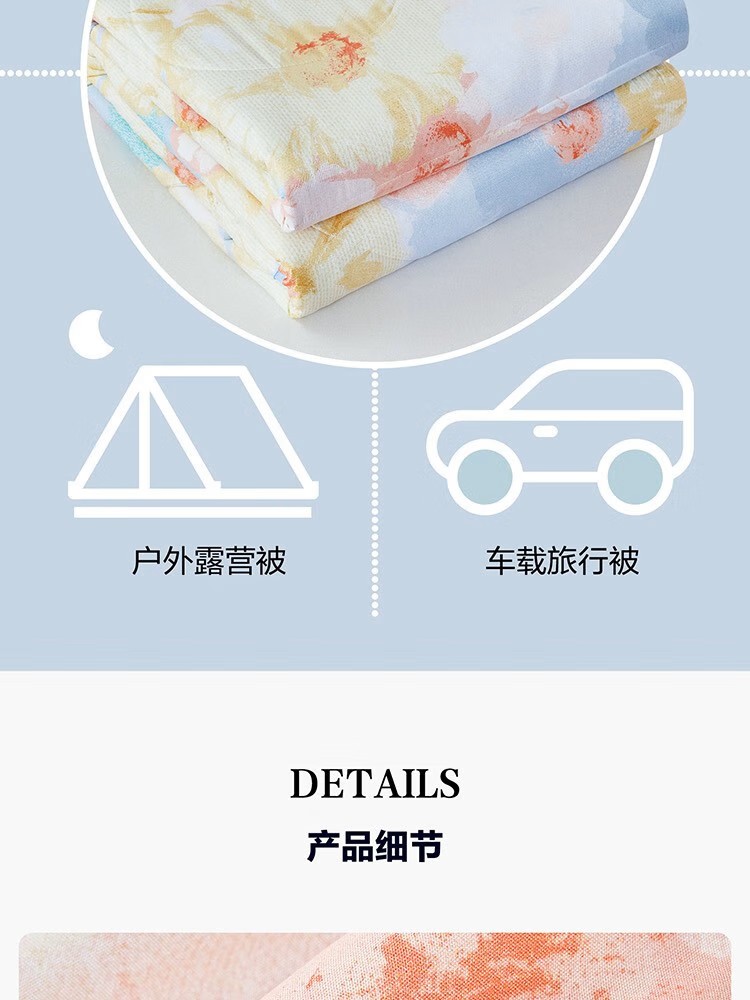 【罗莱 花锦如梦可水洗夏被柔软舒适空调被】蓬松轻盈 透气不闷热