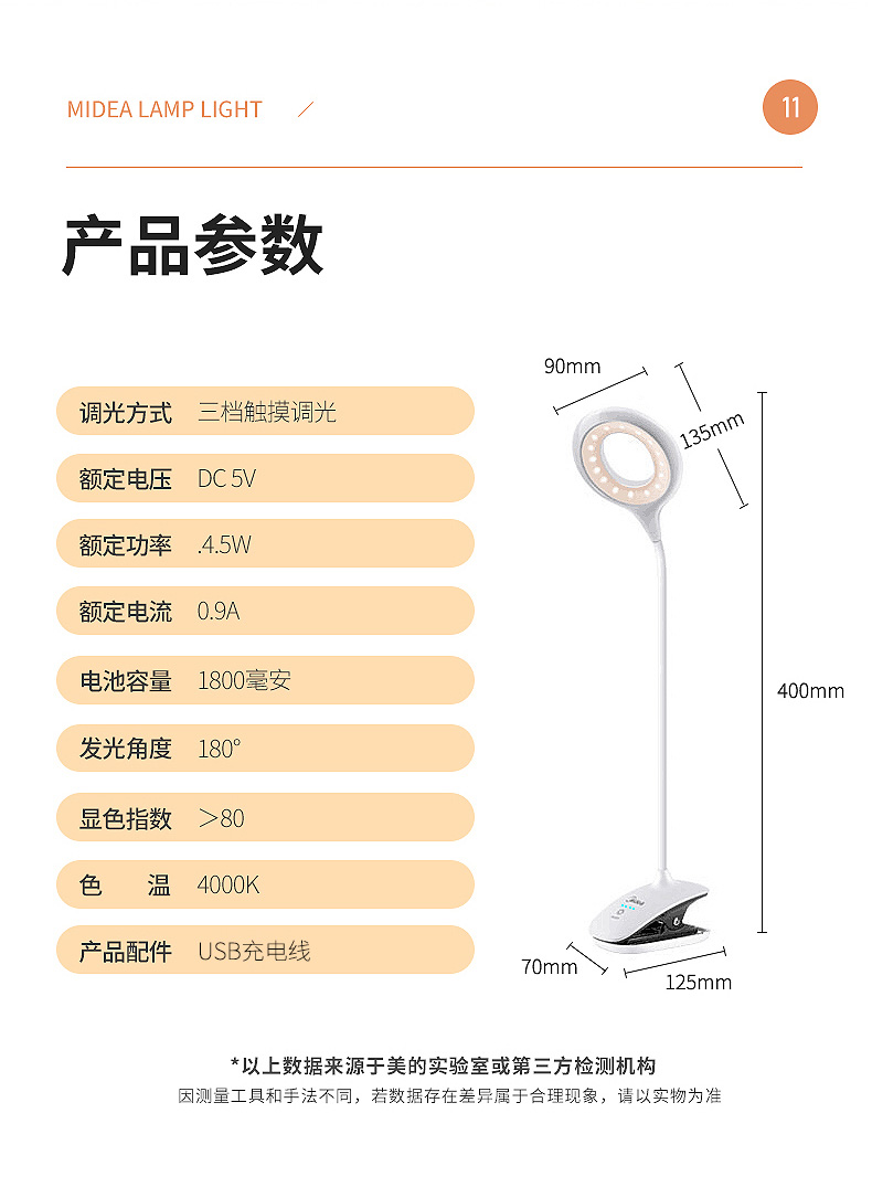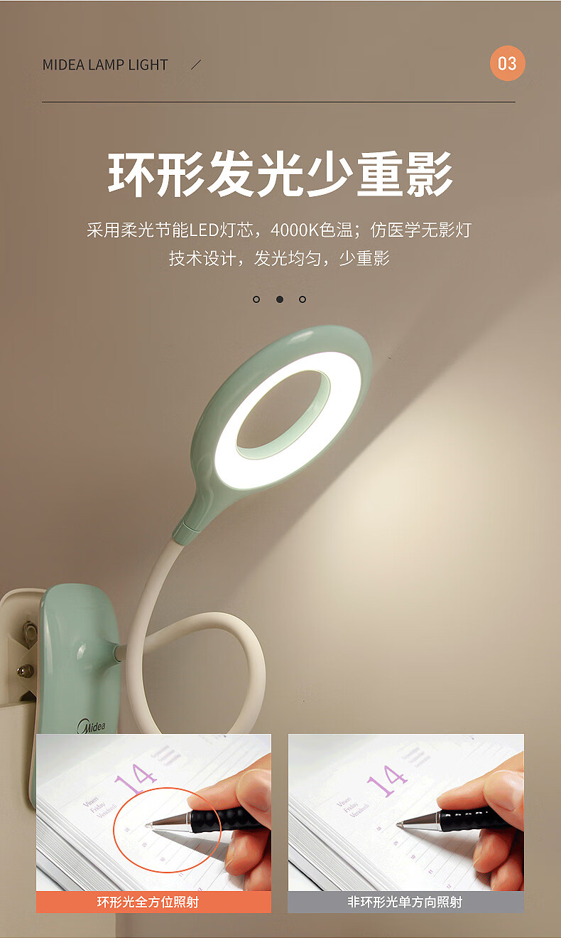 【分仓直发包邮】美的夹子台灯MTD5-M/K-28 星耀(颜色随机)