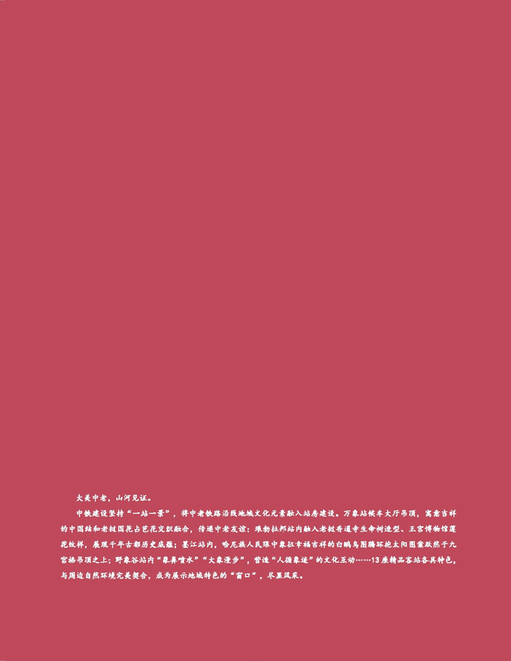 本书为中老铁路线上站房建设风采画册。中铁建设承建了中老铁路线上包含起止站昆明南站、老挝首都万象站在内的海内外12座新建站房及数十座独具特色的生产生活房屋、调度中心房屋、总部基地等附属工程。全书围绕站房精美的图片、建筑设计理念、建设过程中建设者们的拼搏奋斗精神展开介绍,以国内段和国外段沿线站房为顺序,围绕每个站房的主站房、建设、设计细节进行展示。书中将始发和终点站的站房设计为立体图,装帧印制以立体呈现,设计新颖、装帧创新。