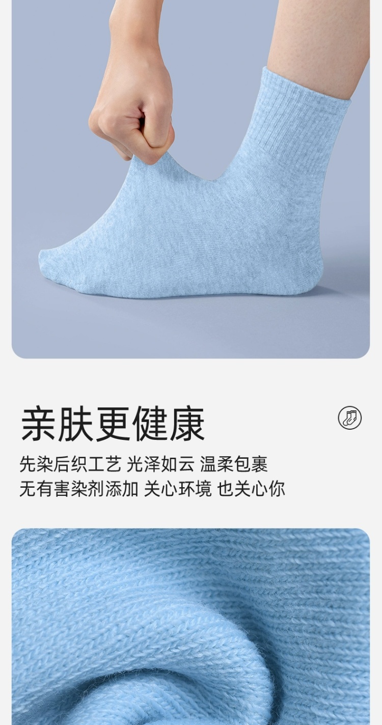 洁丽雅4双装纯棉男士中筒袜简约纯色舒适亲肤高弹百搭男袜