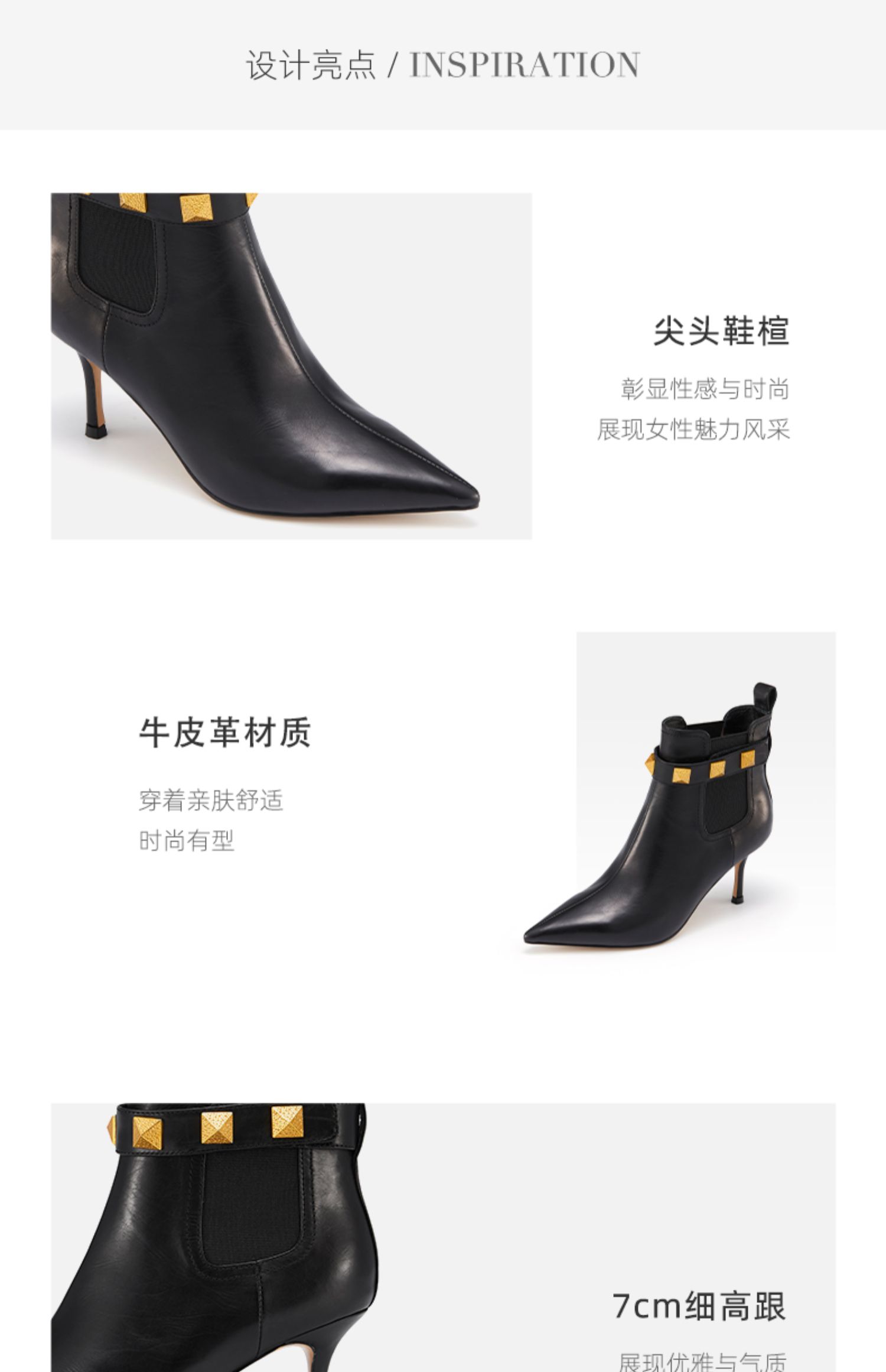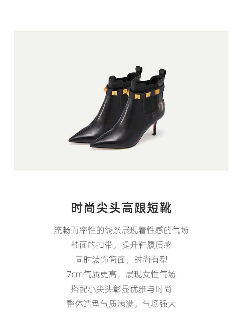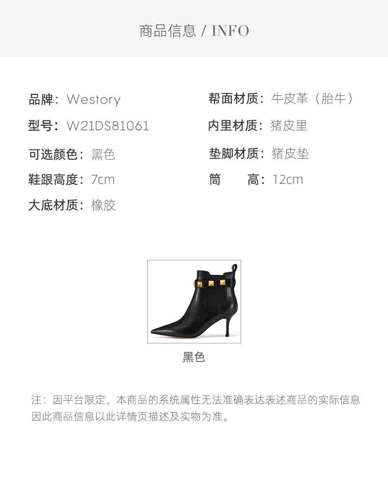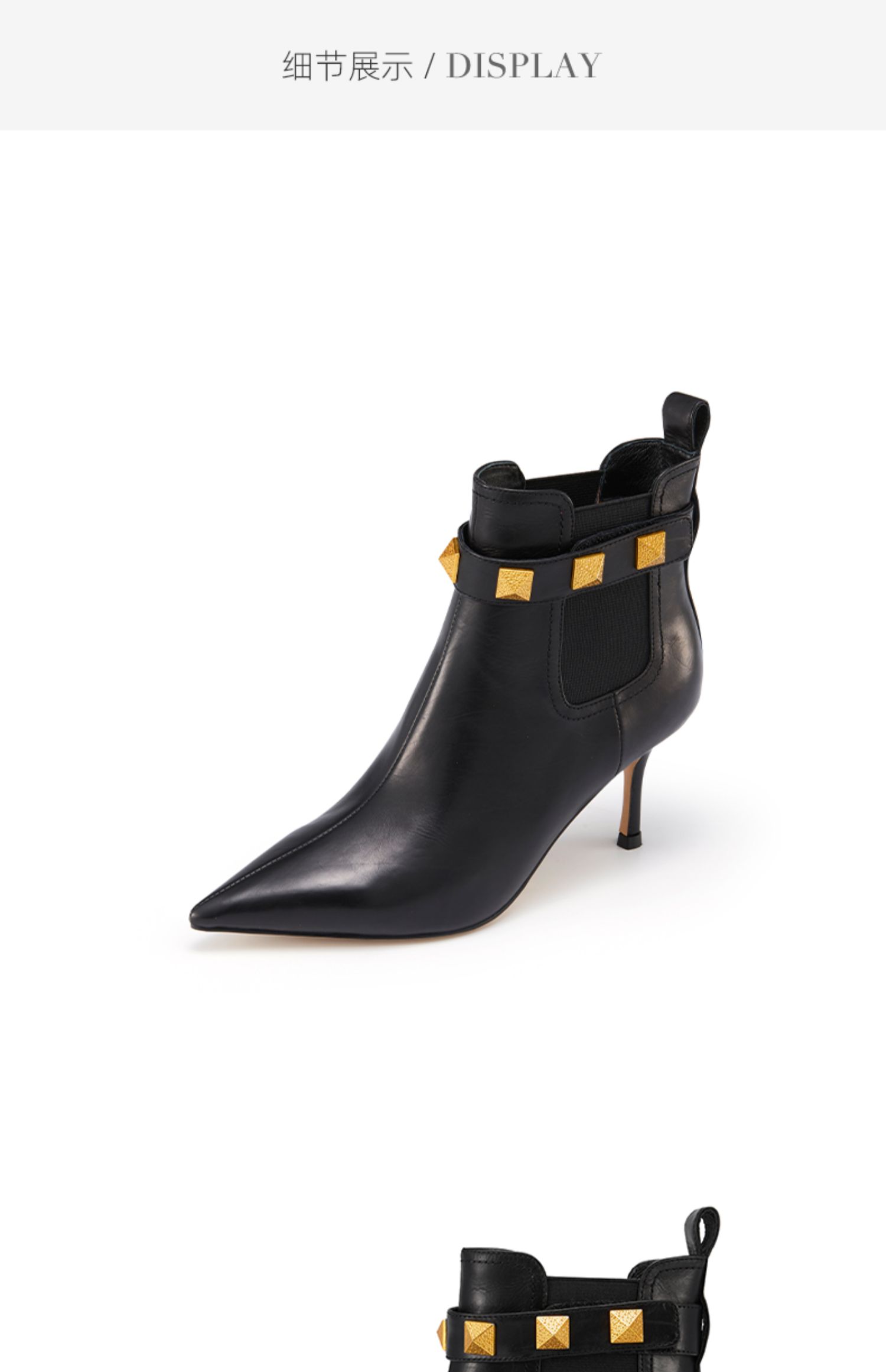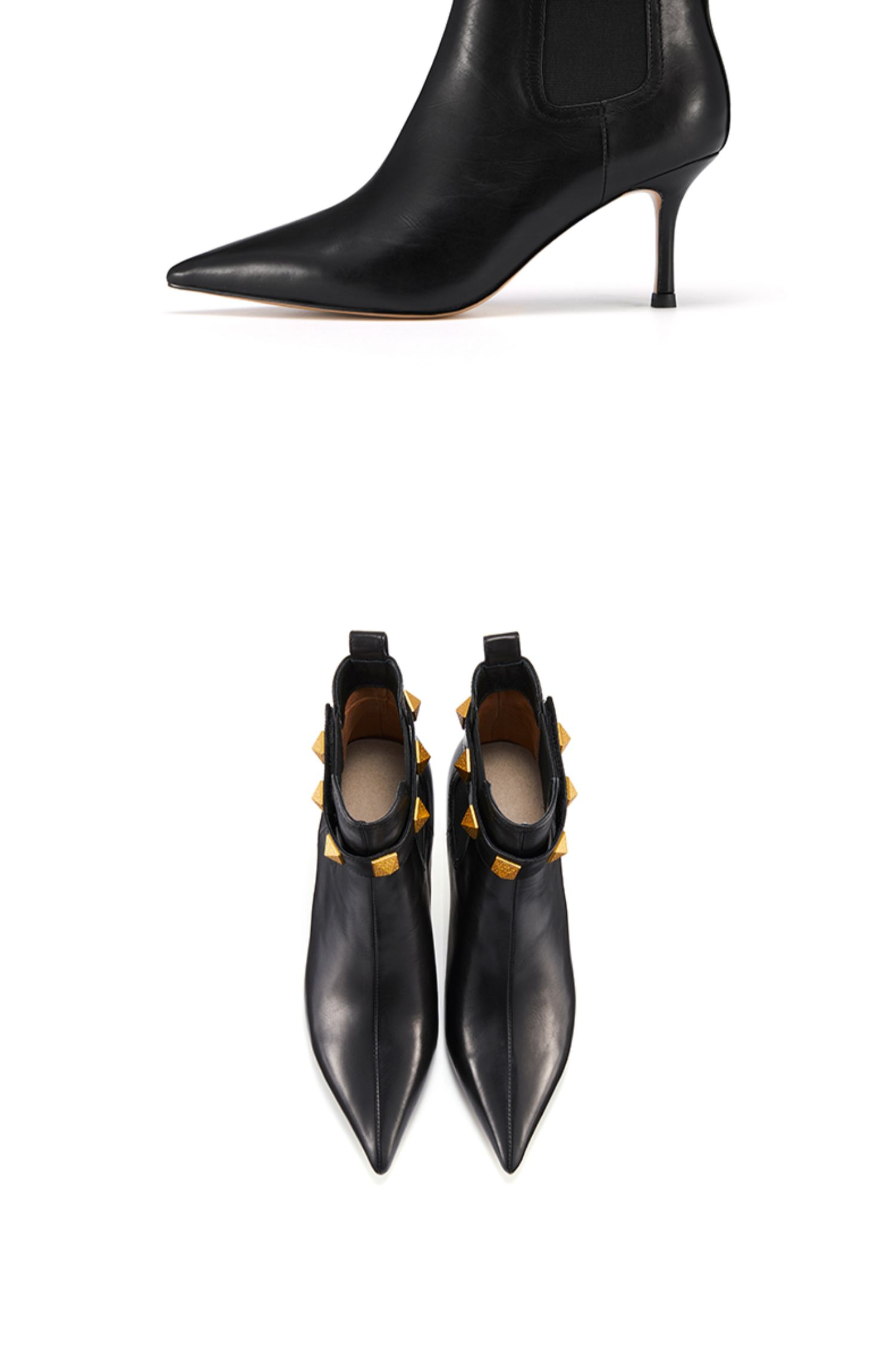 westory2021秋冬新款时装靴细跟尖头高跟短靴铆钉复古W21DS81061