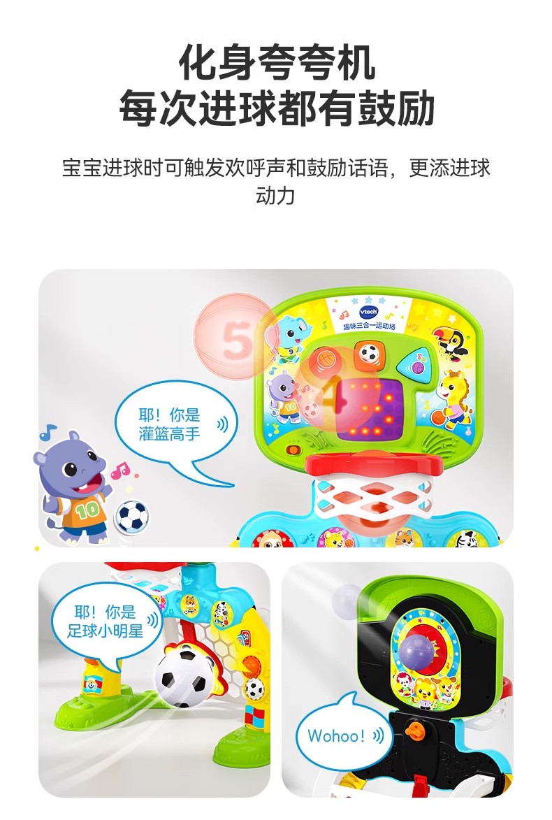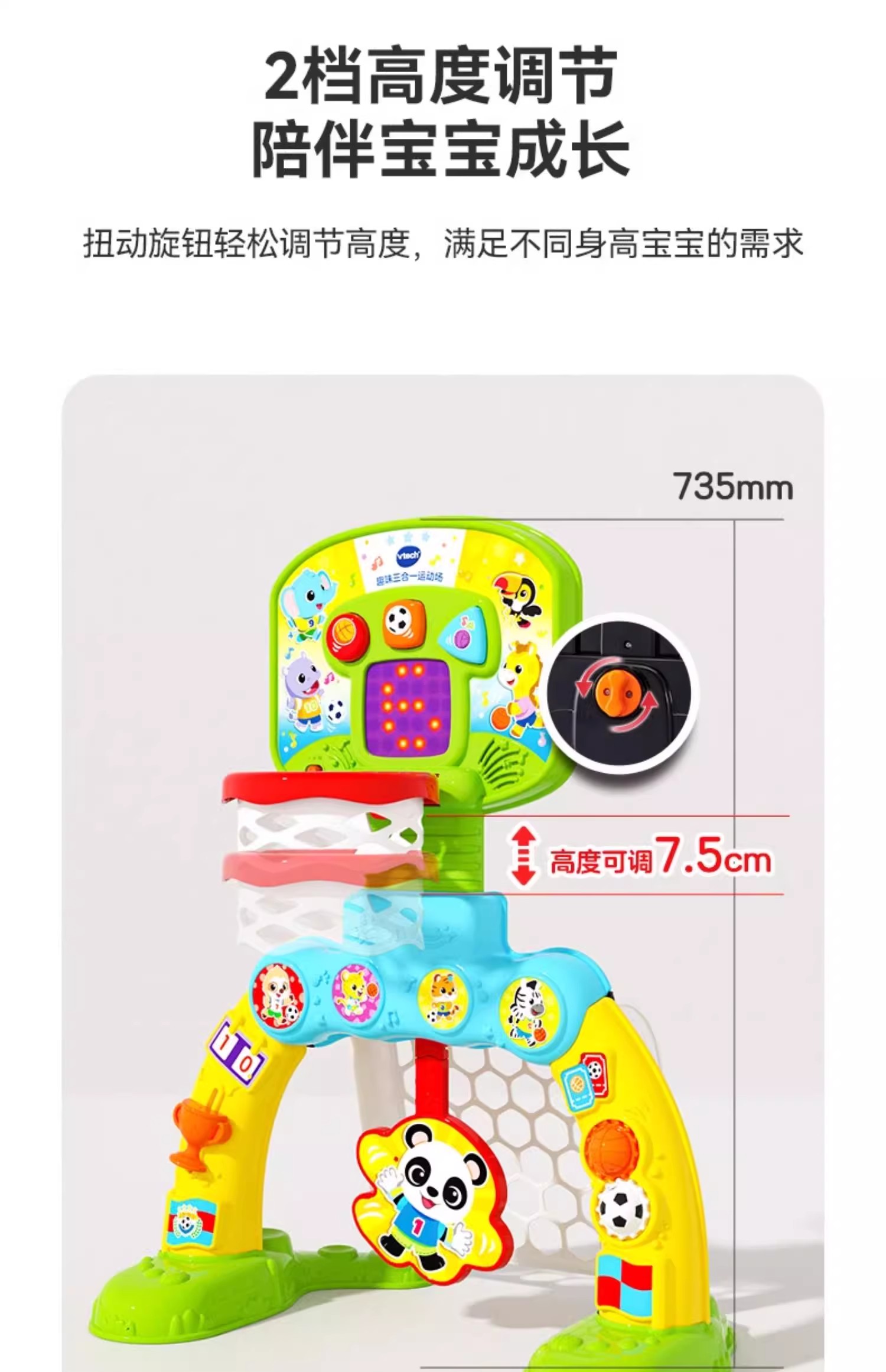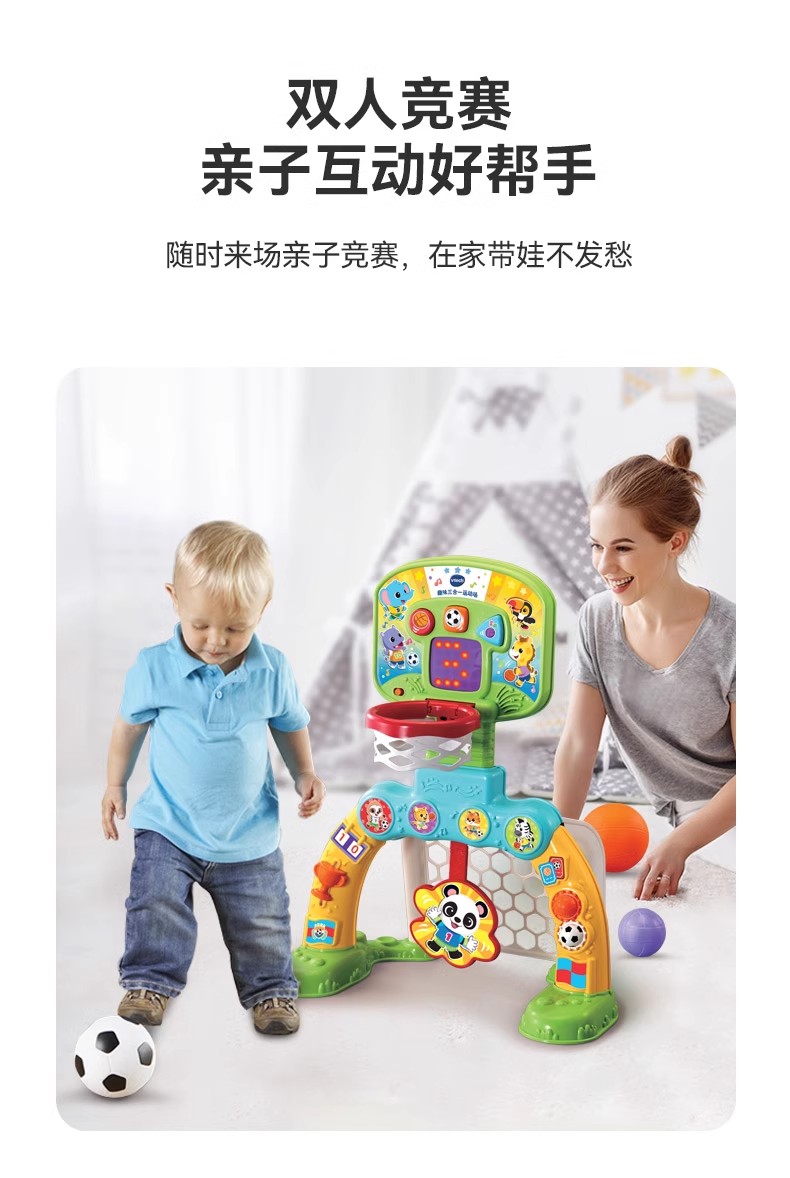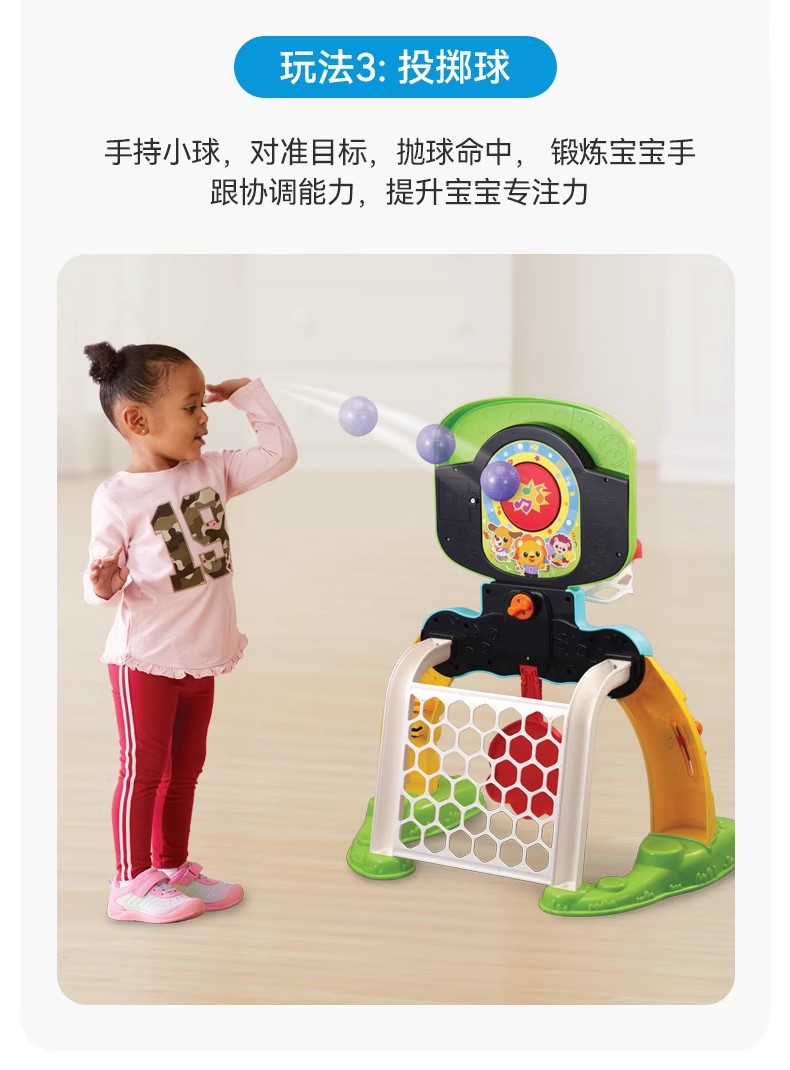 伟易达3合1儿童篮球架投篮框踢足球宝宝家用室内运动玩具移动礼物