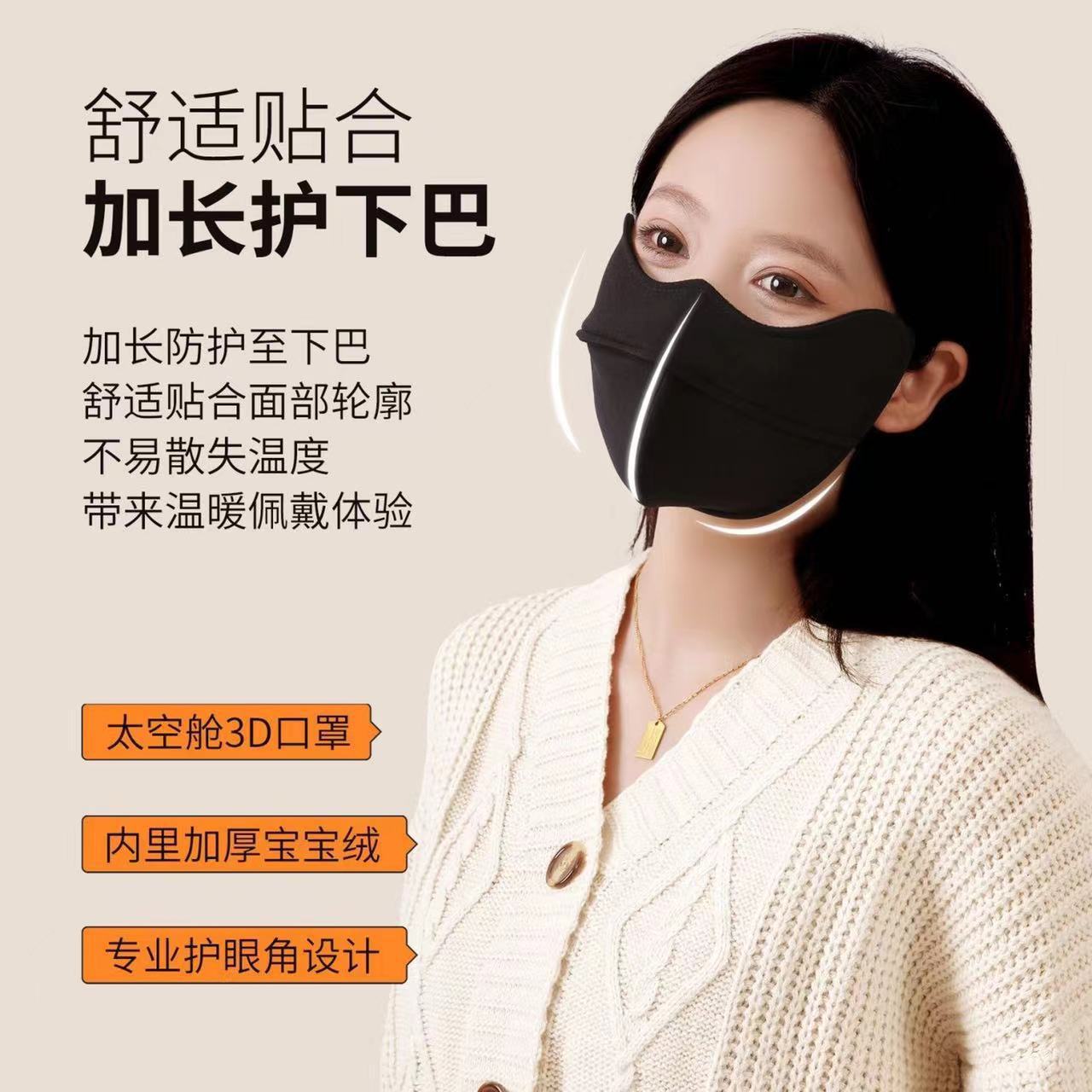 【加长护下巴!保暖口罩】3D立体鱼骨护眼口罩女秋冬加绒保暖防风抗寒口罩立体显脸小可水洗