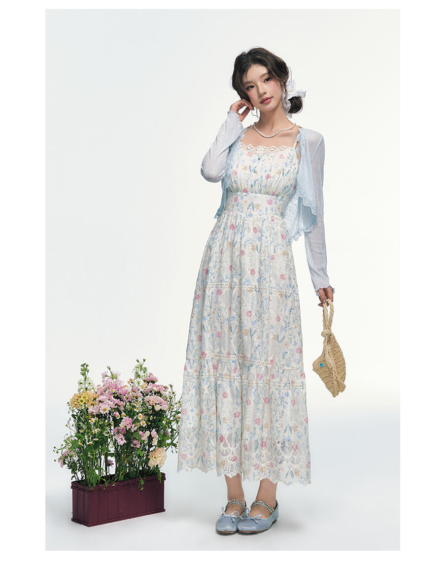 P&X设计师女装 法式碎花温柔女神套装长裙两件套 825214088 花色