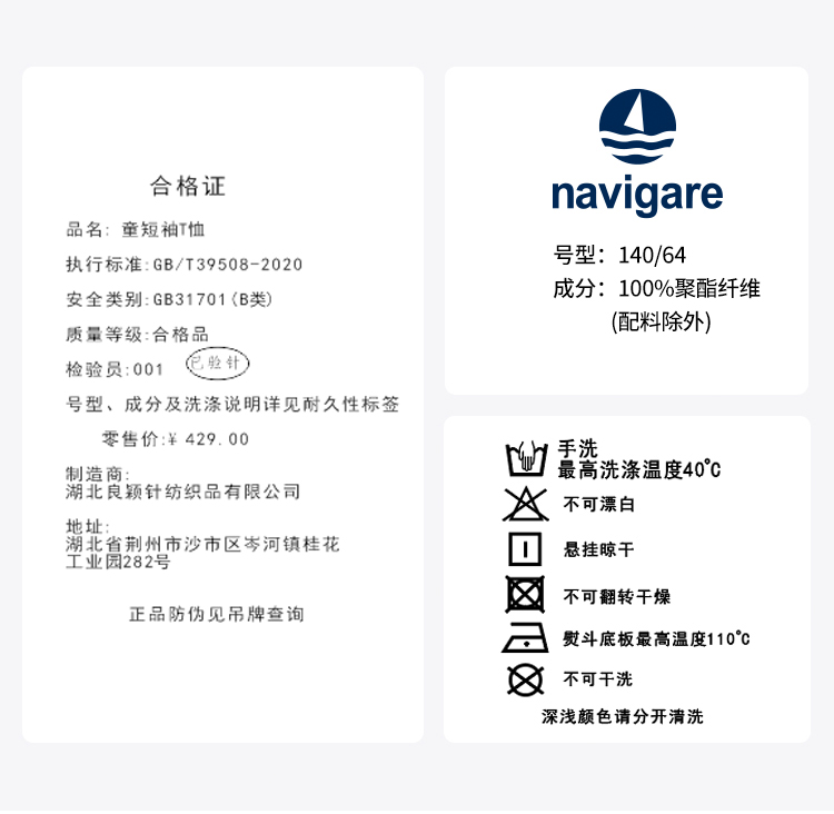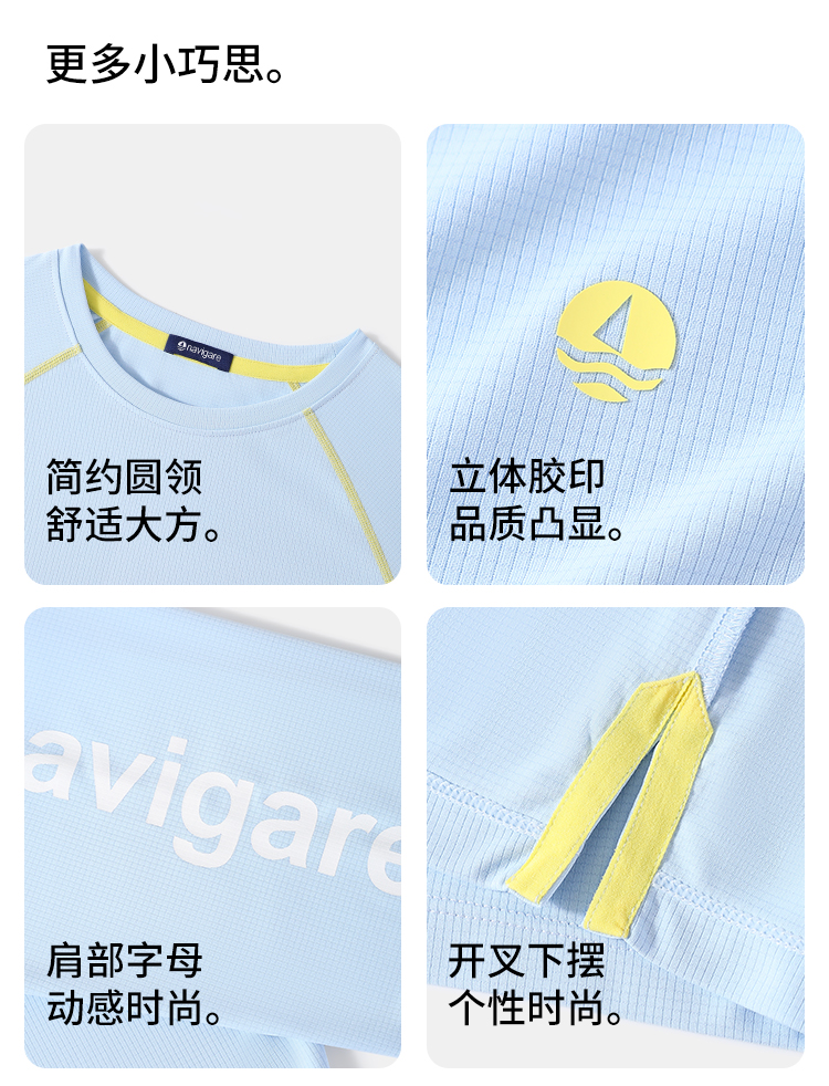 【纳维凯尔】【UPF50+速干】【120-165】Navigare意大利小帆船男童短袖T恤