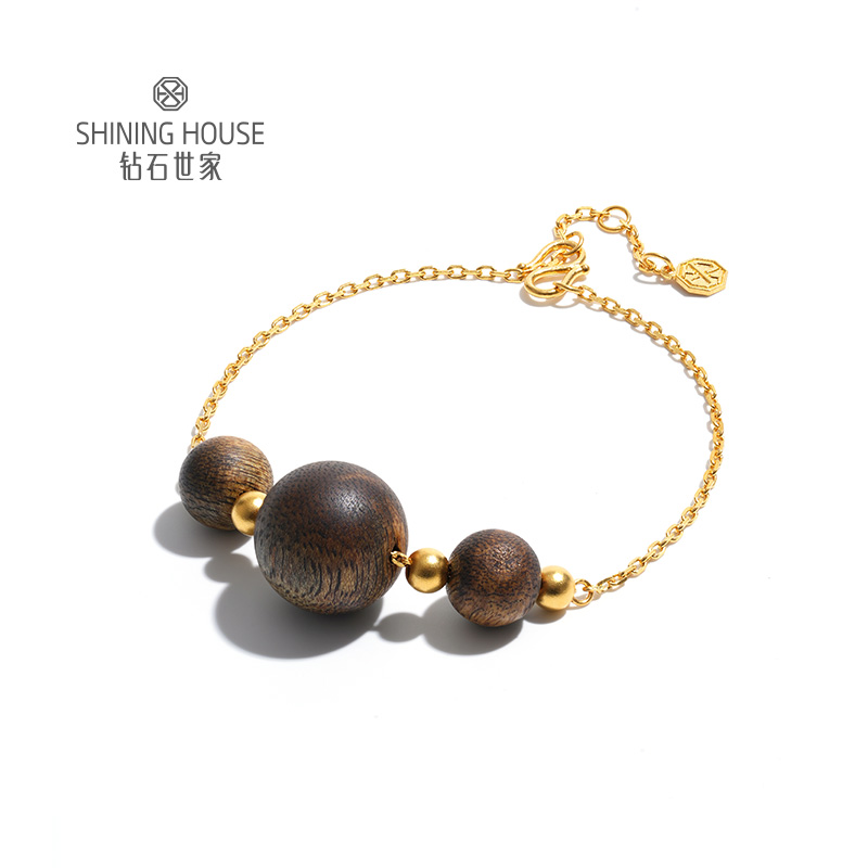 【钜惠价】【沉香黄金】钻石世家 祈愿系列·古韵鎏金项链 足金沉香项链 足金沉香手链 古韵沉香与华贵黄金碰撞组合 汇聚非遗之美【黄金产品不支持无理由退换货】预计3-5天发货