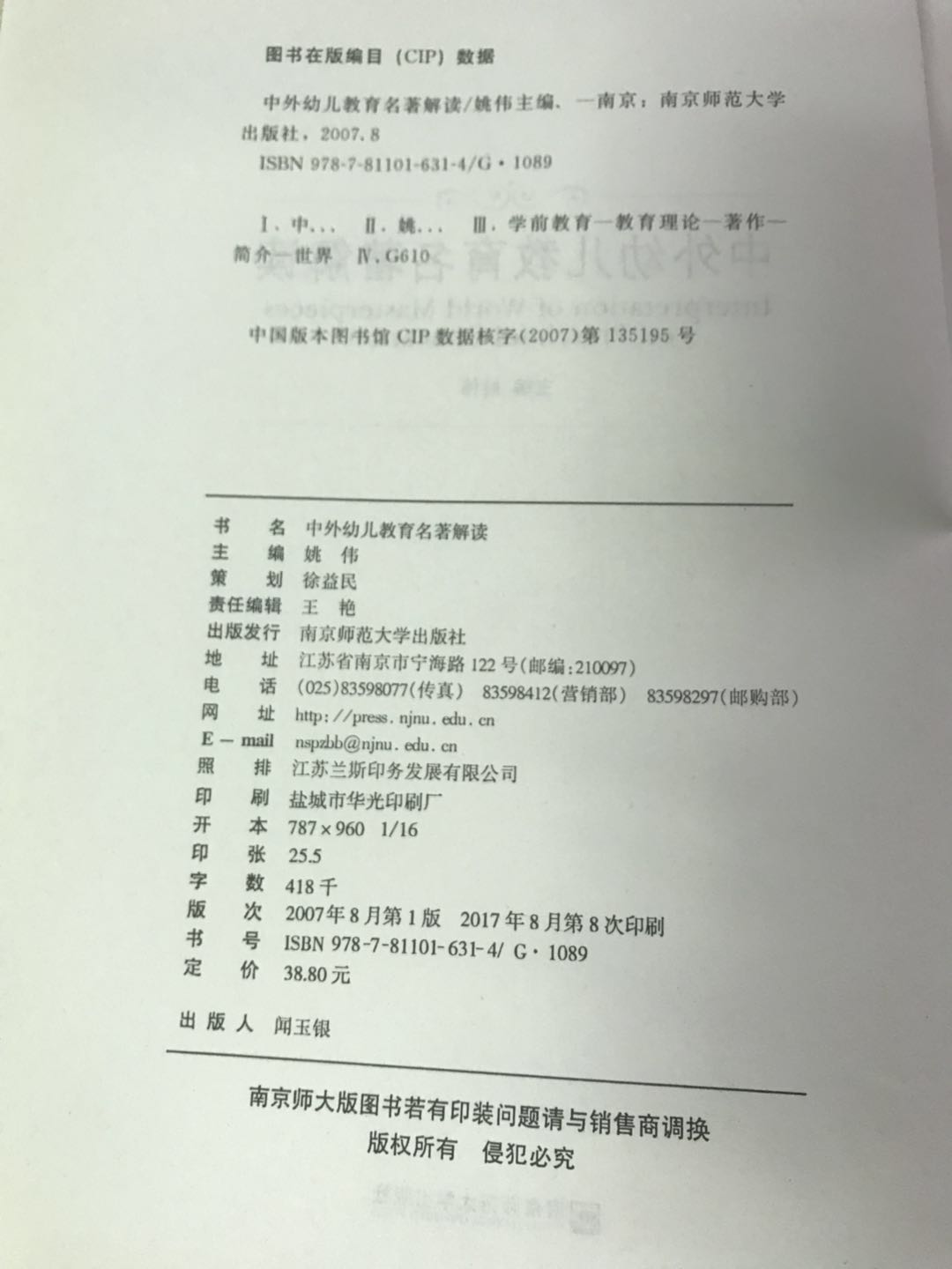 中外幼儿教育名著解读 姚伟 南京师范大学出版社