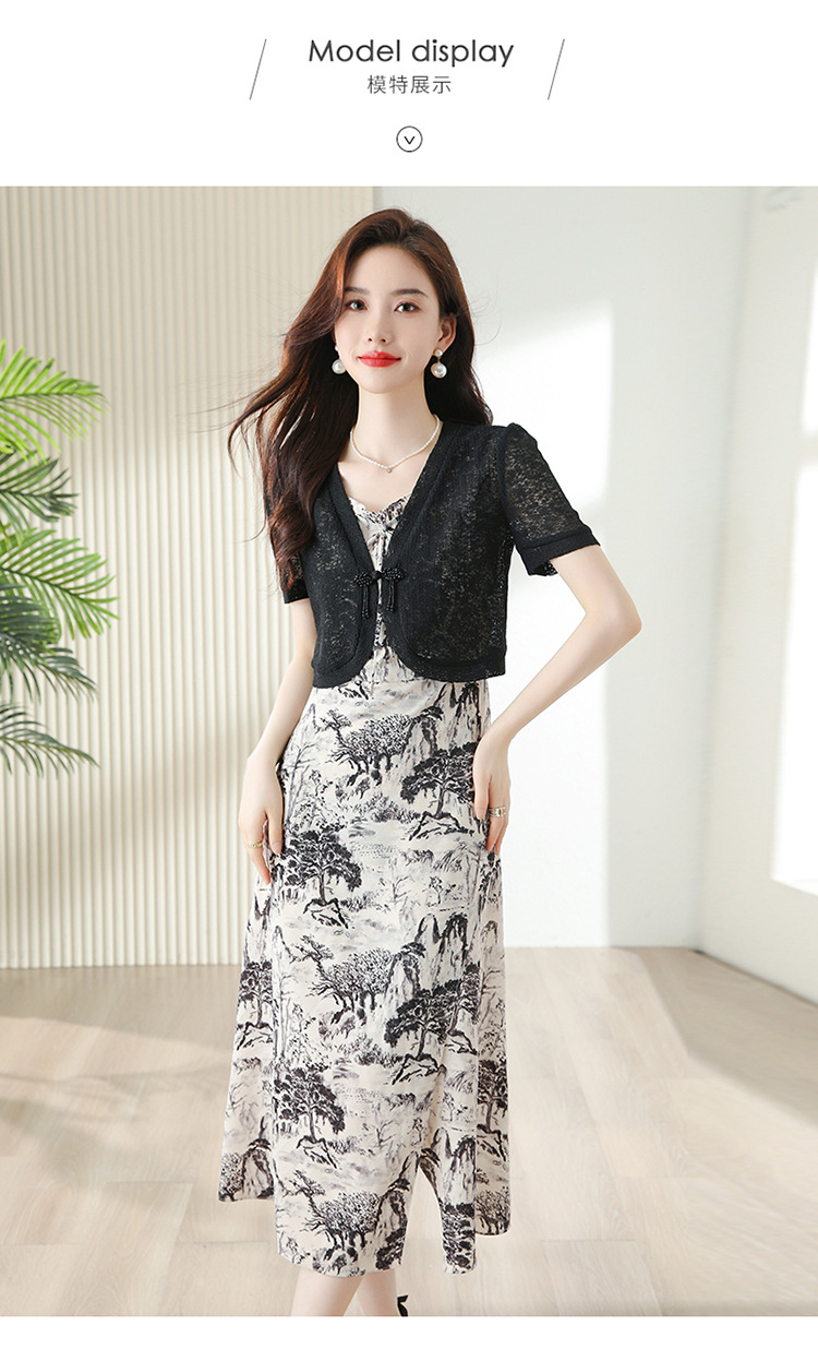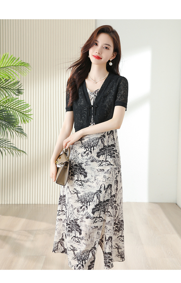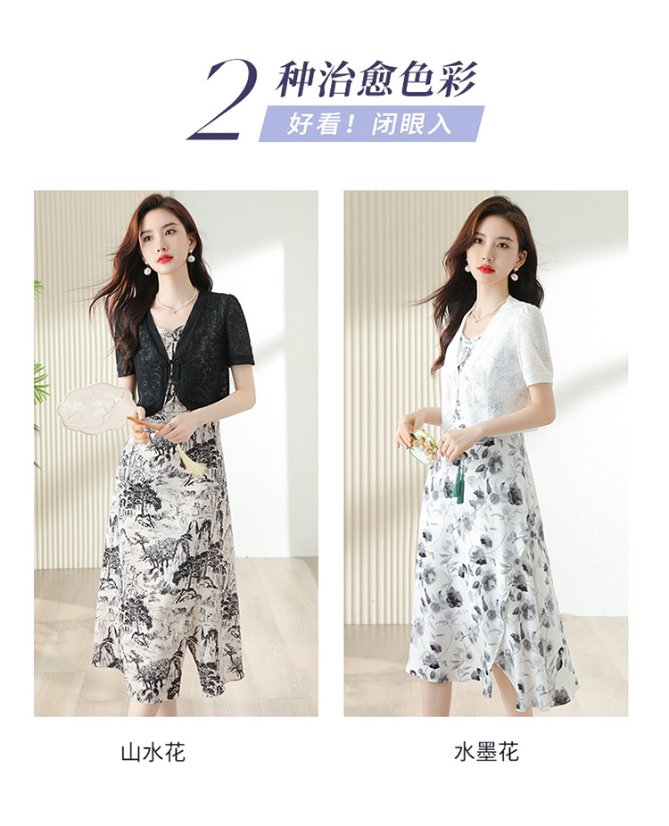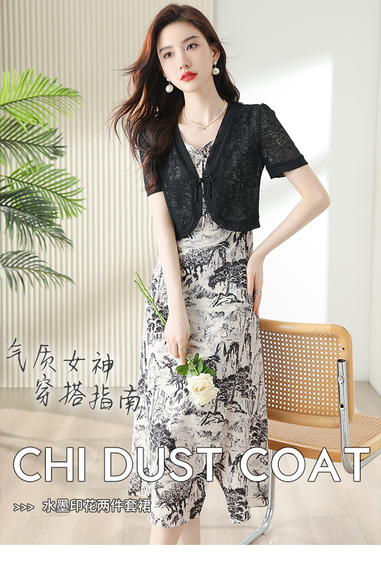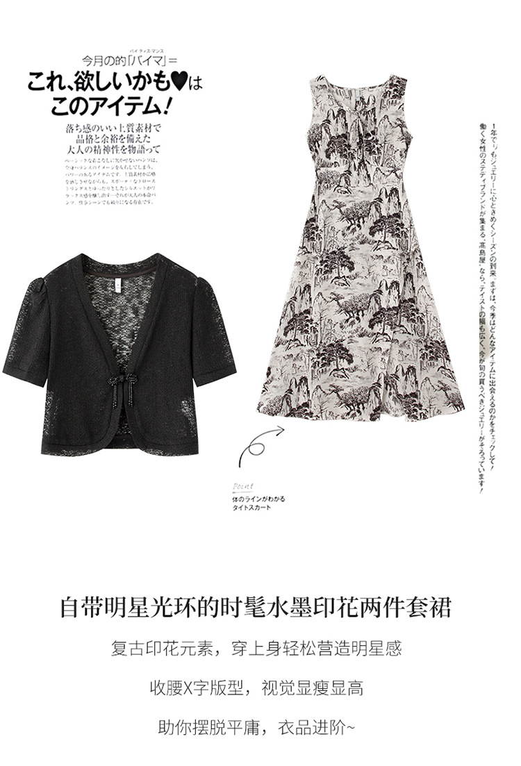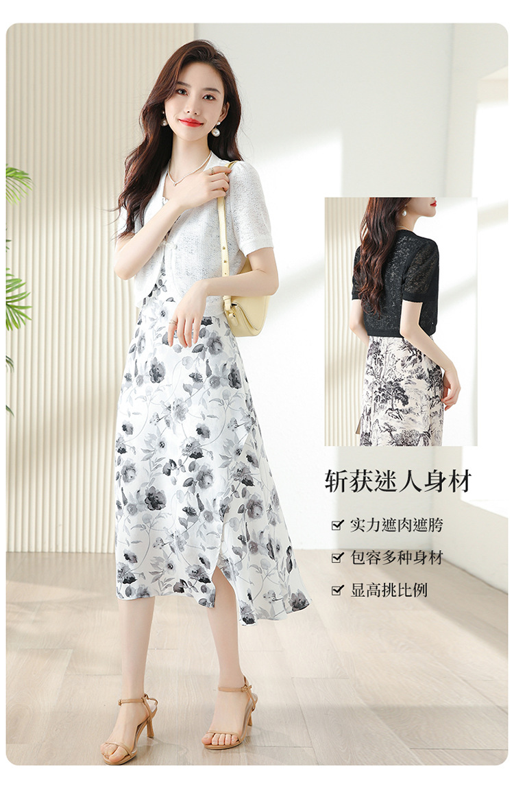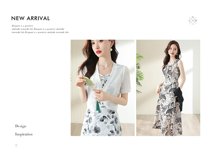 时尚简约修身显瘦,设计感优雅印花减龄两件套HR-DUOCAI2303
