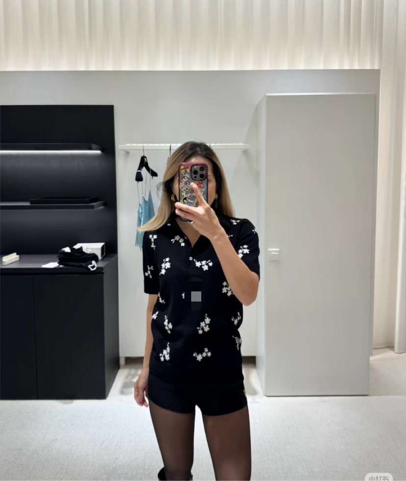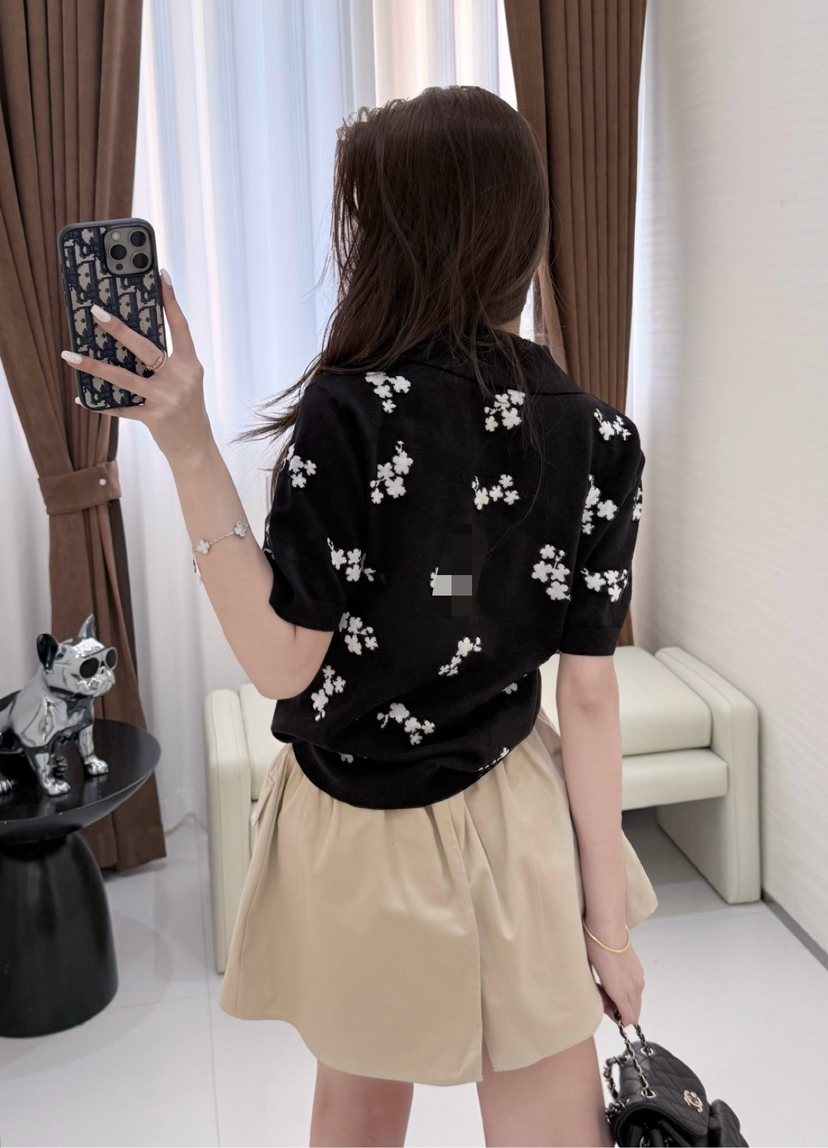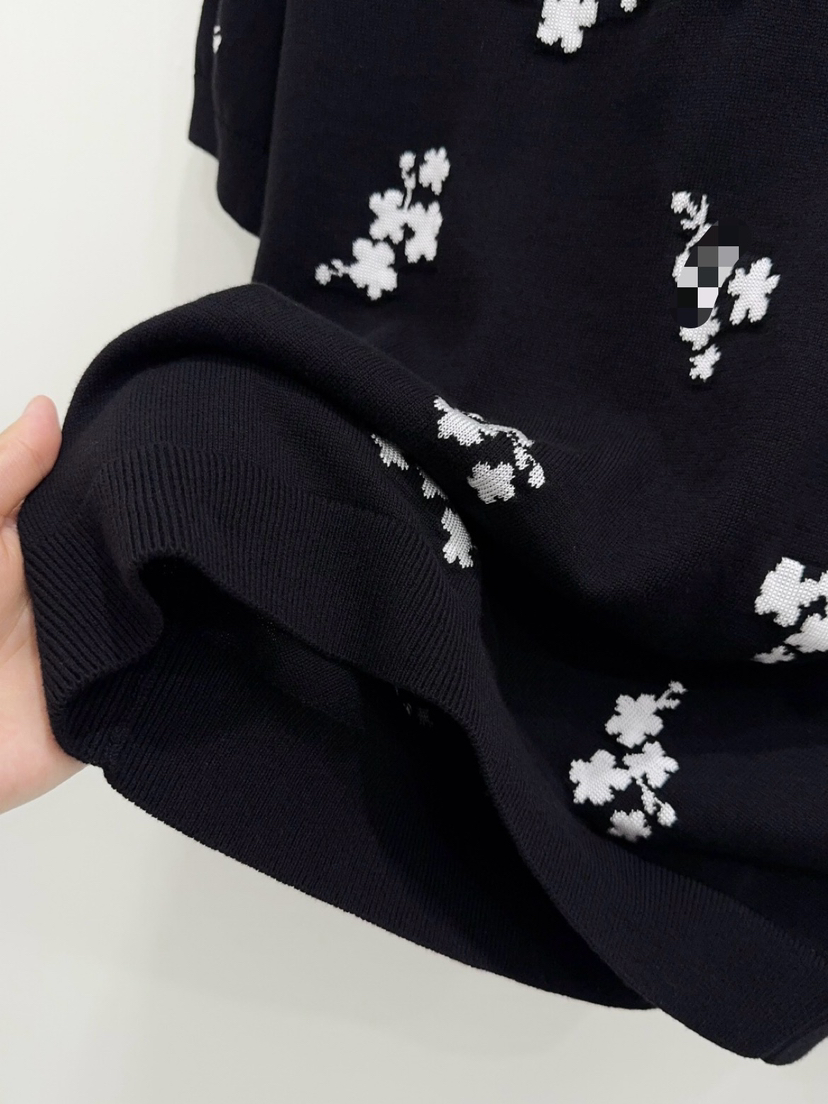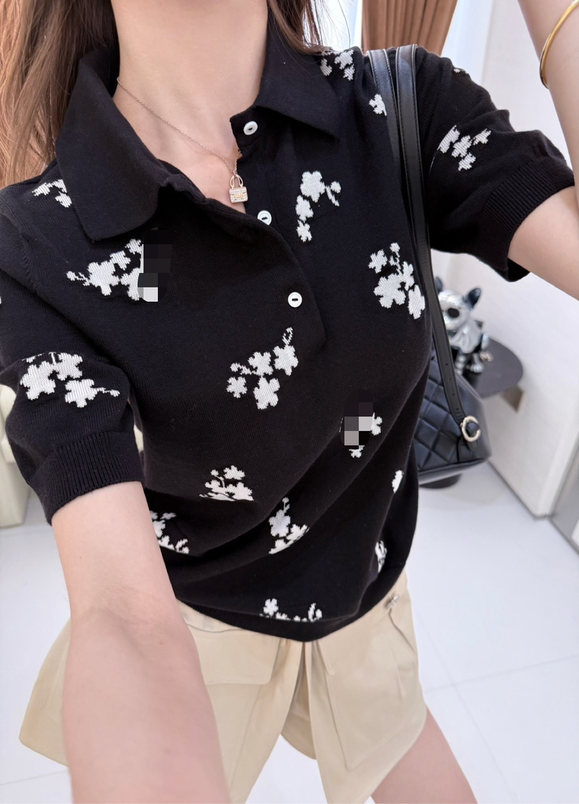 316-11 香奶奶黑色碎花针织短袖