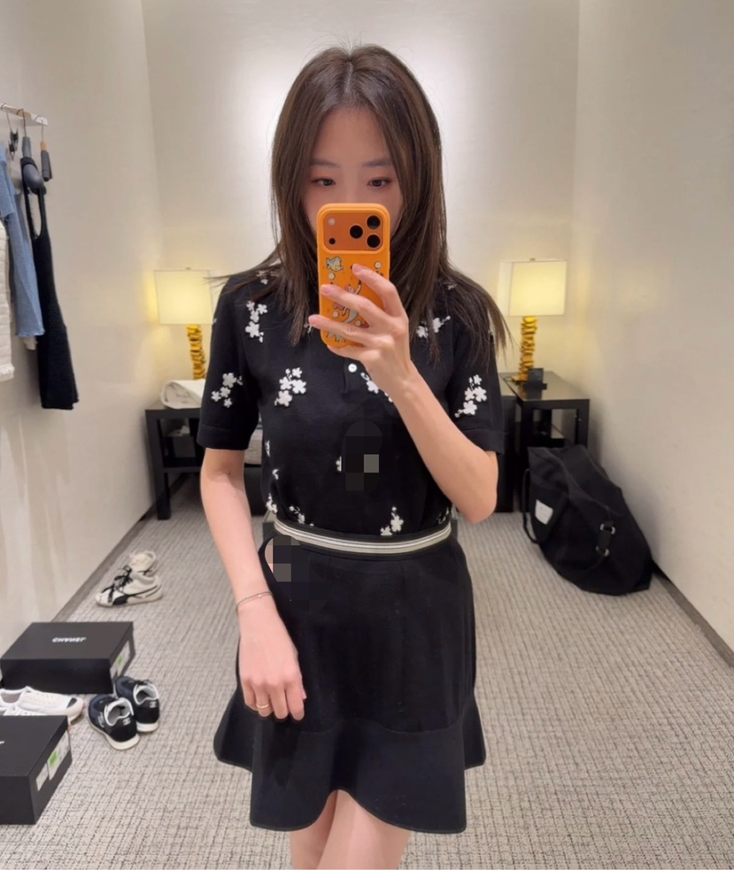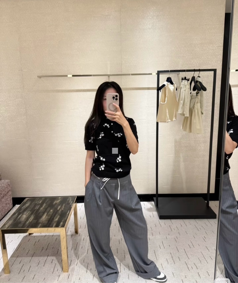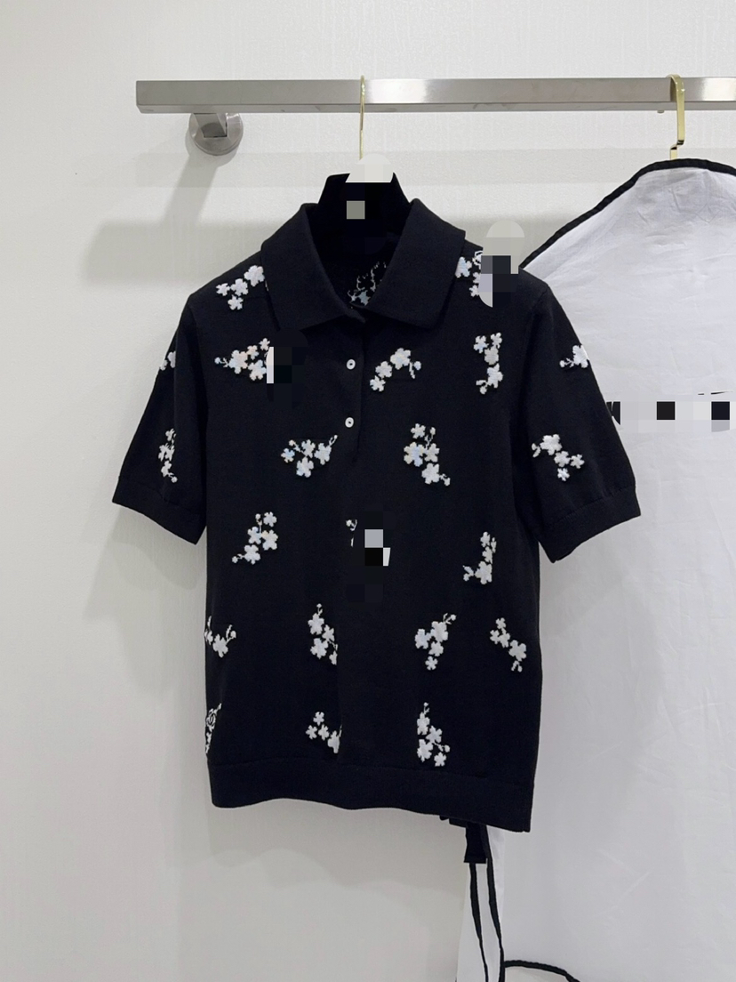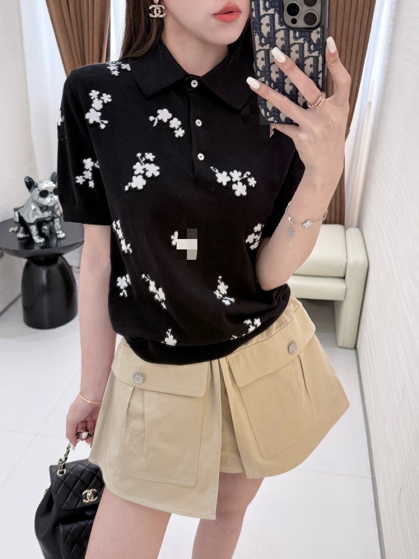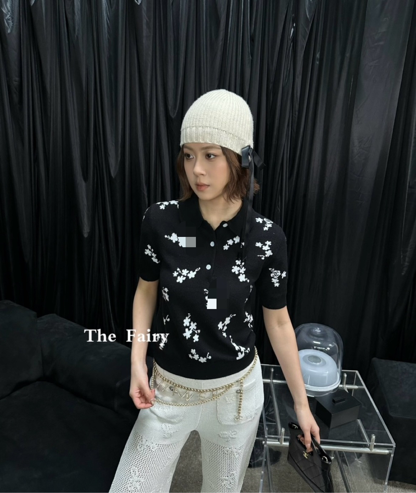 316-11 香奶奶黑色碎花针织短袖