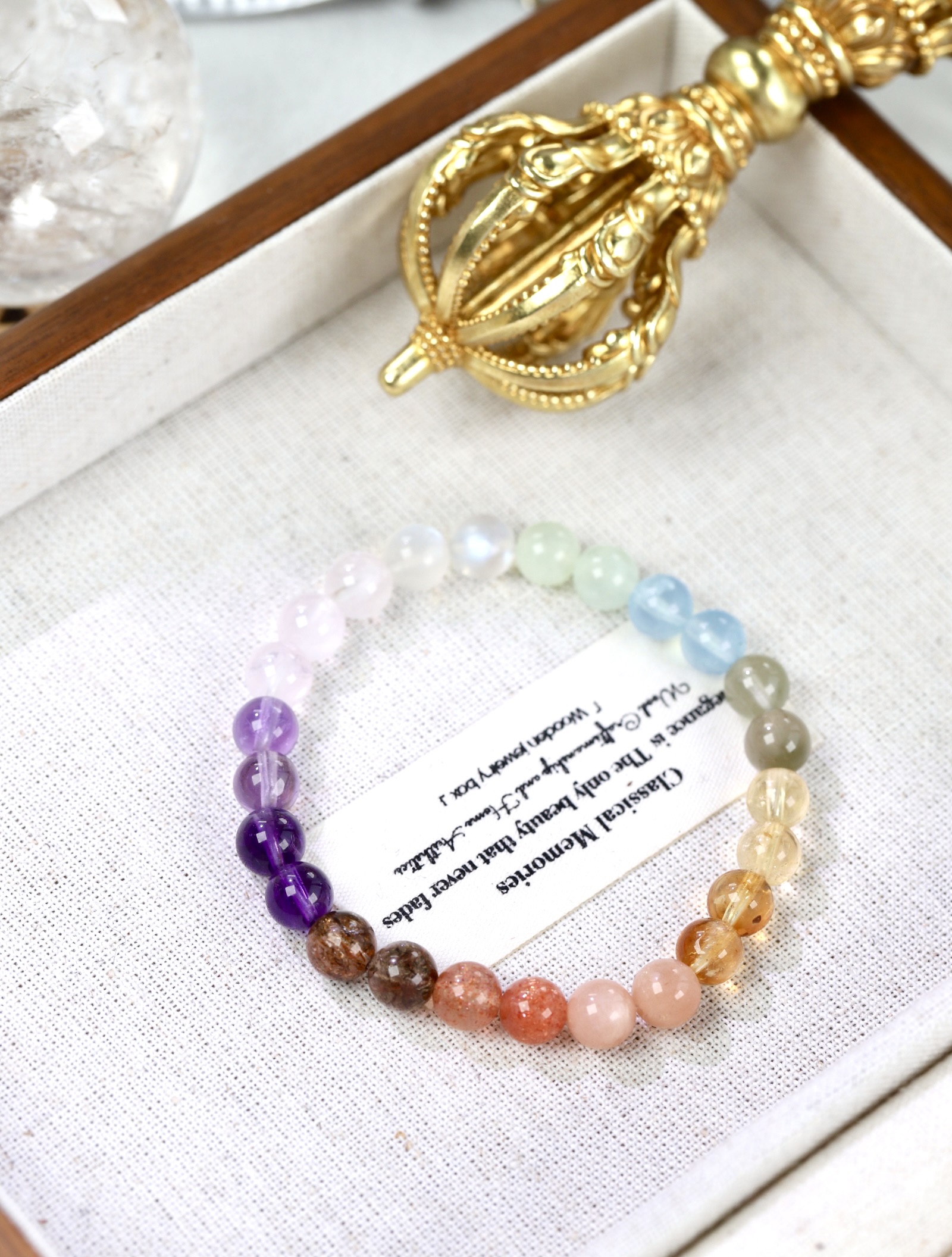 品名:小圆满 7mm 材质:红纹石,绿幽灵,绿兔毛,紫锂辉,闪灵钻,海蓝宝,蓝晶石,蓝虎眼,草莓晶,粉晶,黄塔晶,黄阿塞,蓝月光,红胶花,紫水晶 发货地:江苏连云港 物流信息:默认中通快递,不接受指定快递。除港澳台不发货外,全国包邮。 关于售后: 不影响二次销售,支持七天无理由退换货,运费自理。 非人为原因损坏,925银配件3个月质保,合金类配件1个月质保,换新或免费维修 温馨提示: 1.避免磕碰 2.不接触化学物品、不泡水 3.避免高温高热的环境, A保养方法:手串佩戴时间久了,咱们可以拿一瓶养护油,第一滴在手心搓匀,把玩,会慢慢改善这个现象哈! B长期不佩戴需密封保存,尤其是有银饰配件的饰品哈! 关于色差:因显示器,拍摄光线,角度不同存在些许色差,请以收到的实物为准,色差情况属正常情况 关于尺寸,克重:产品数据为手工测量,存在微小数值误差,请以实物为准,敬请谅解! |