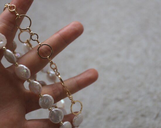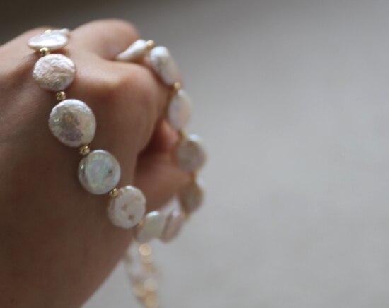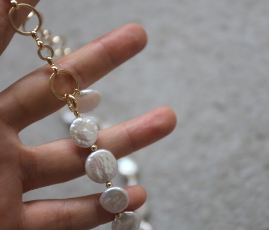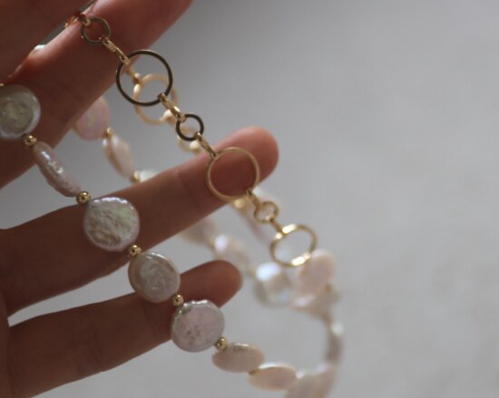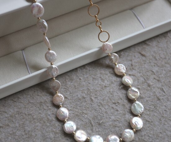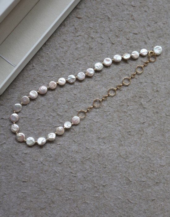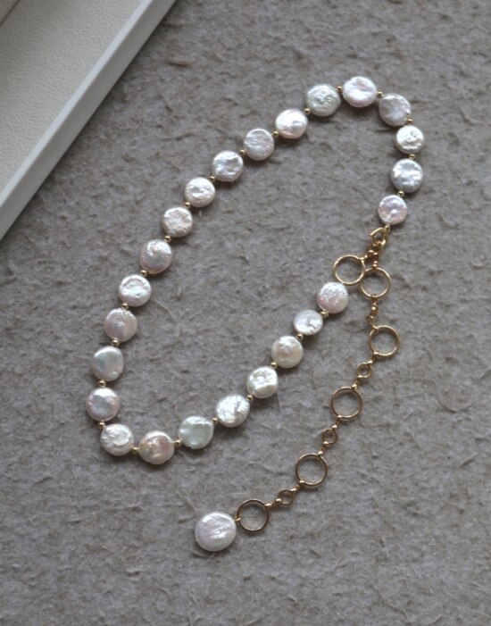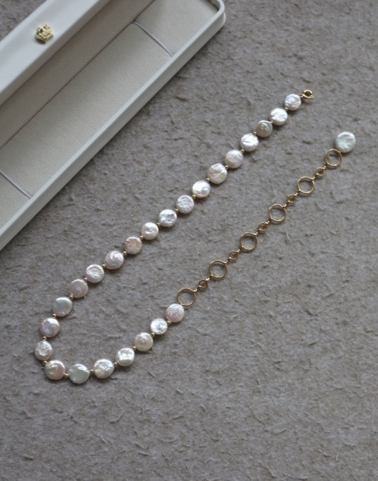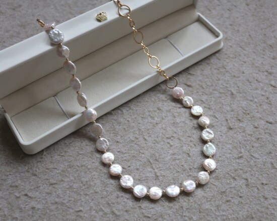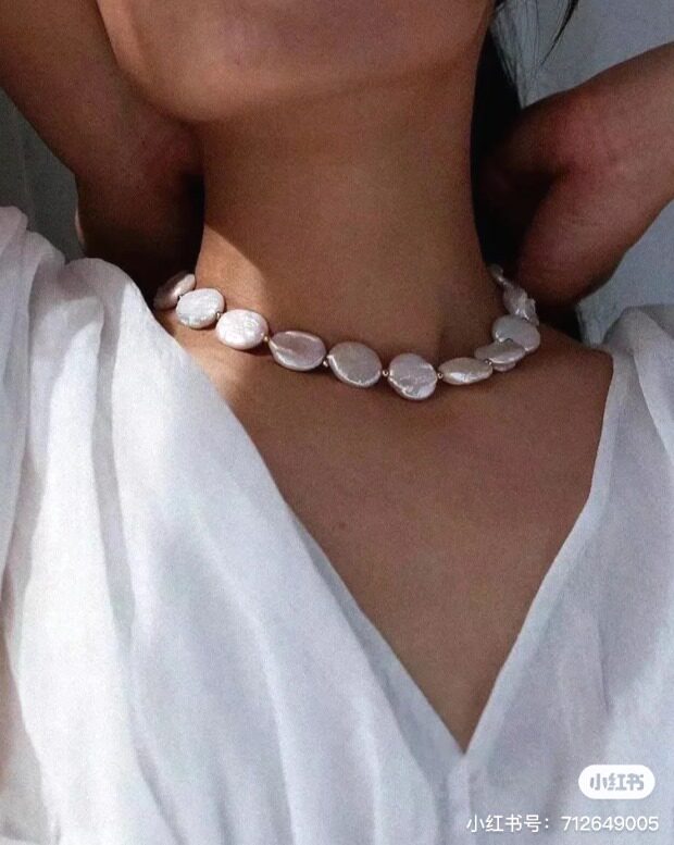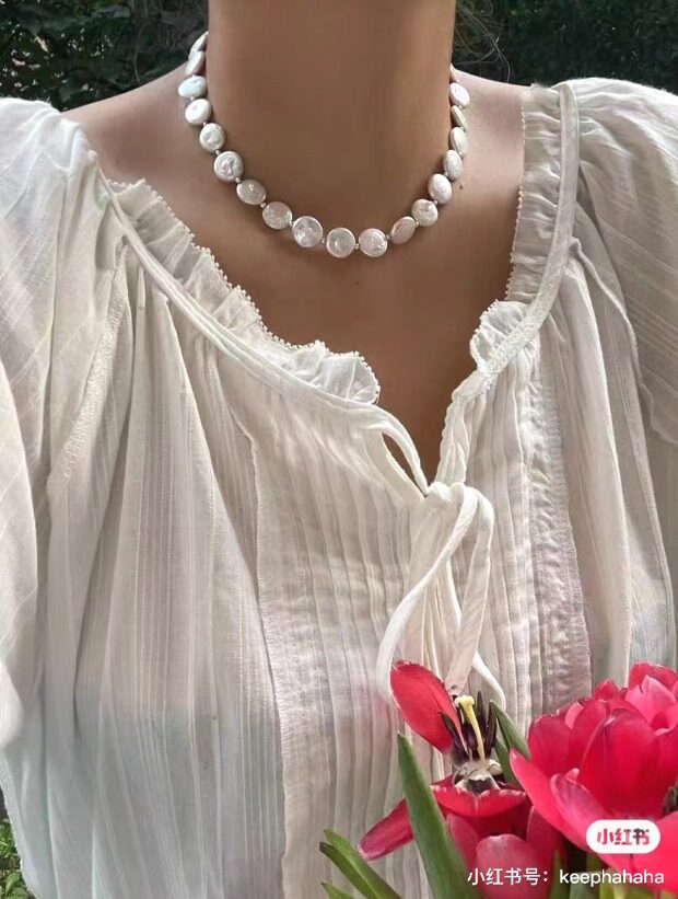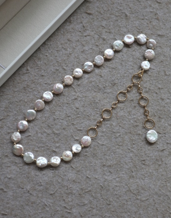 这条项链 是我非常喜欢的 圆片纽扣型 有滑皮也有小皱皮 都是自然形成的