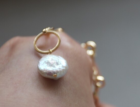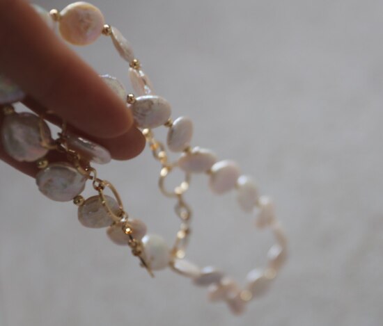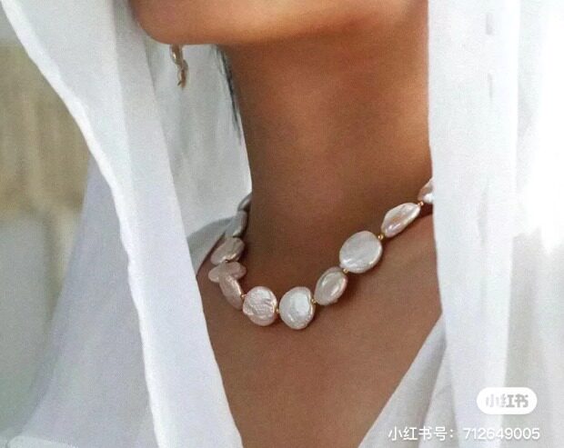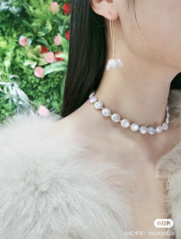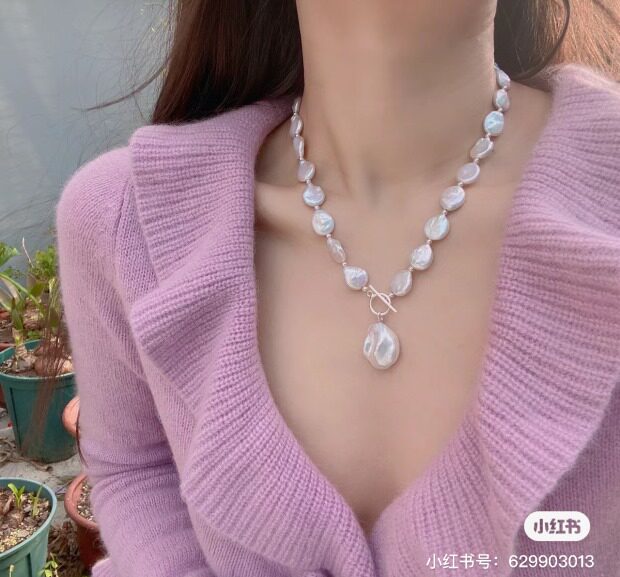 天然淡水 是巴洛克珍珠里的一种 属于有核珍珠类 白里透着粉青 非常漂亮