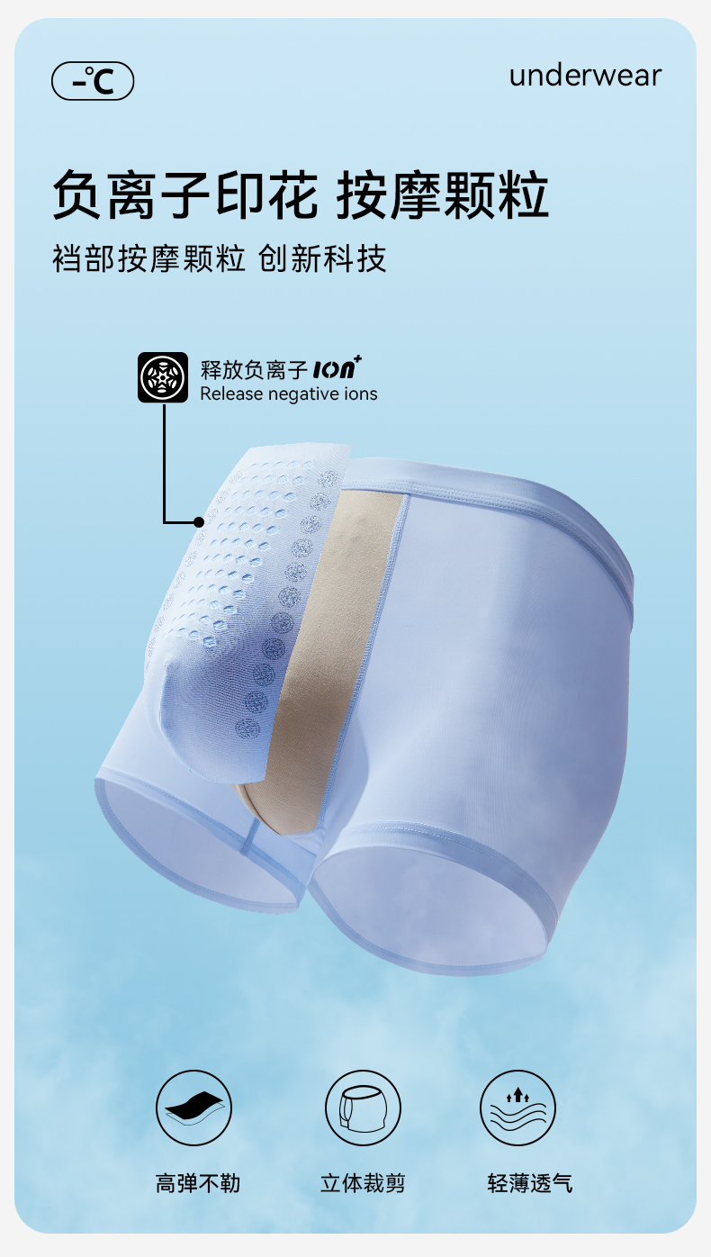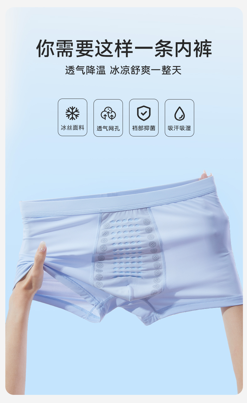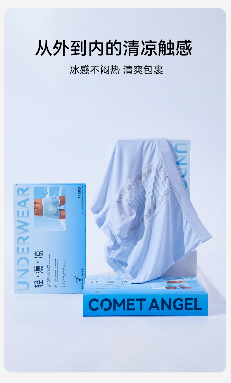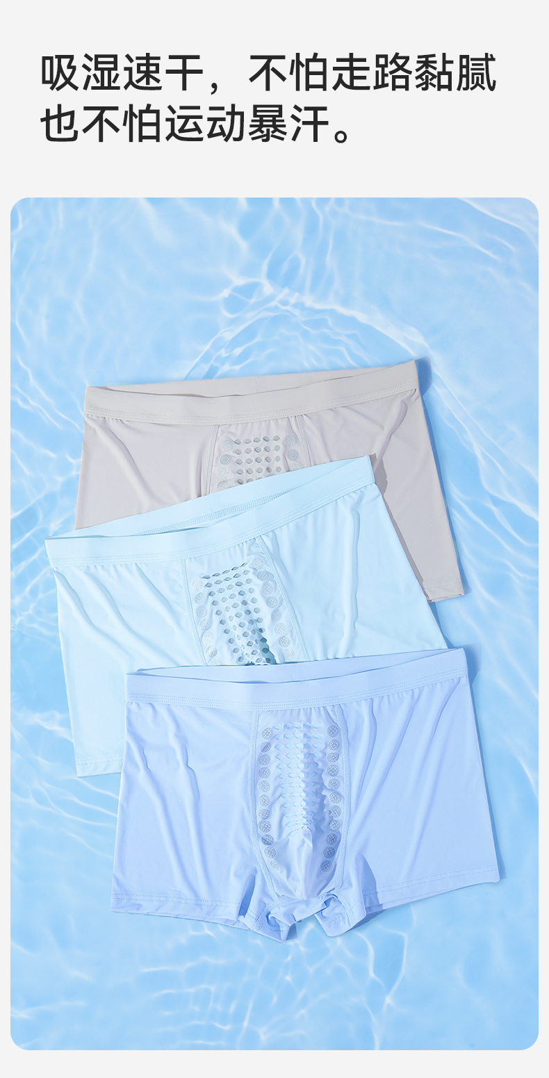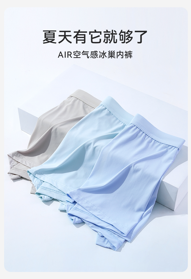【3条装】裸感冰氧丝平角 蚕丝裆男士内裤634#A-4636 彗星天使