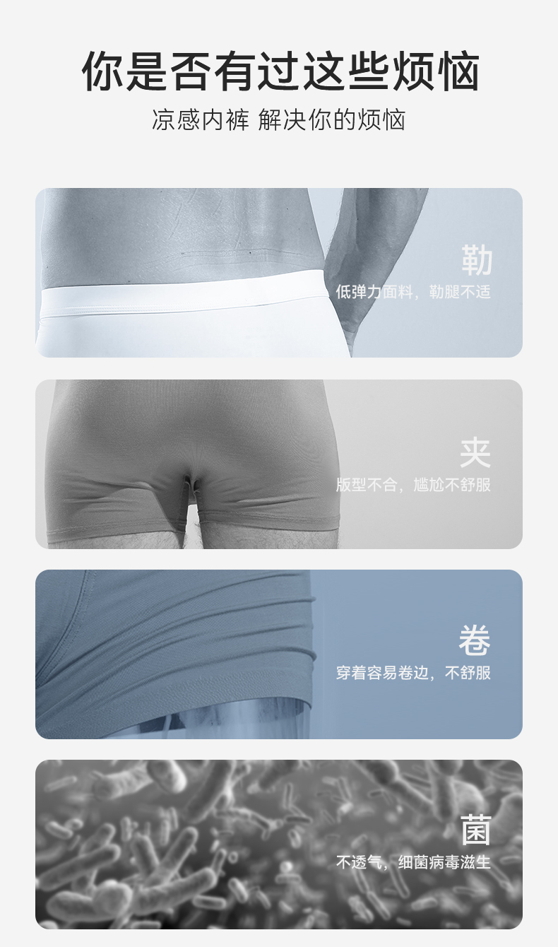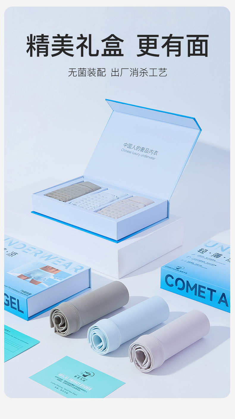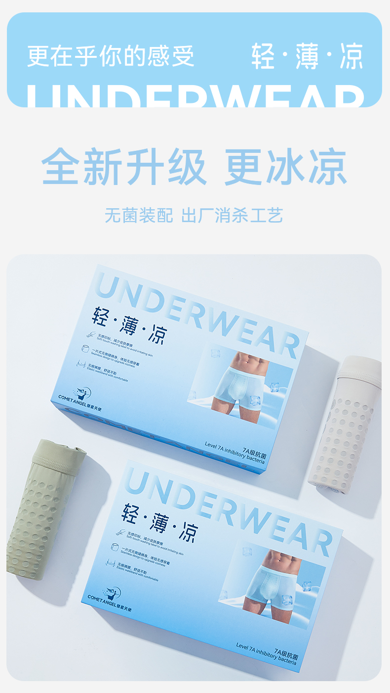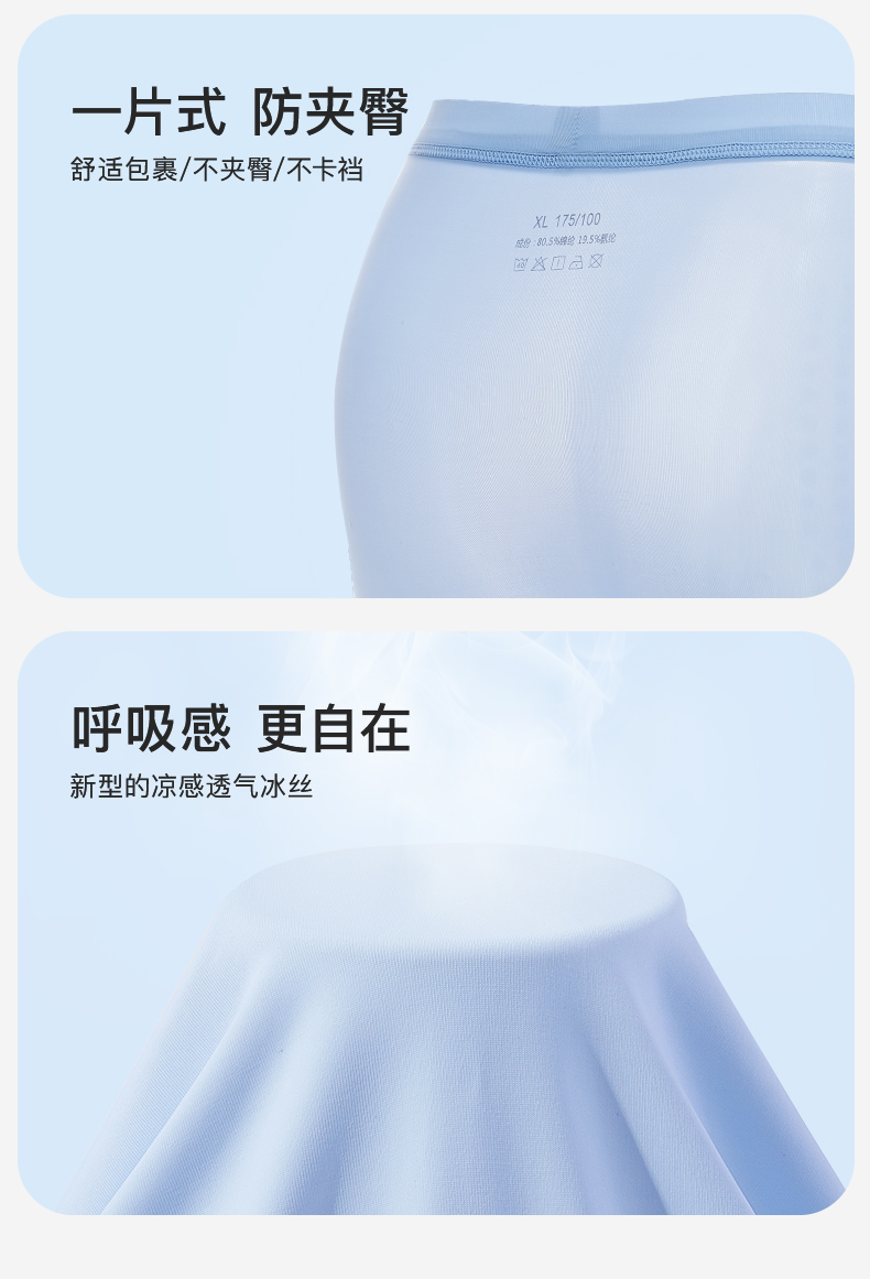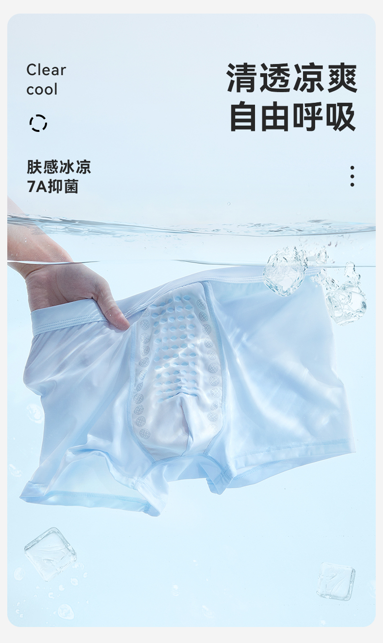 【3条装】裸感冰氧丝平角 蚕丝裆男士内裤634#A-4636 彗星天使