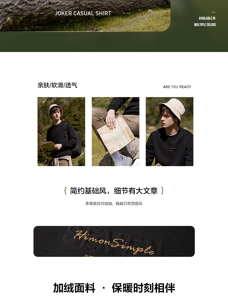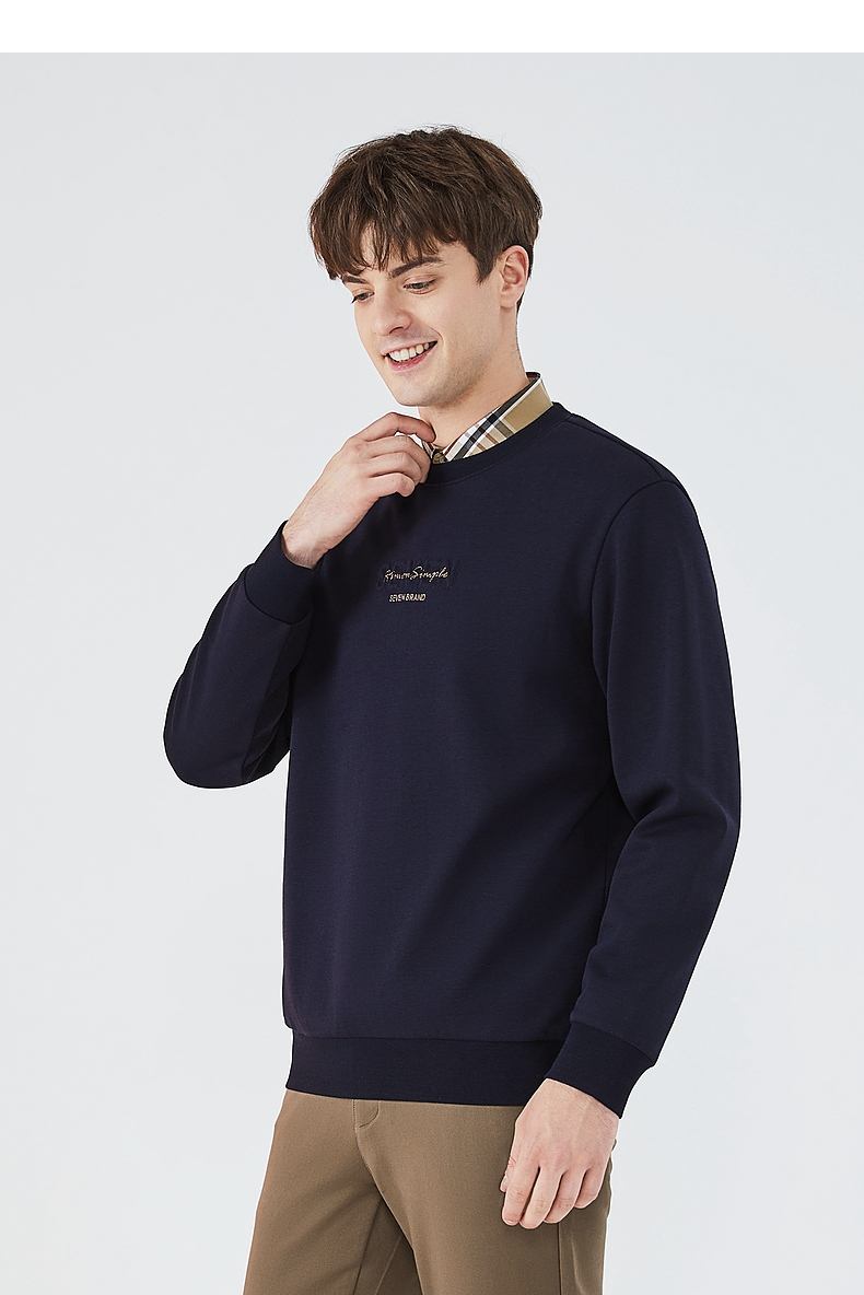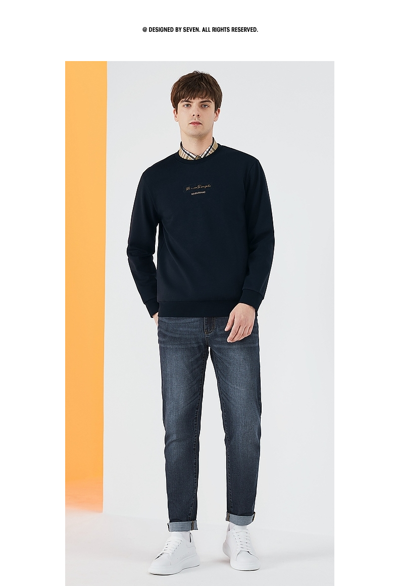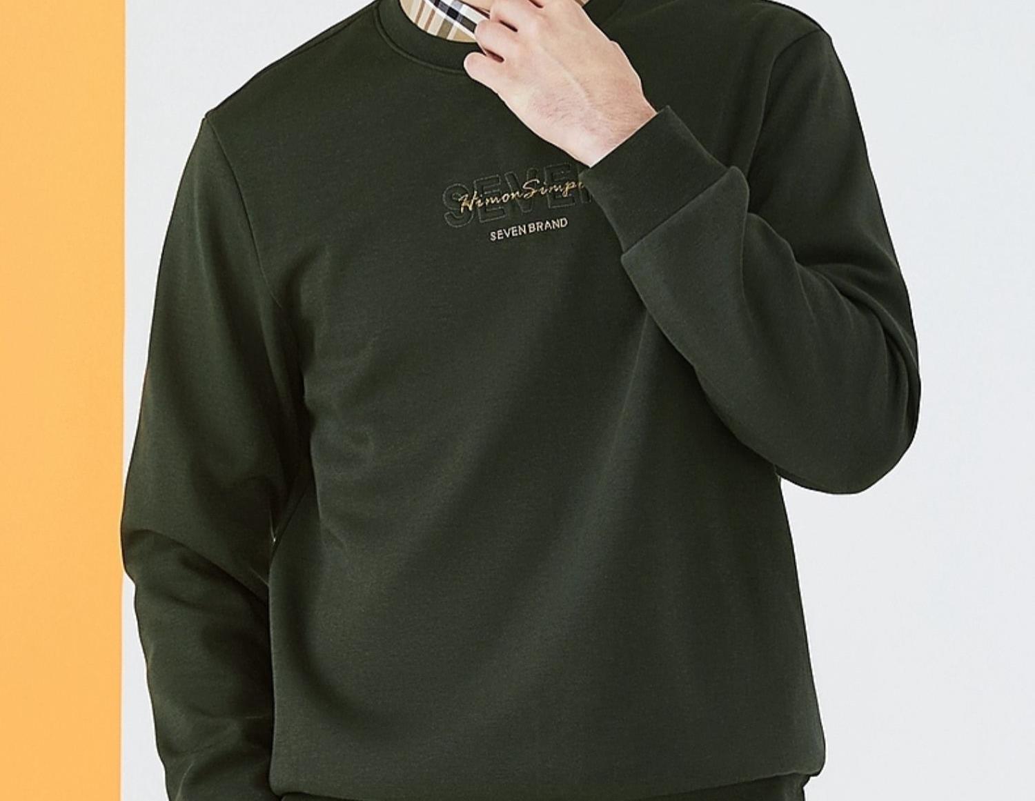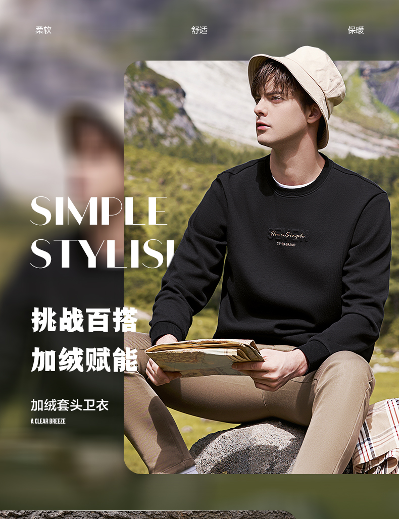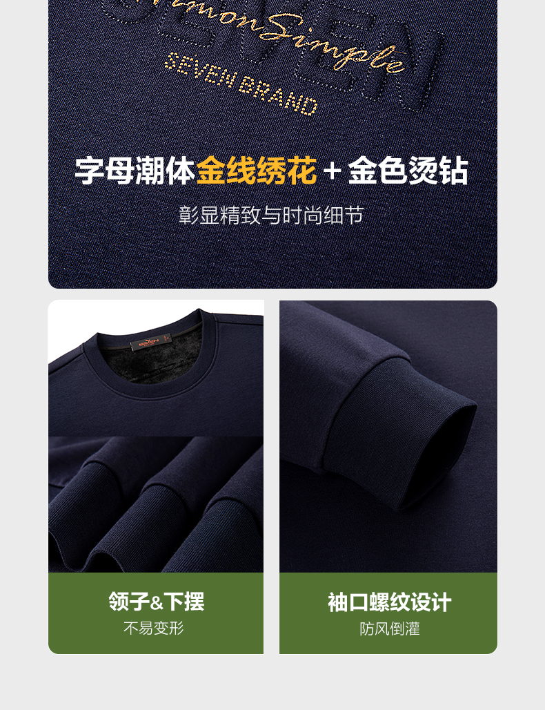 【加绒】柒牌卫衣男士冬季厚款圆领字母绣花休闲保 123W70060
