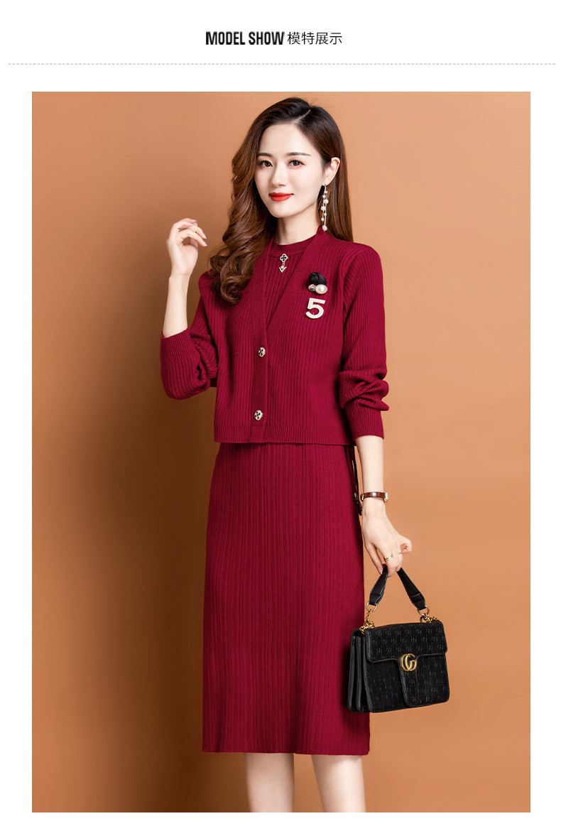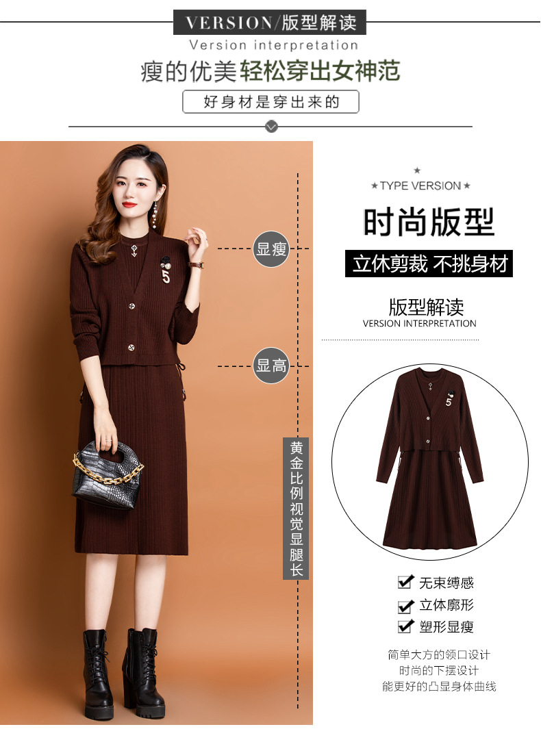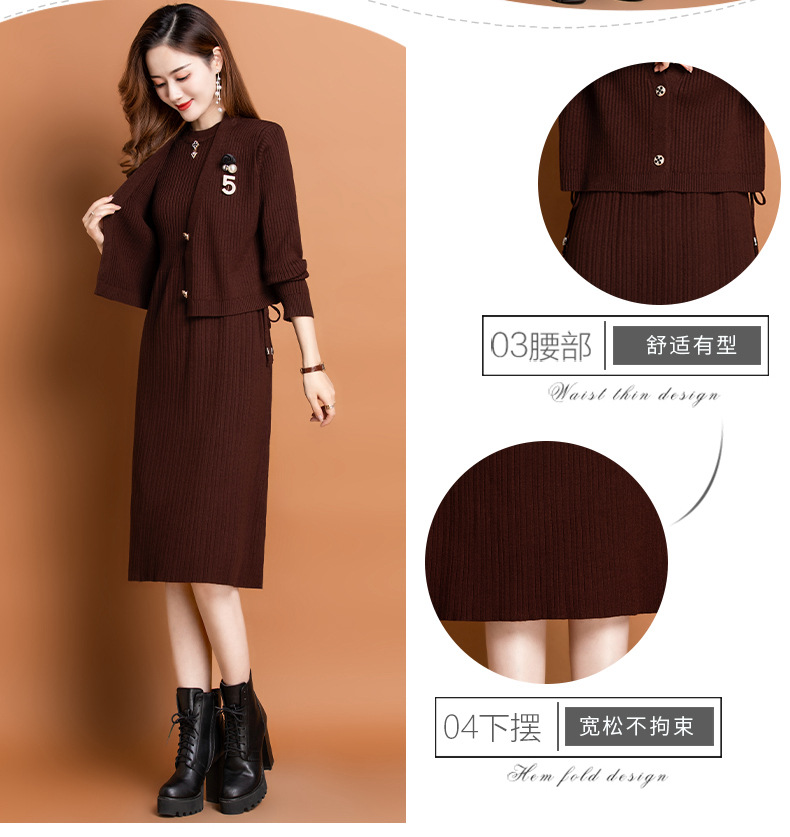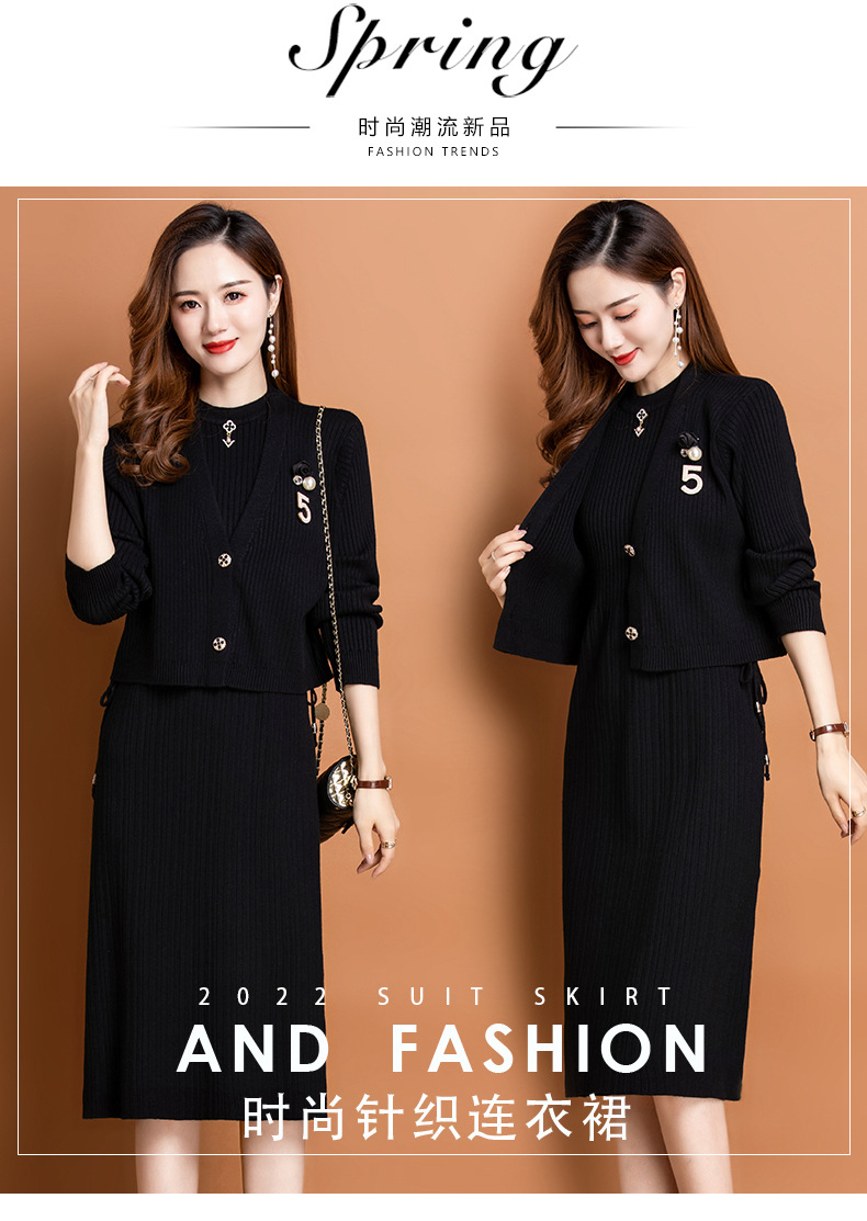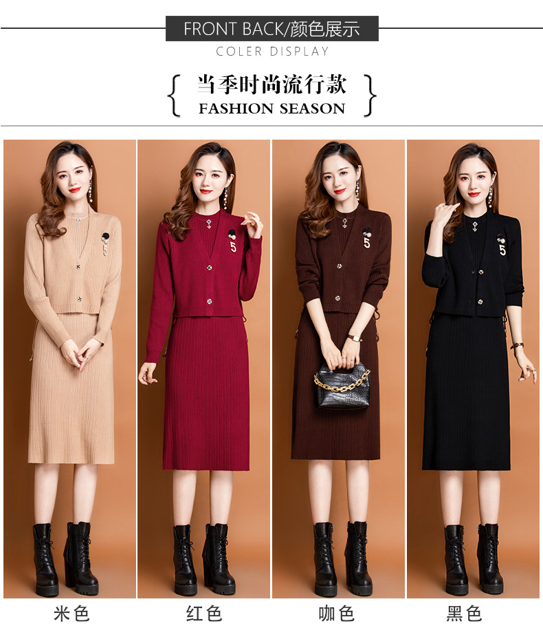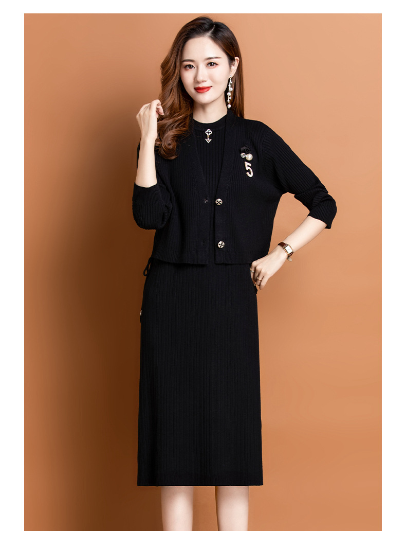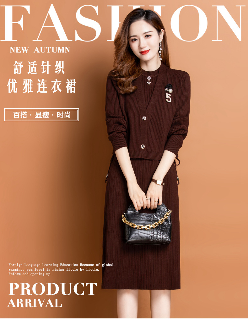 秋冬厚款,中长款针织修身显瘦连衣裙两件套CC-DZX-9830