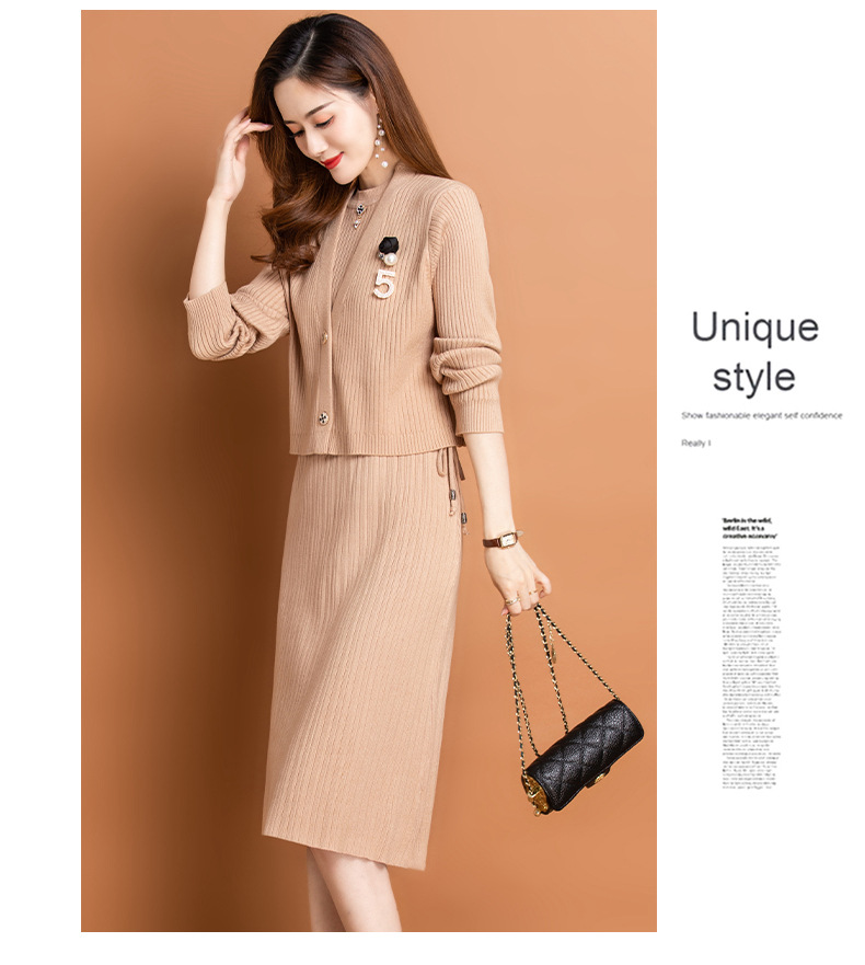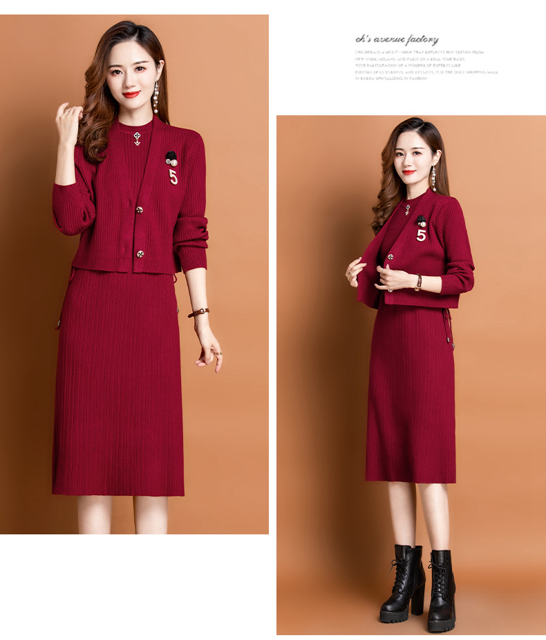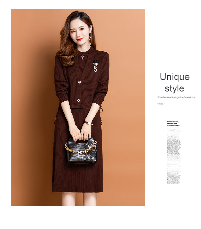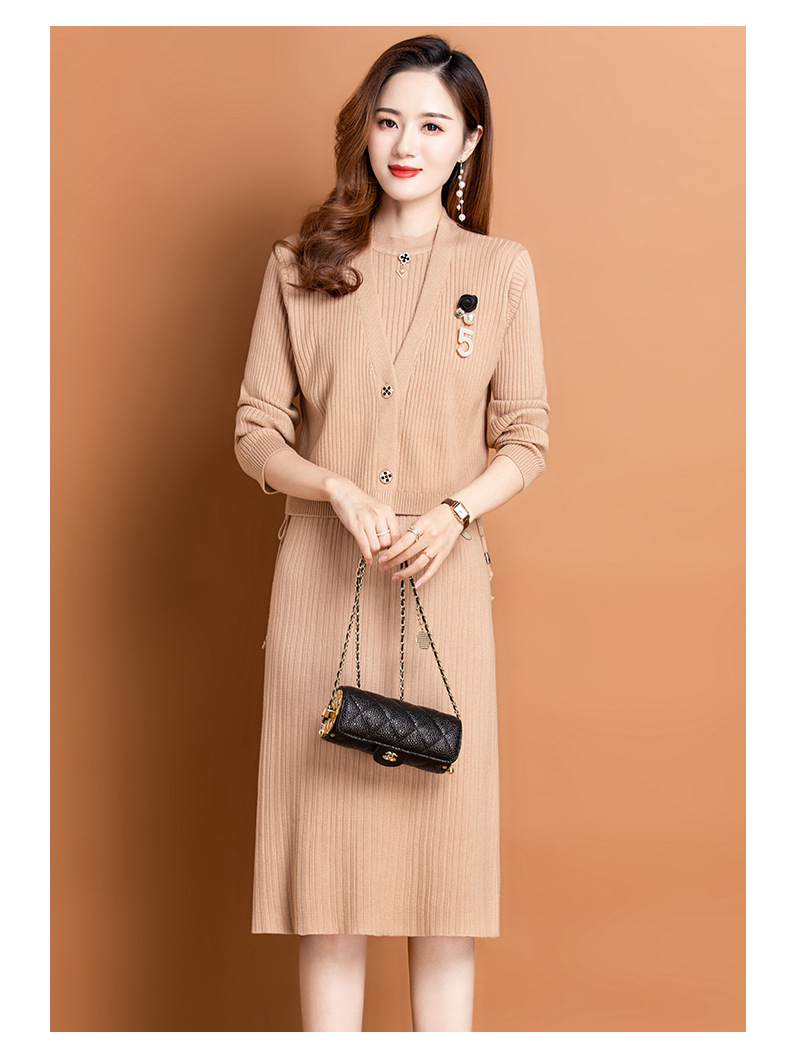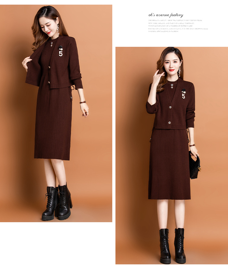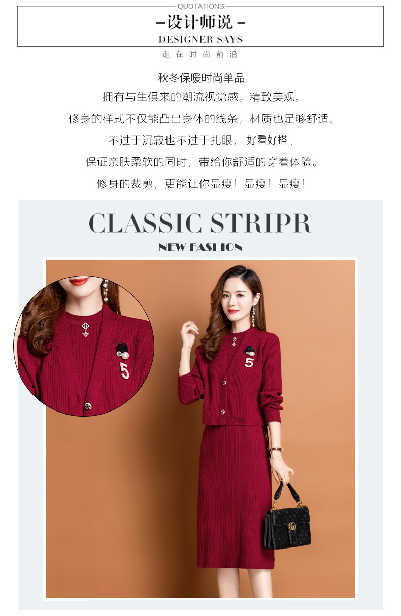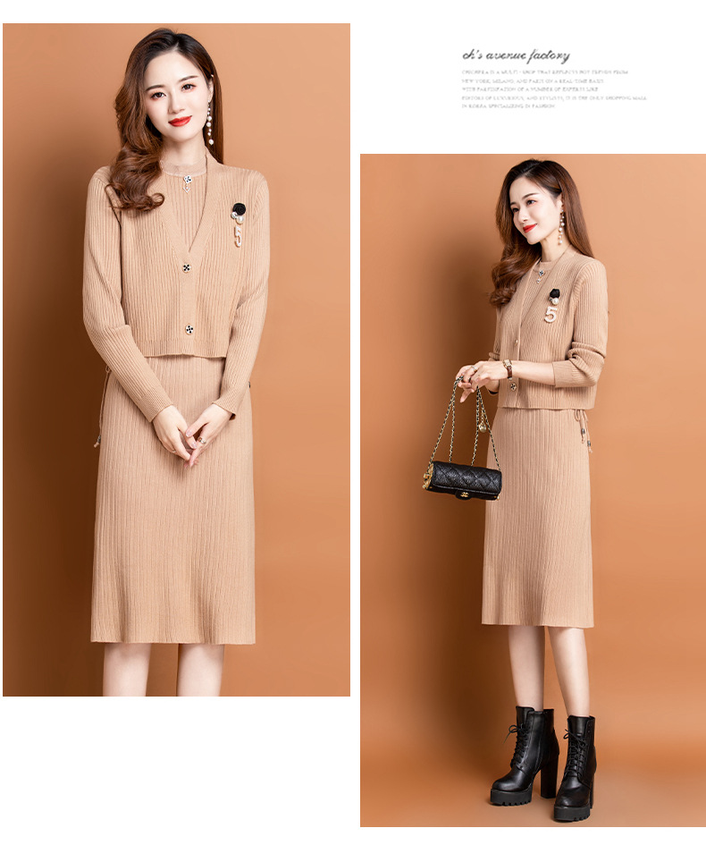 秋冬厚款,中长款针织修身显瘦连衣裙两件套CC-DZX-9830