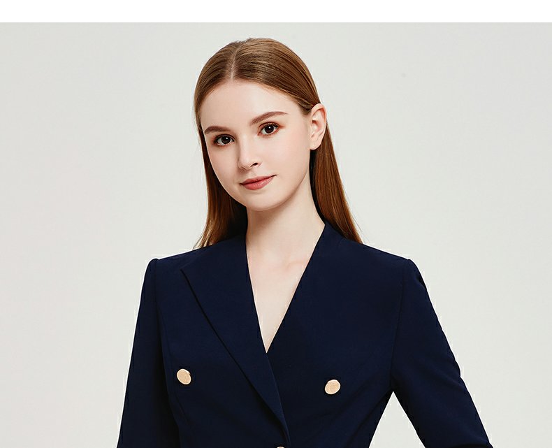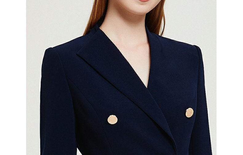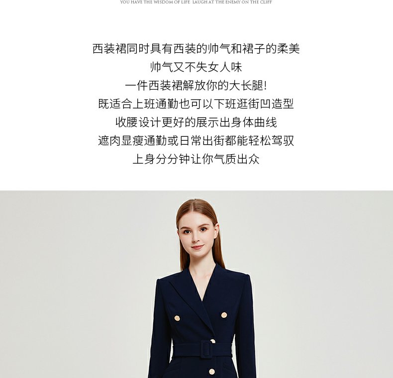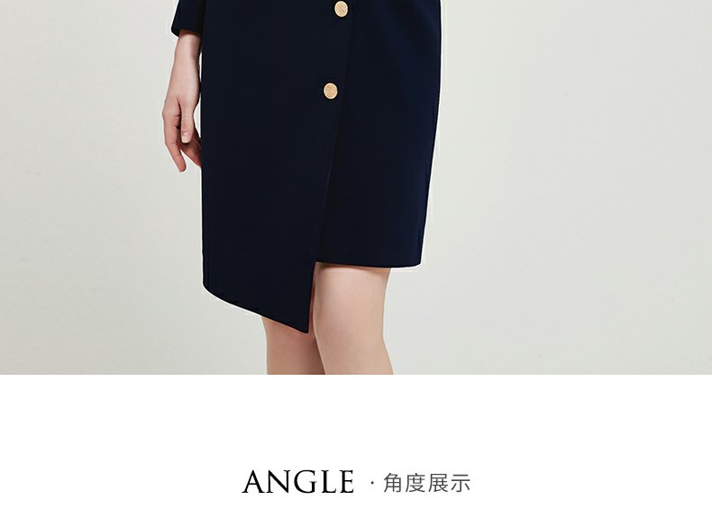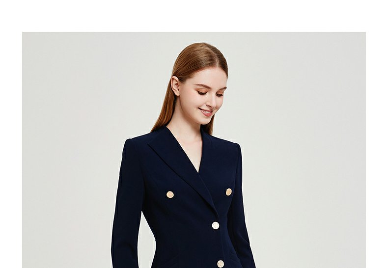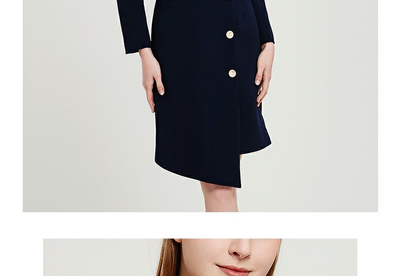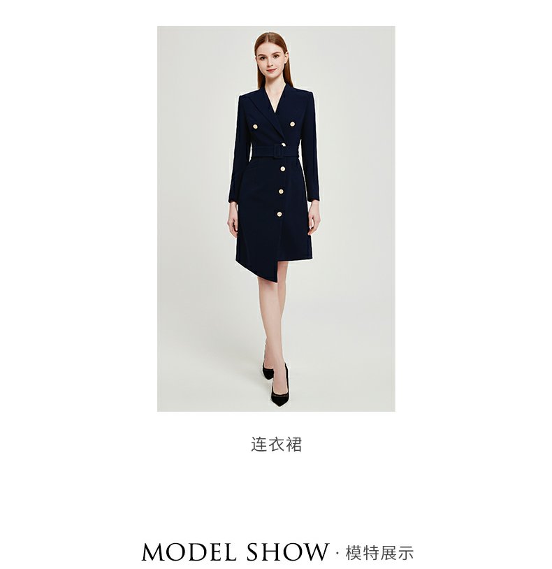 IWY春夏季新款藏青色职业通勤连衣裙女西装领美容院工作服裙子Q13107藏青色