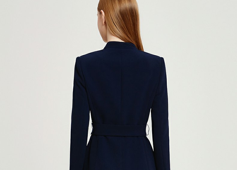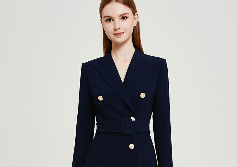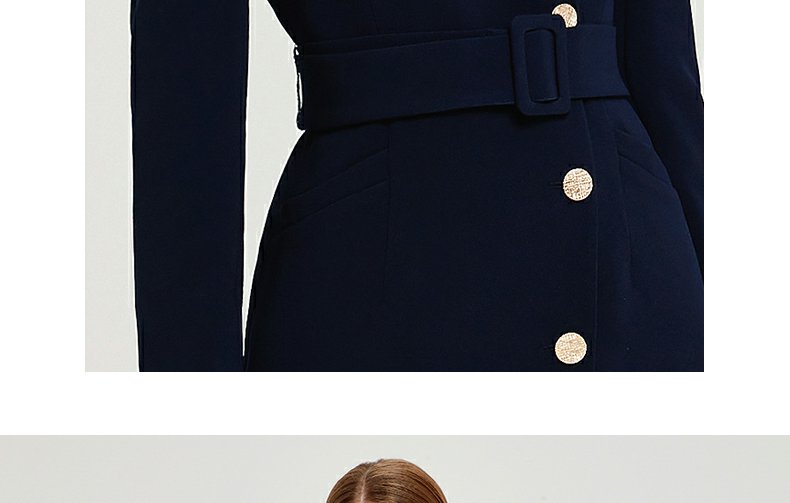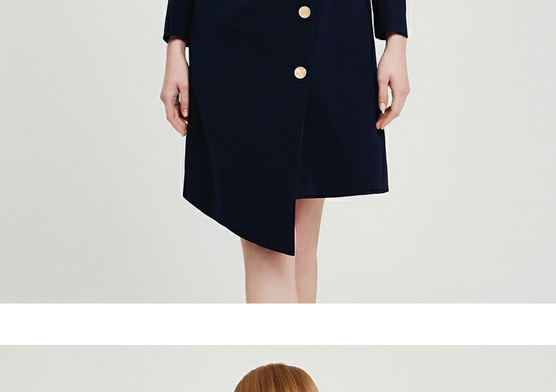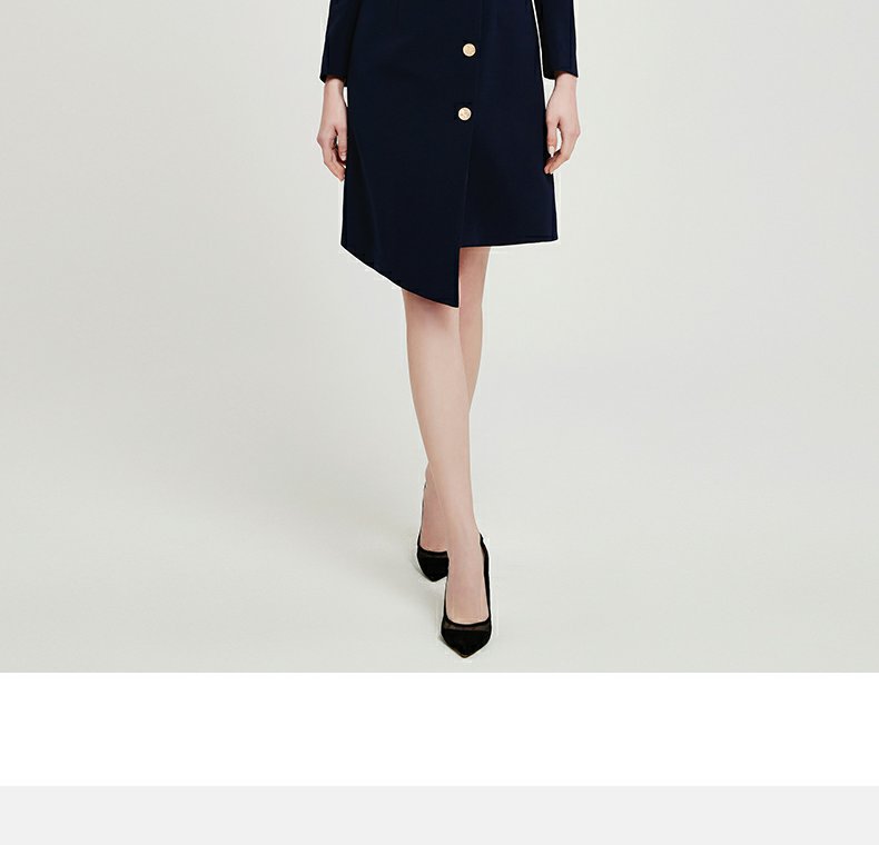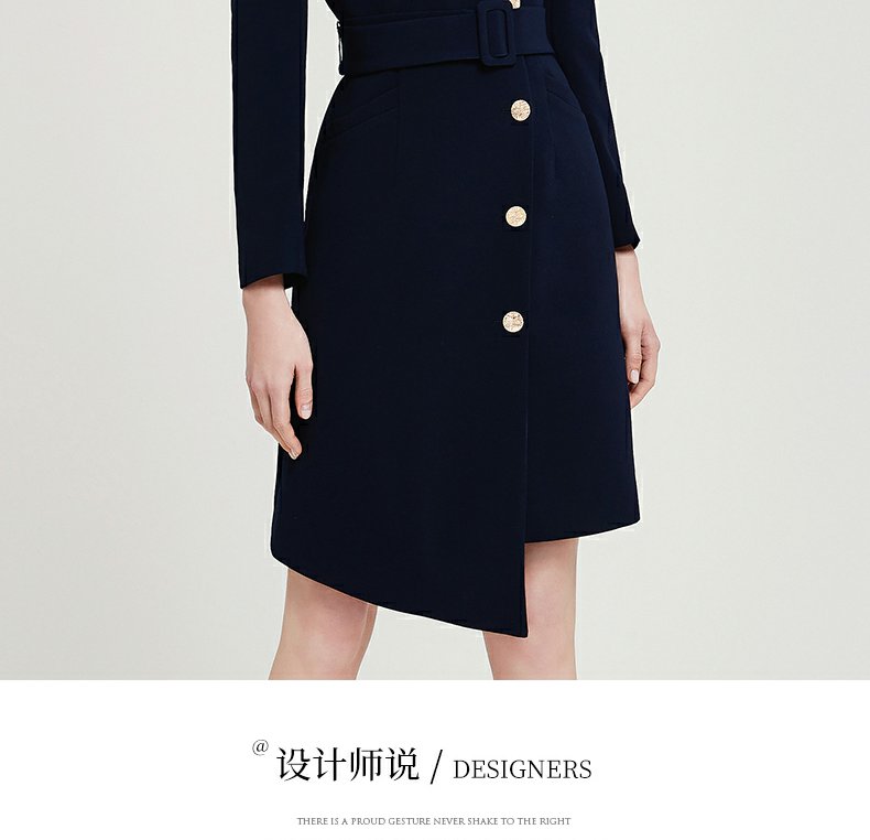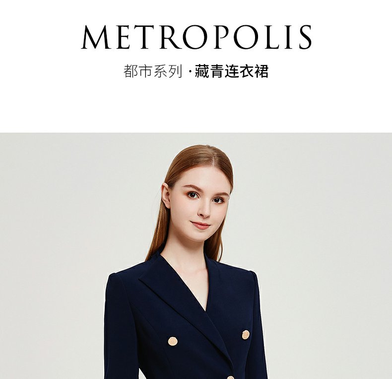 IWY春夏季新款藏青色职业通勤连衣裙女西装领美容院工作服裙子Q13107藏青色