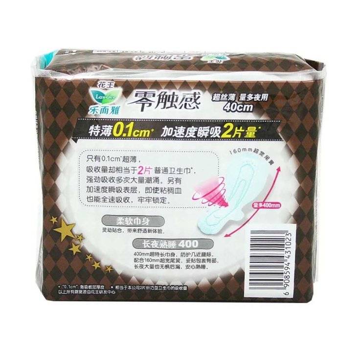 花王乐而雅零触感超丝薄柔爽棉网量多夜用护翼型卫生巾40cm8片