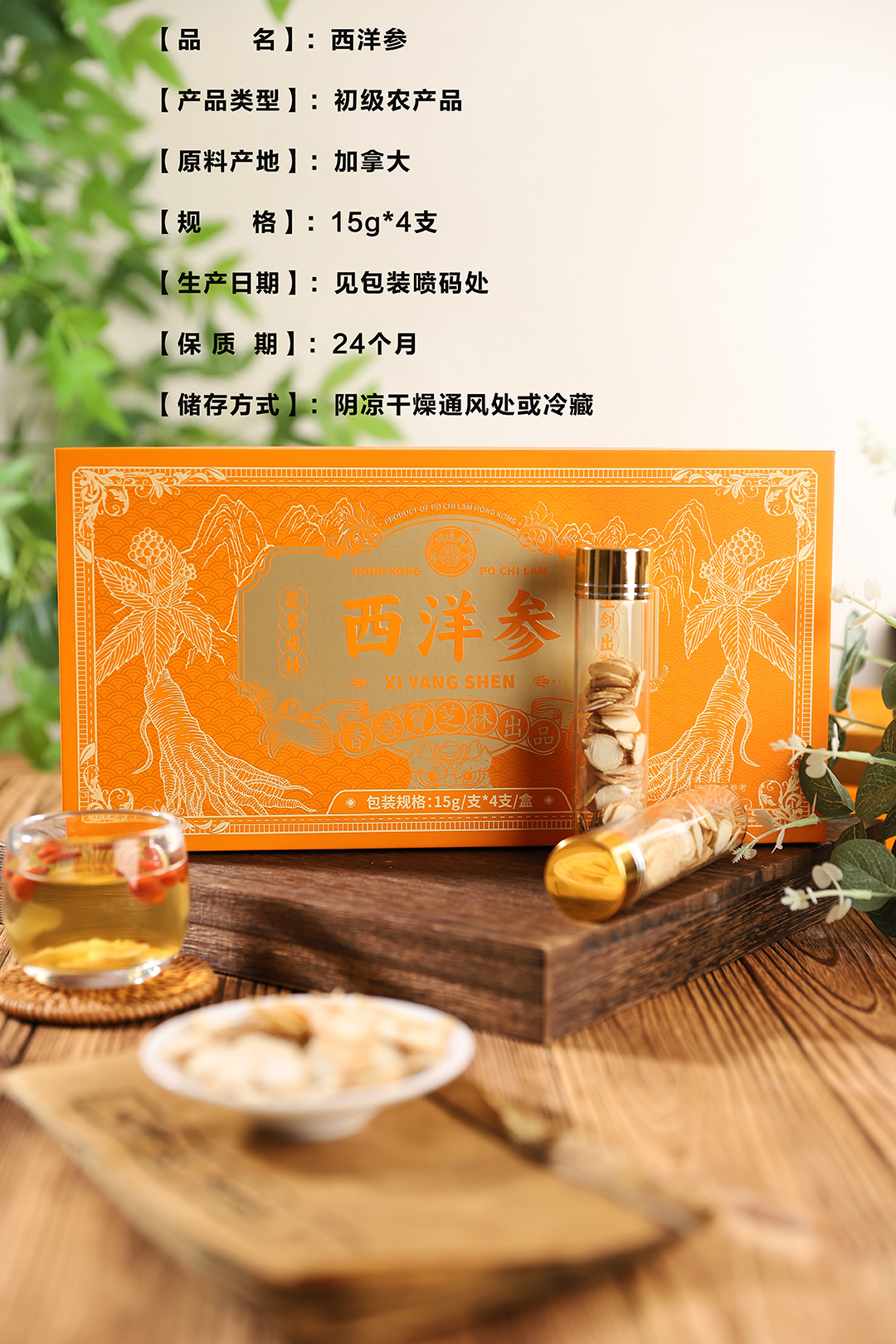 疯抢中!!【香港宝芝林出品】加拿大进口5年参龄西洋参片 15g*4支礼盒装/送高档手提礼袋