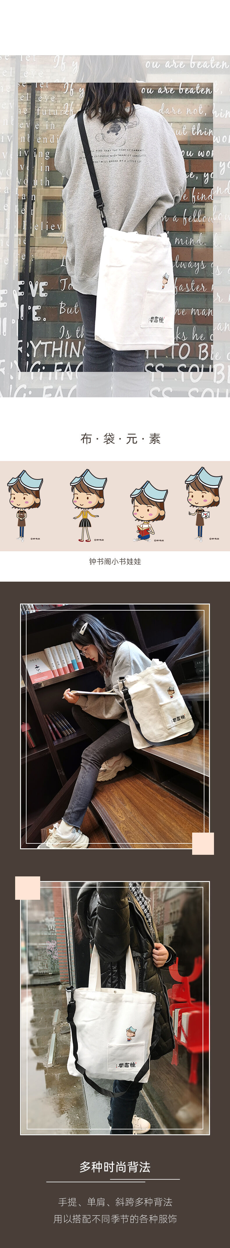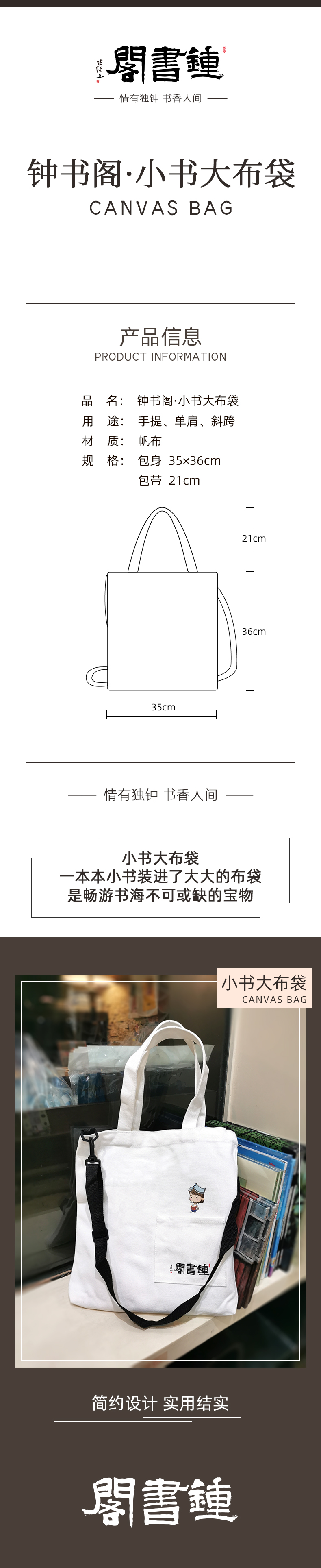 钟书阁小书袋布袋帆布包女单肩斜挎包包ins拎包学生日系文艺简约大容量小清新韩版白色环保袋托特包通勤