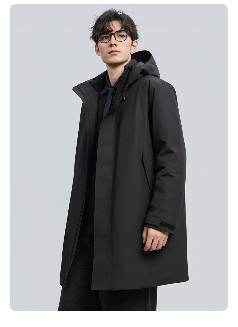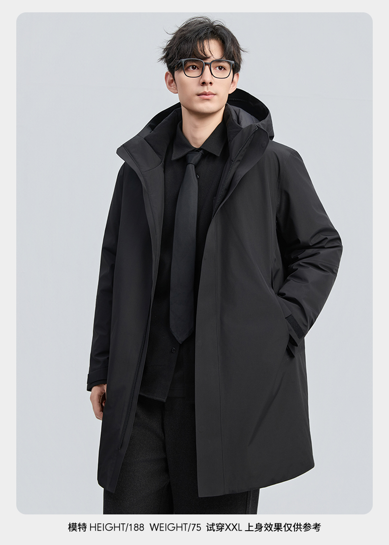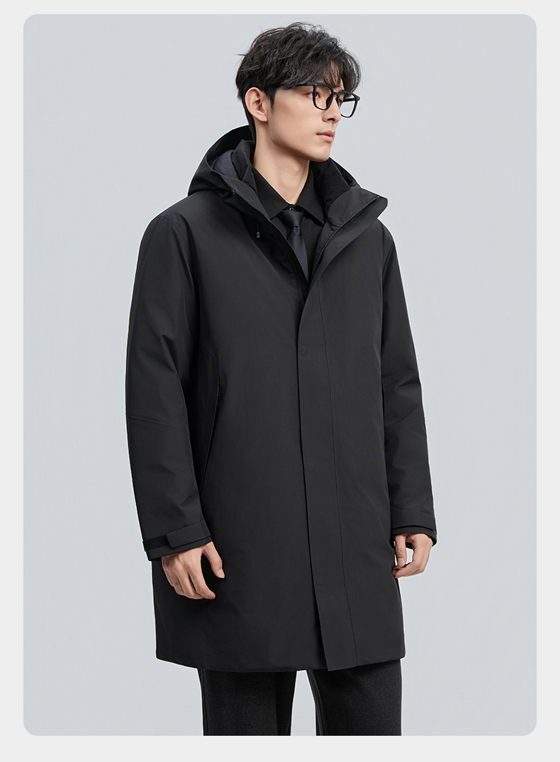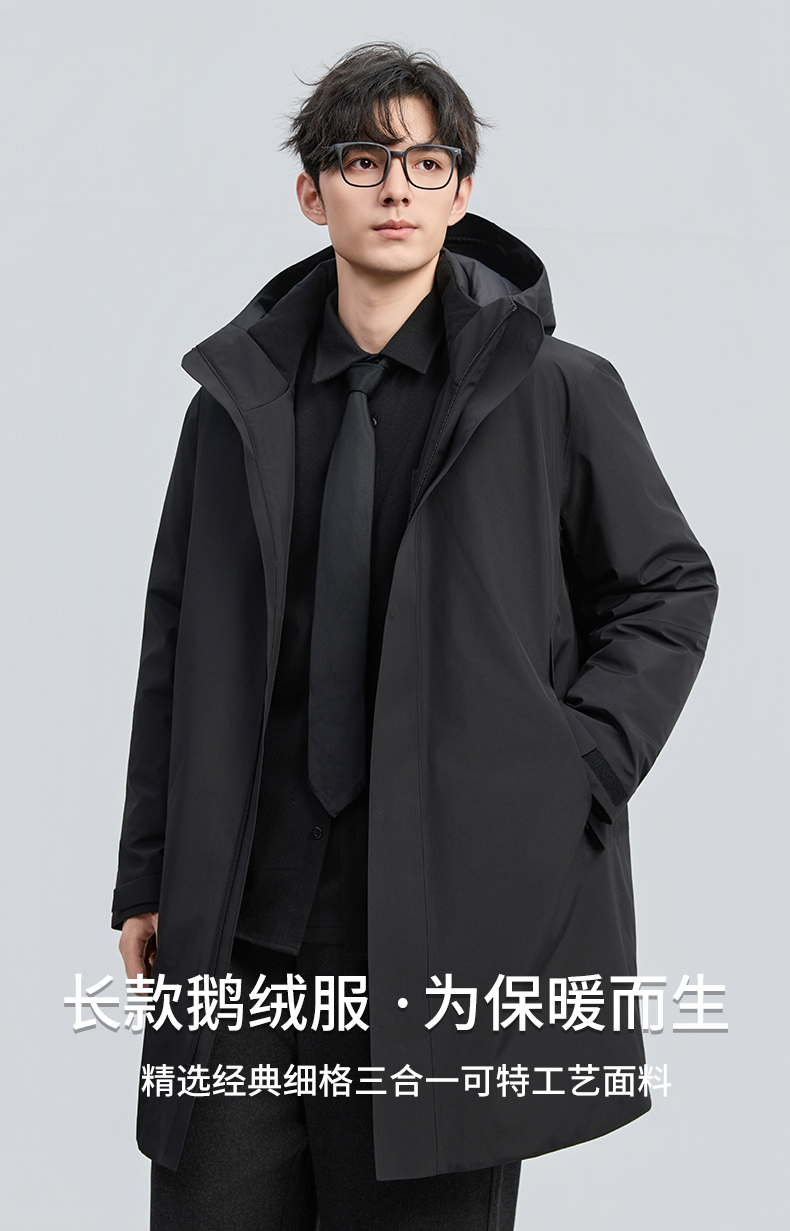 贝纳川冬季新品长款带帽鹅绒服ECF405255402