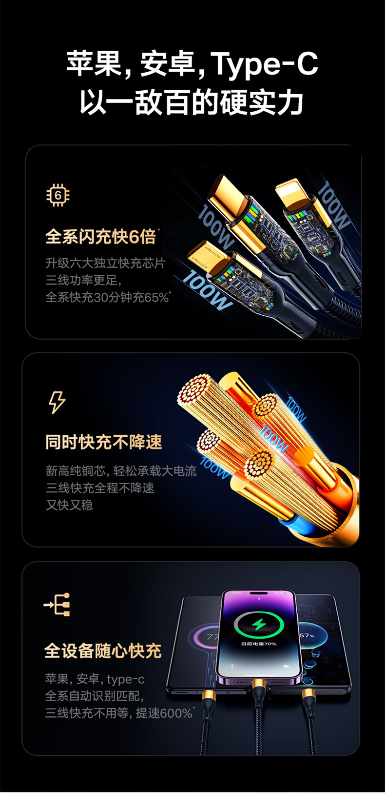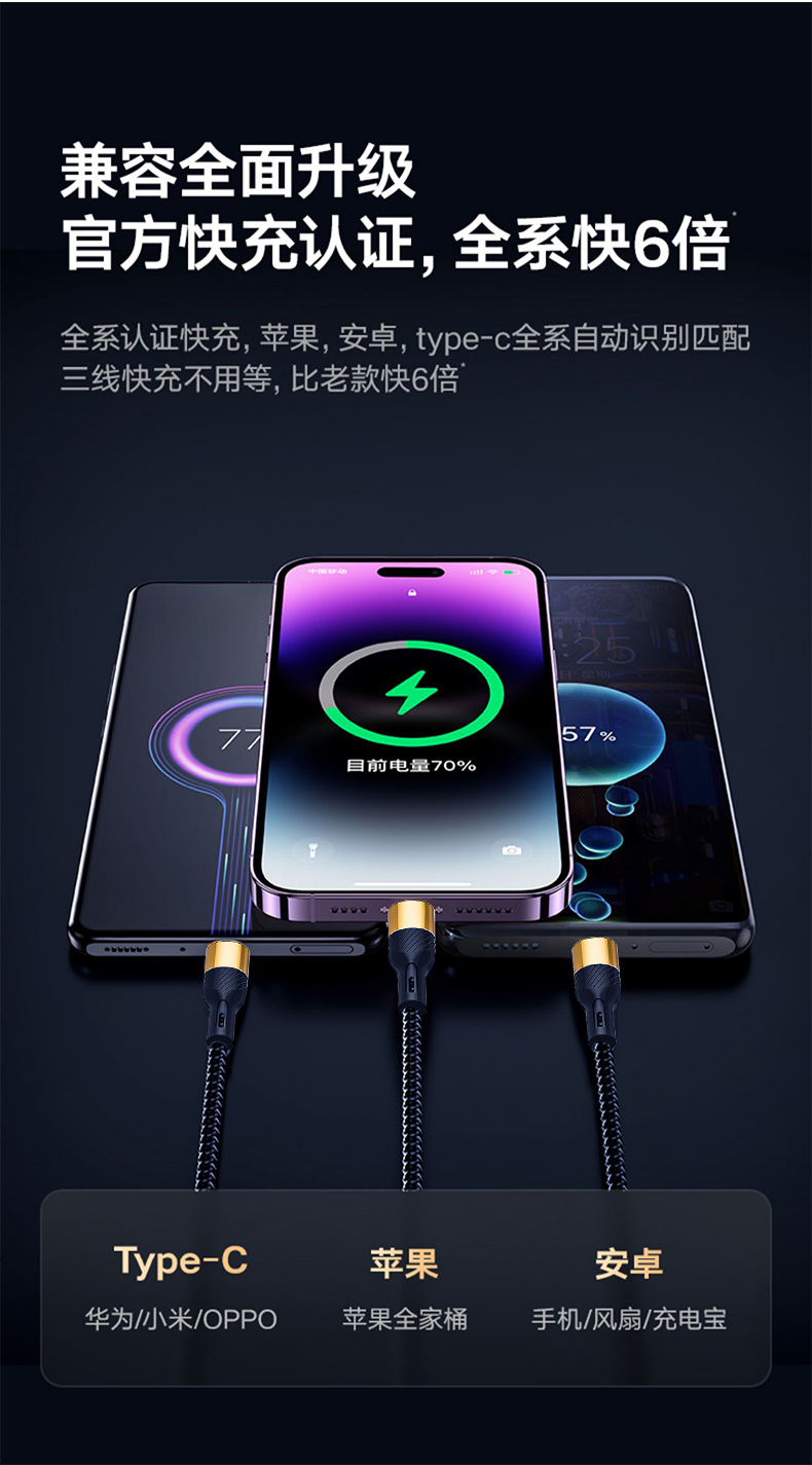 春节不打烊【耐用护机❗️充电快不久等】200W超级快充数据线三合一充电线一拖三适用苹果17华为OPPO荣耀。jd