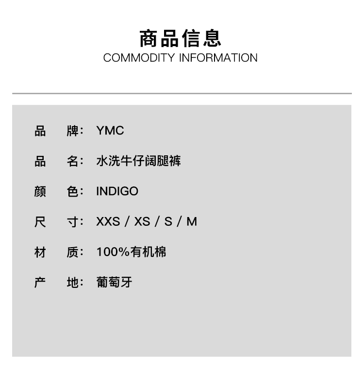 YMC DEADBEAT TROUSER 女装有机棉水洗牛仔阔腿裤
