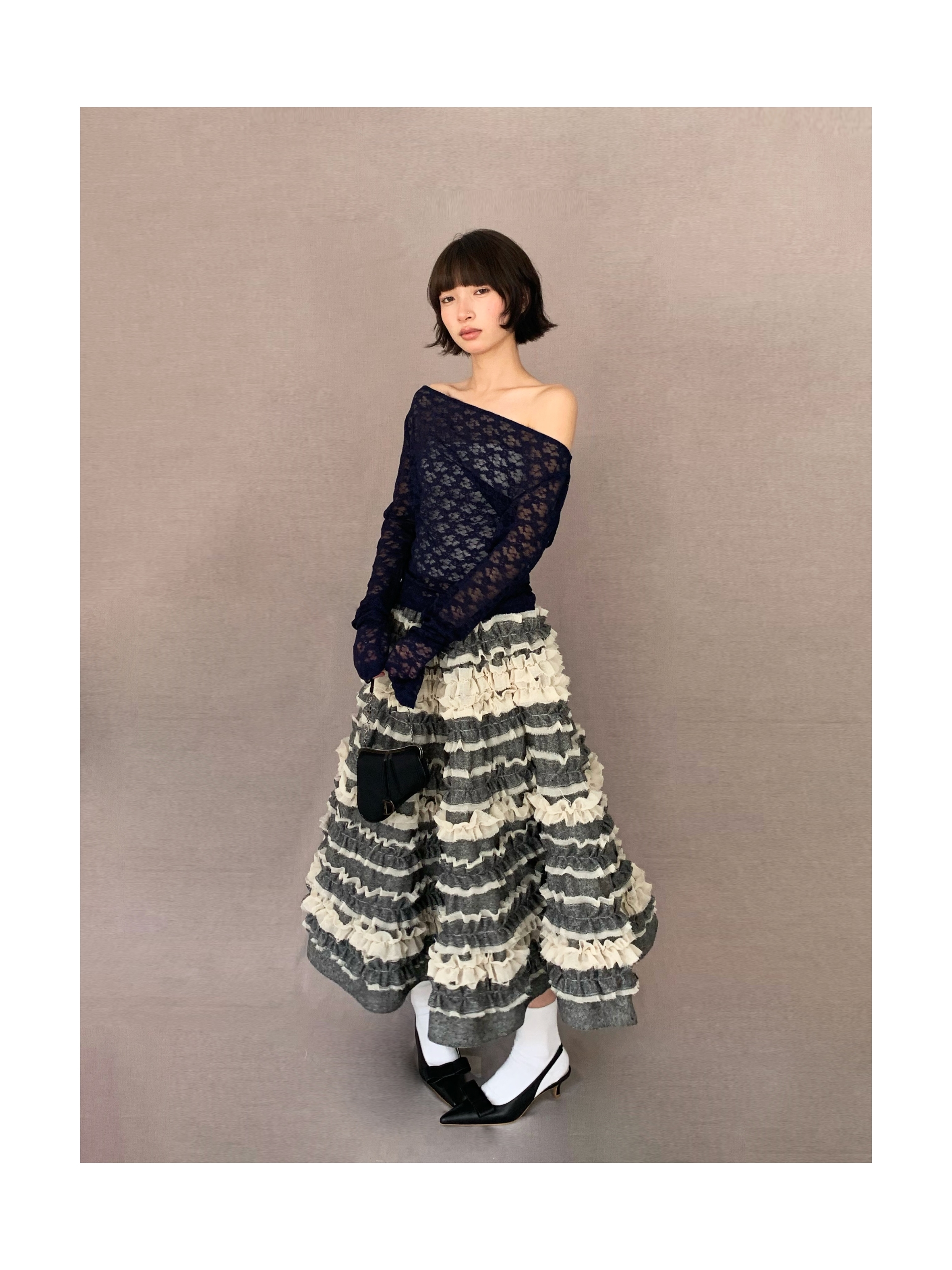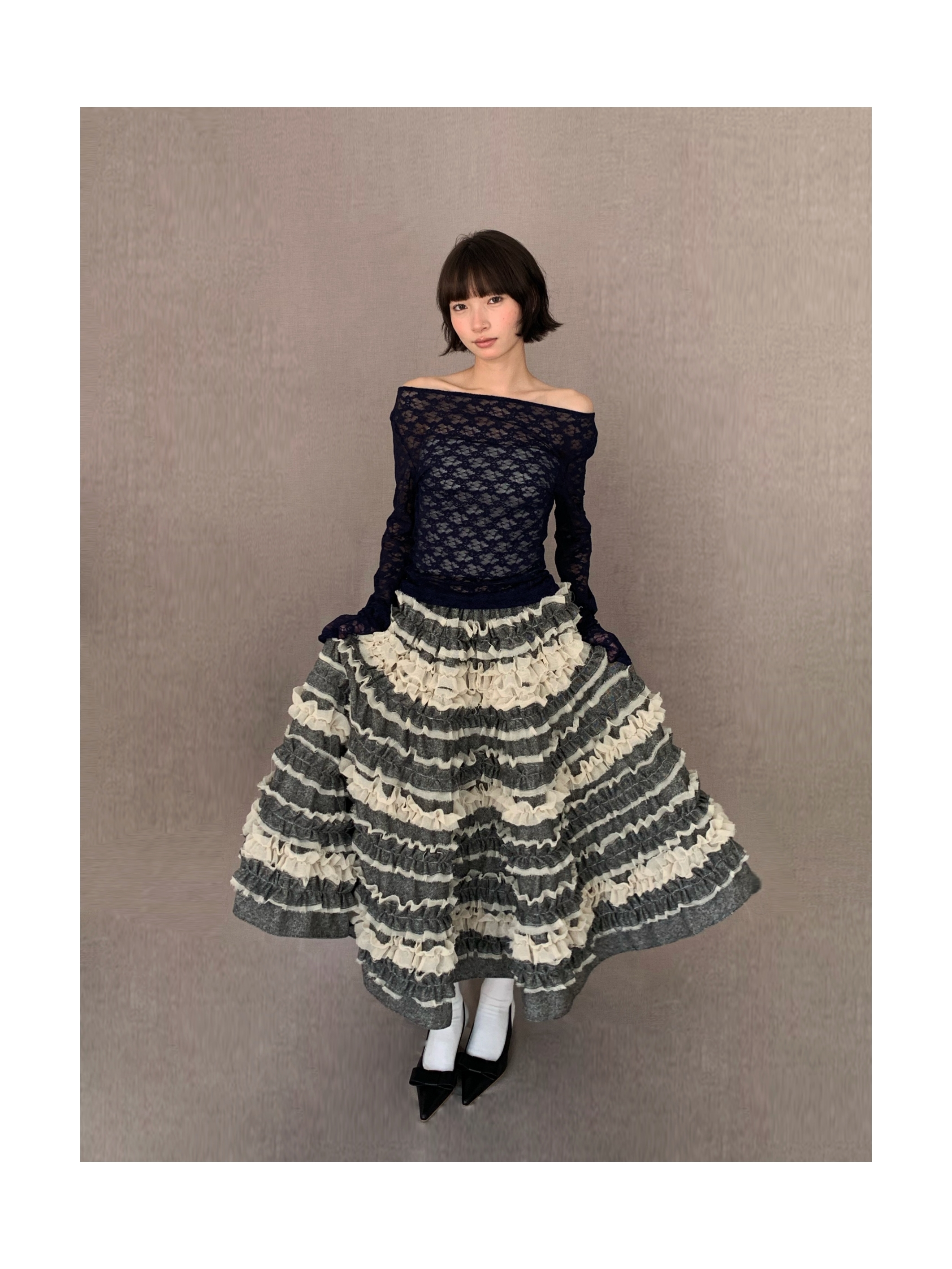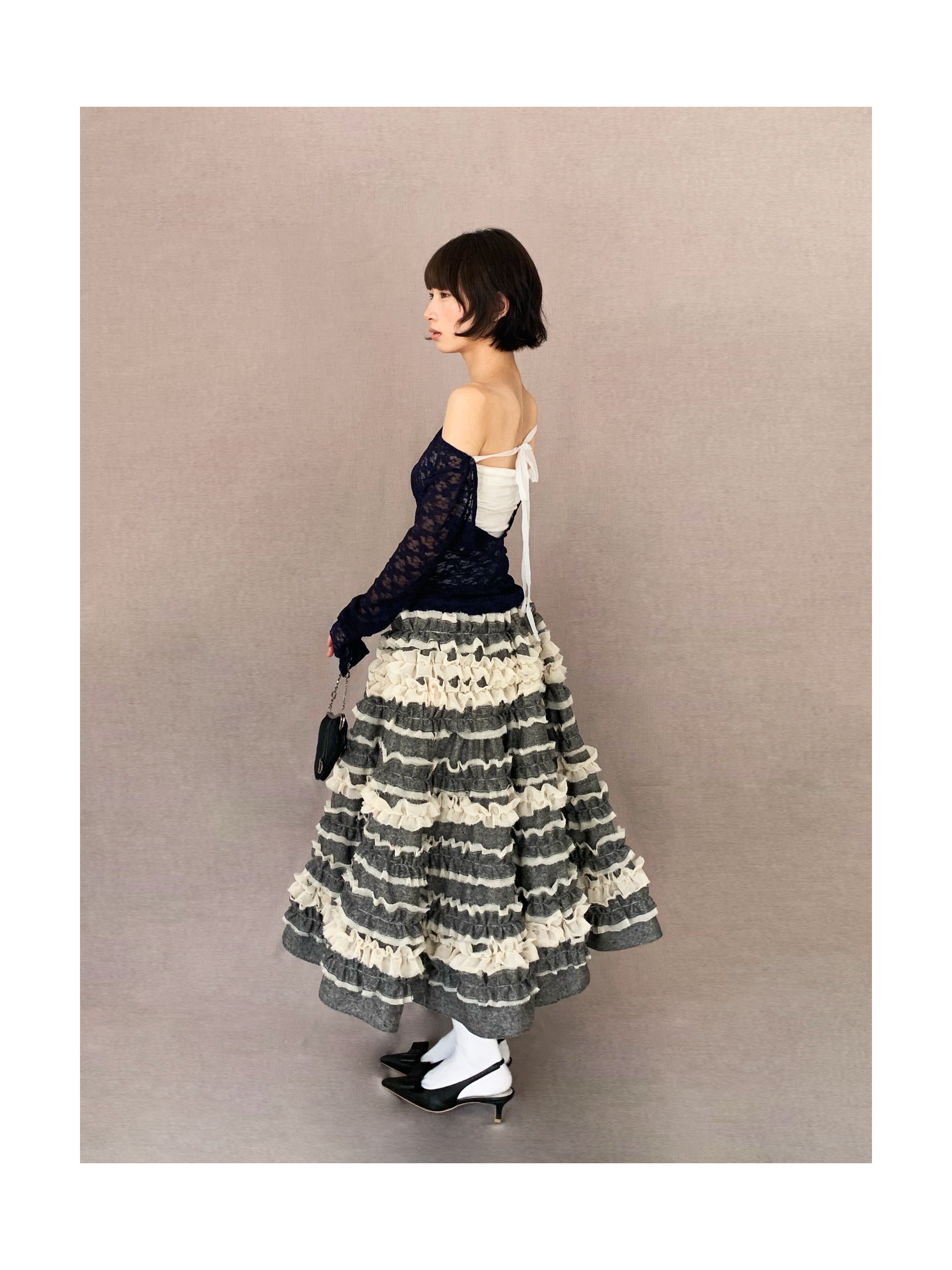 Kaiy Xiao 魔法系列 羊毛蛋糕重工奶油褶长裙