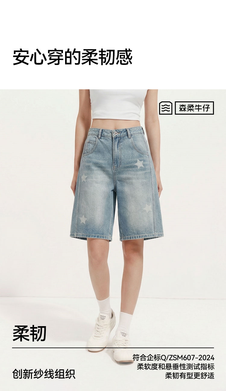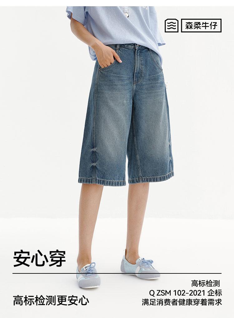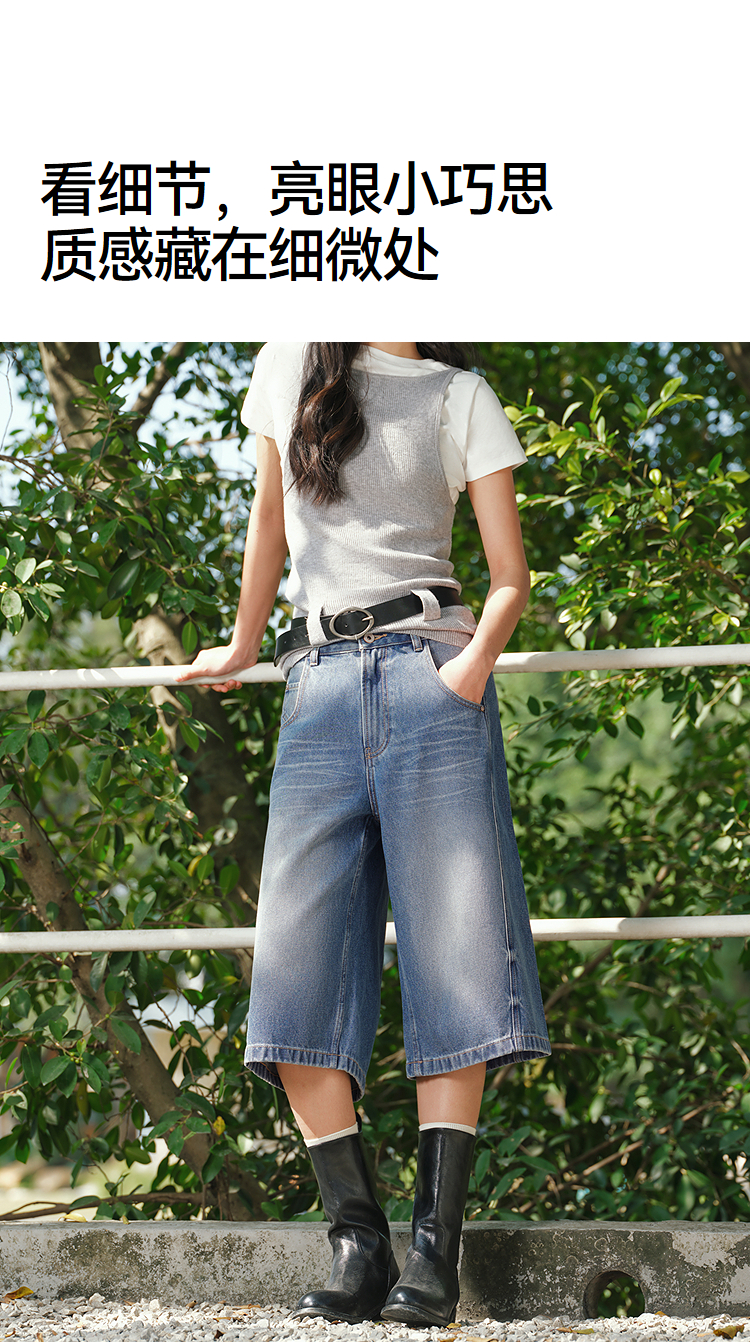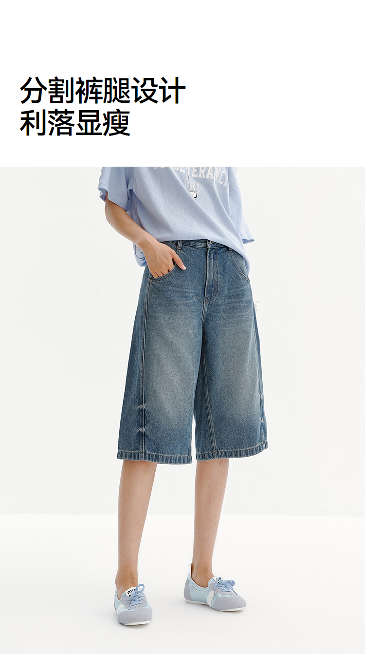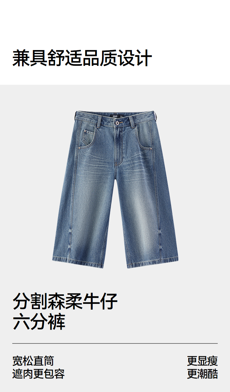 森柔|商场同款森马牛仔裤女夏季分割做旧宽松2026新款潮酷六分裤