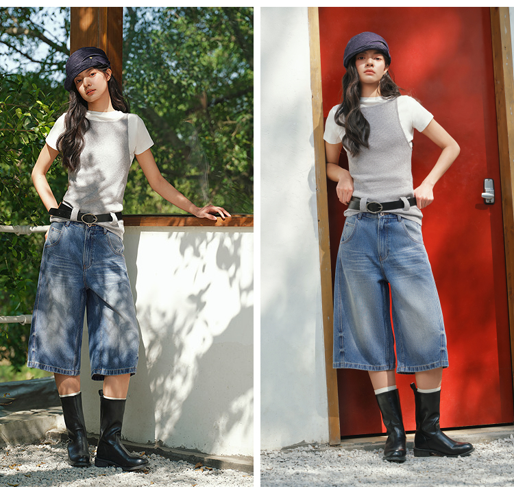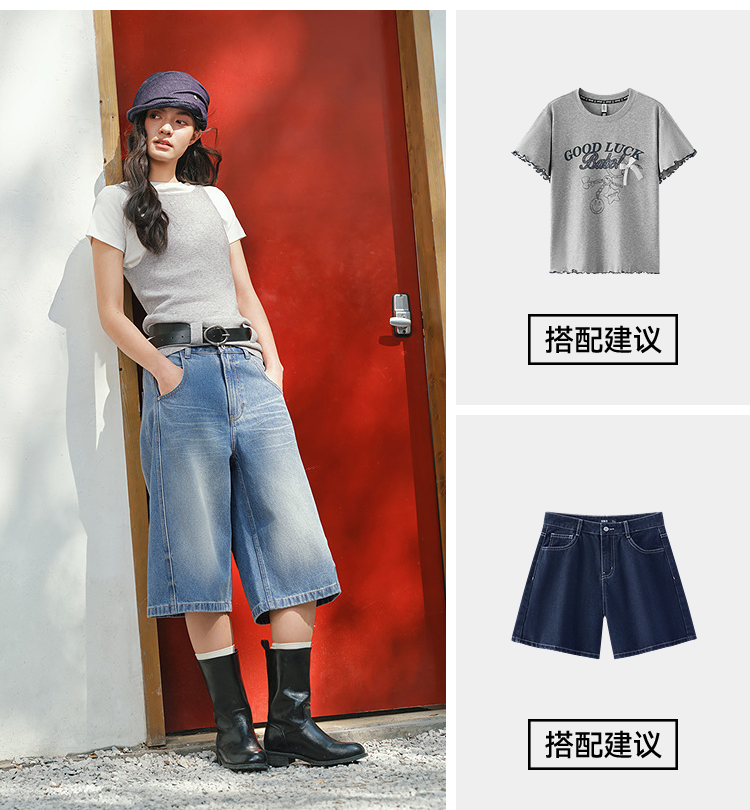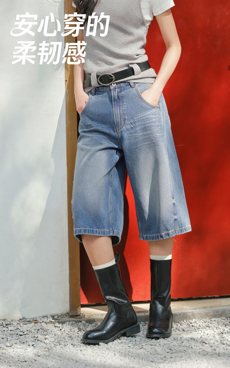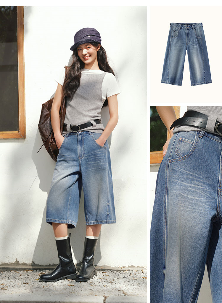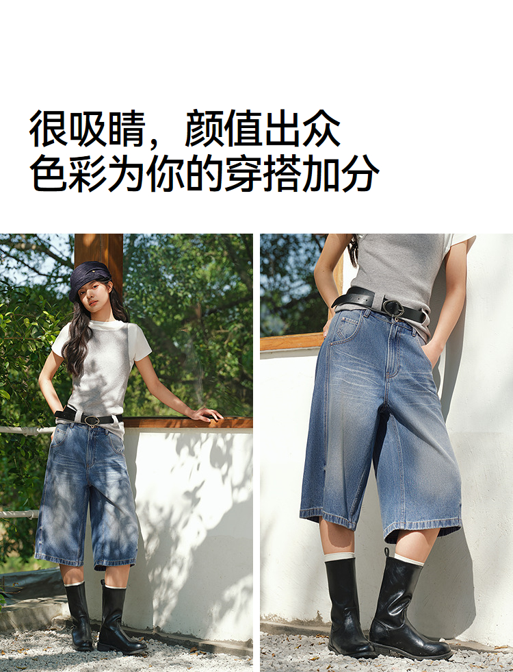 森柔|商场同款森马牛仔裤女夏季分割做旧宽松2026新款潮酷六分裤