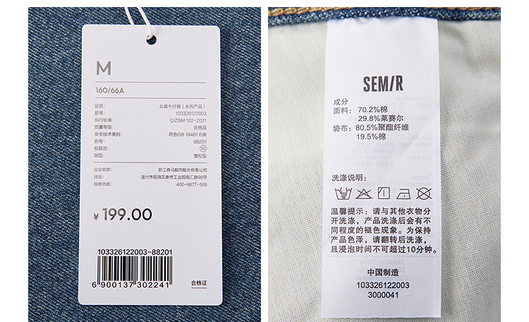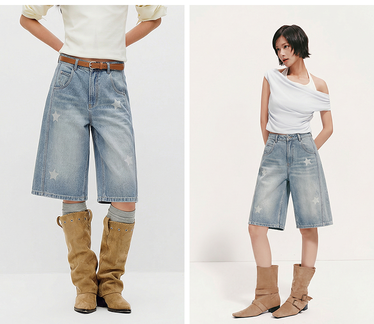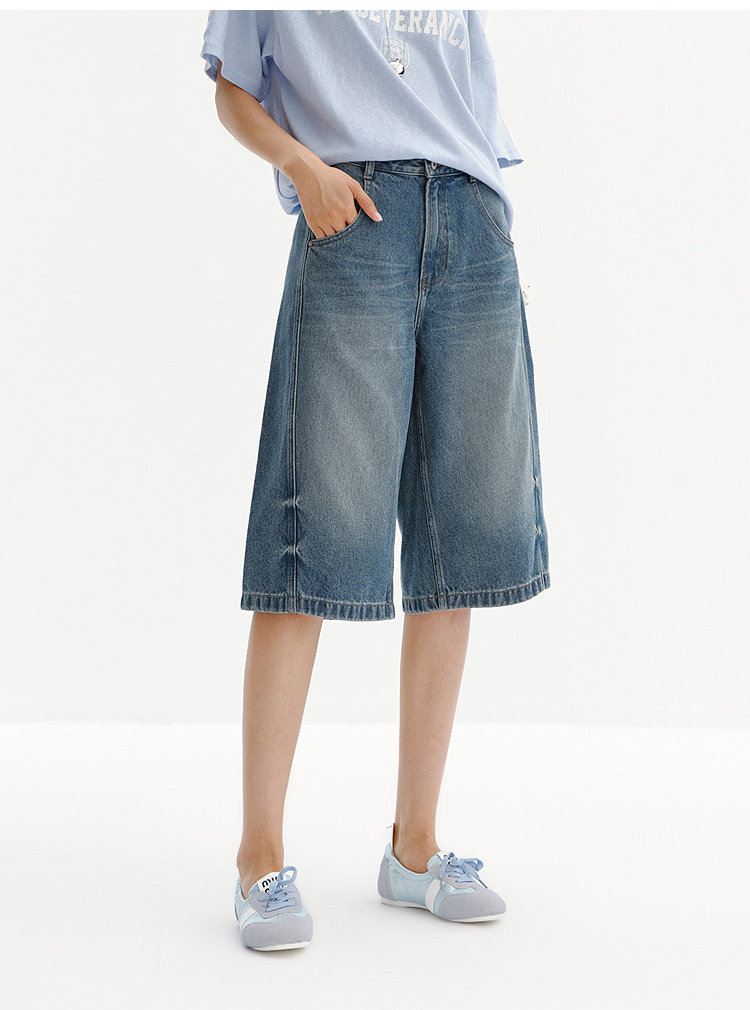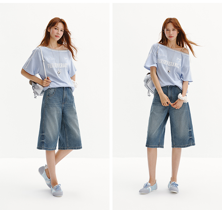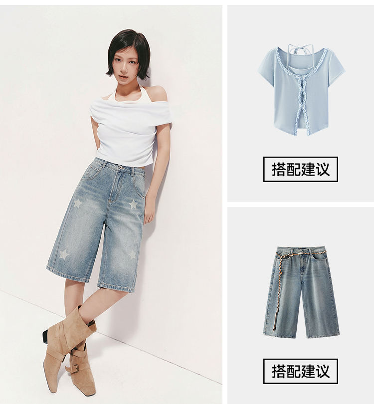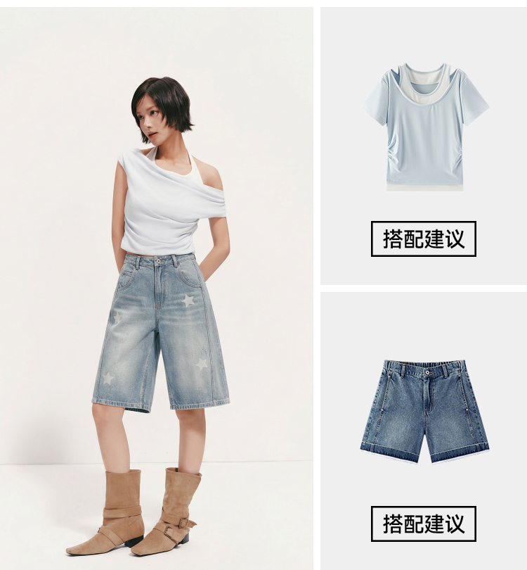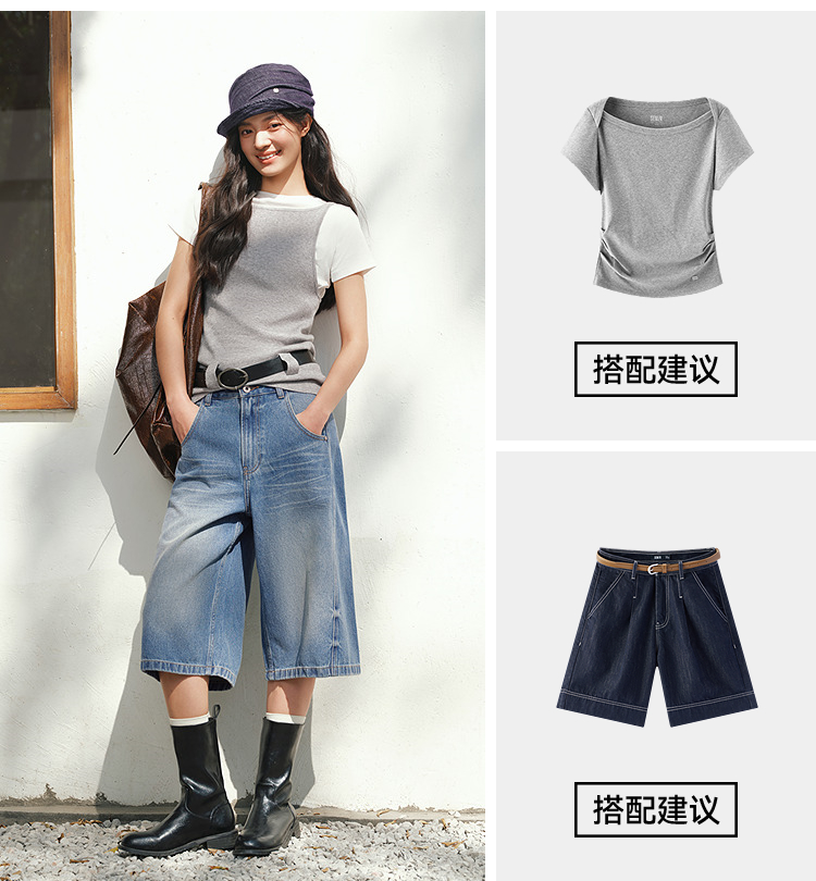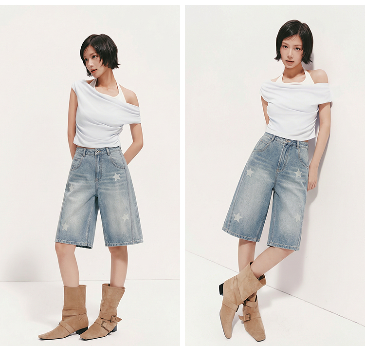森柔|商场同款森马牛仔裤女夏季分割做旧宽松2026新款潮酷六分裤