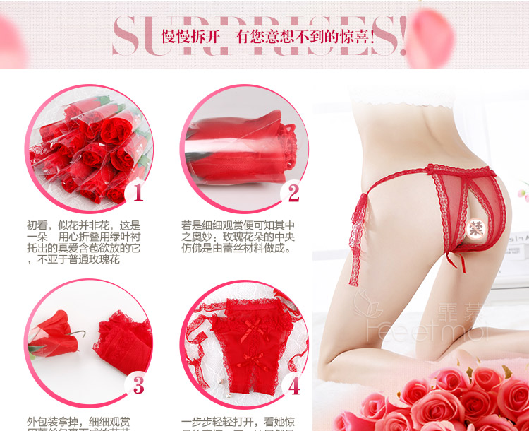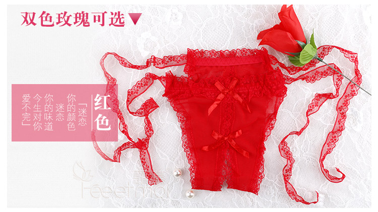 霏慕玫瑰花内裤女士内裤7126 性感开档情趣内衣内裤角色扮演制服诱惑 情侣蕾丝