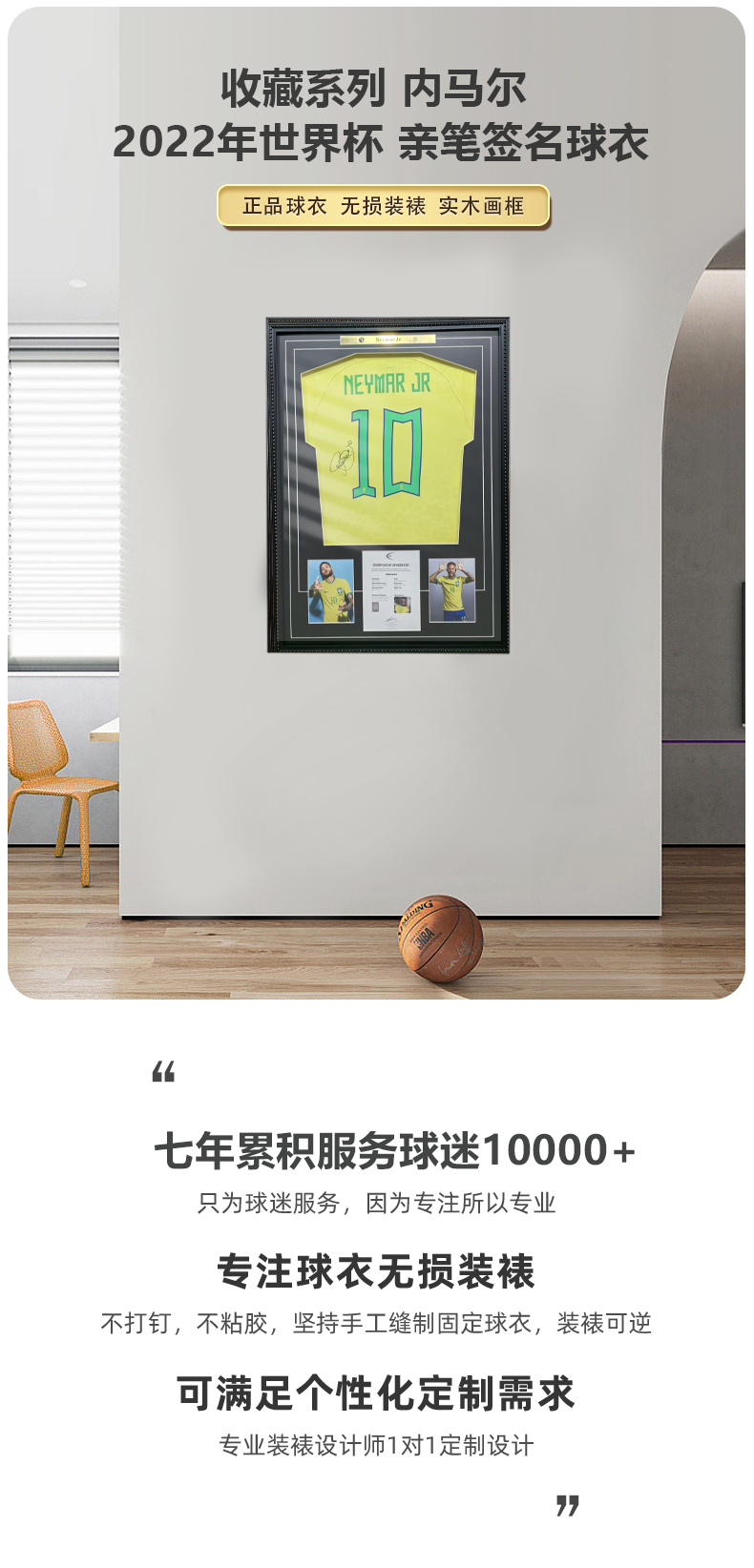 收藏系列 内马尔 2022年世界杯 亲笔签名球衣