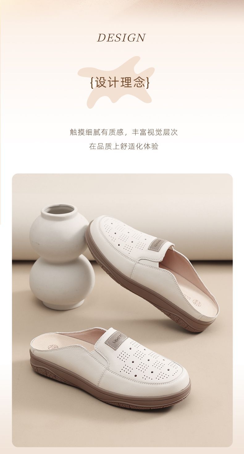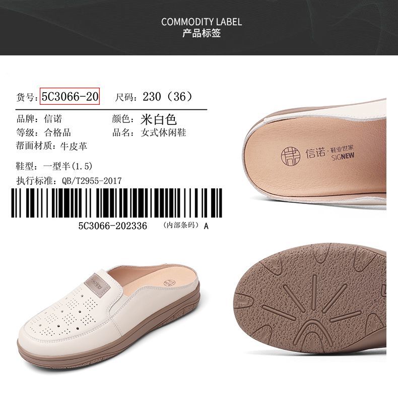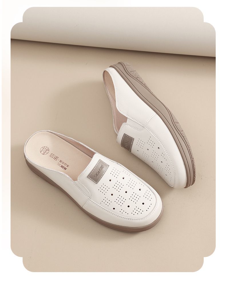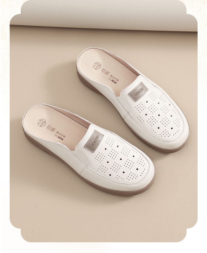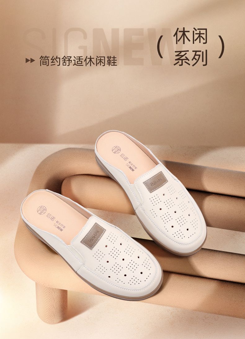信诺真皮包头半拖鞋女夏季2025新款平底单鞋舒适软底透气穆勒鞋子5C3066-20