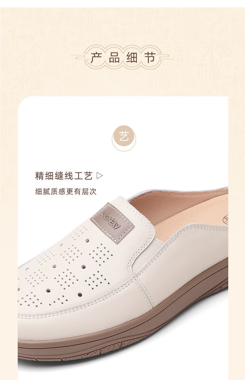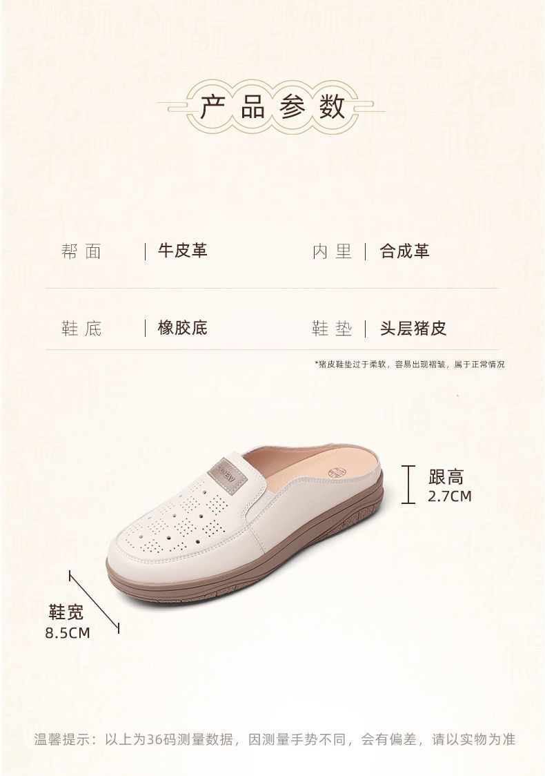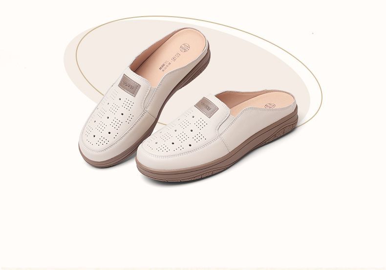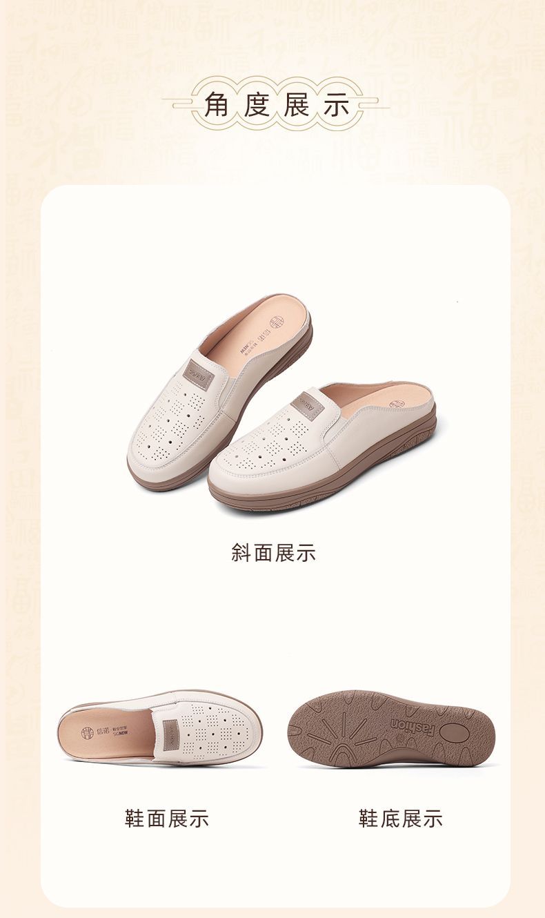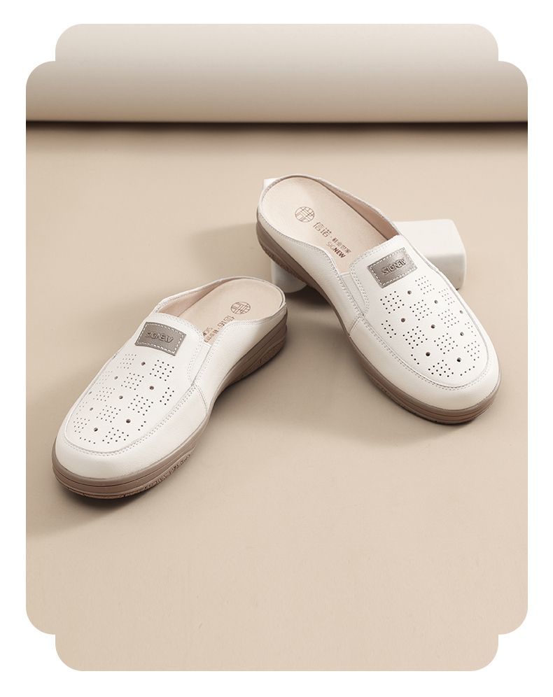 信诺真皮包头半拖鞋女夏季2025新款平底单鞋舒适软底透气穆勒鞋子5C3066-20