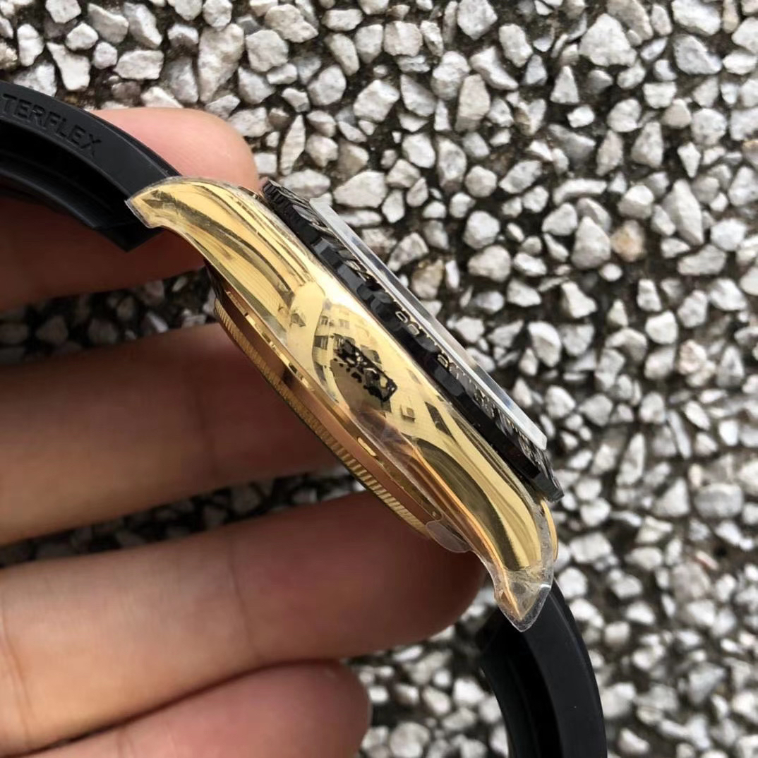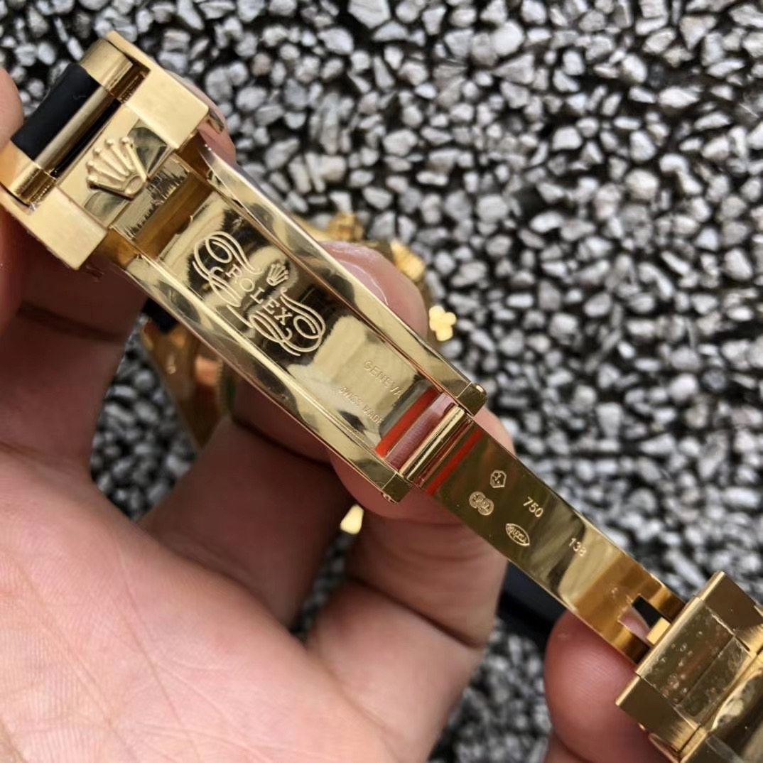 N劳li士迪通拿V8最终版本m116518ln-0042,单独真正4130机芯,精钢镀厚金,黄金表壳。表壳厚度和zp一致,全部计时功能100% 实现, 使用了订制版KIF避震器