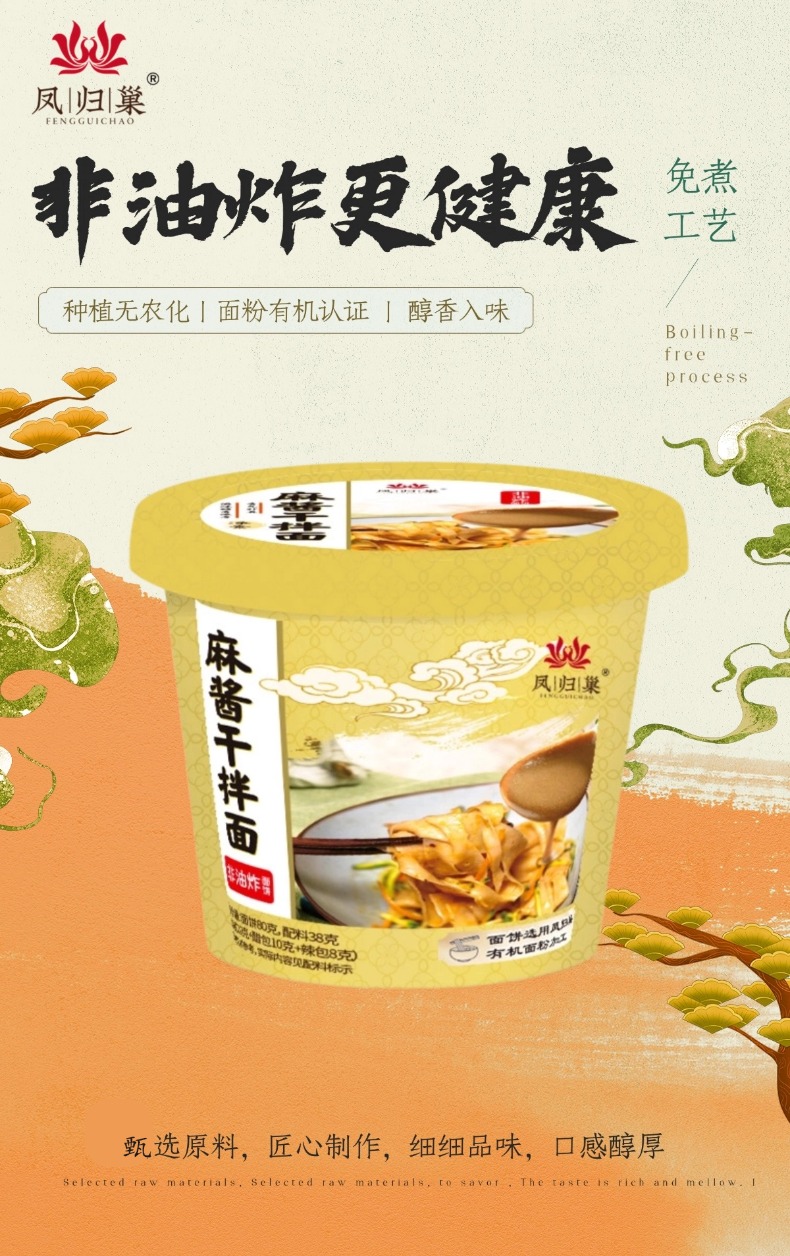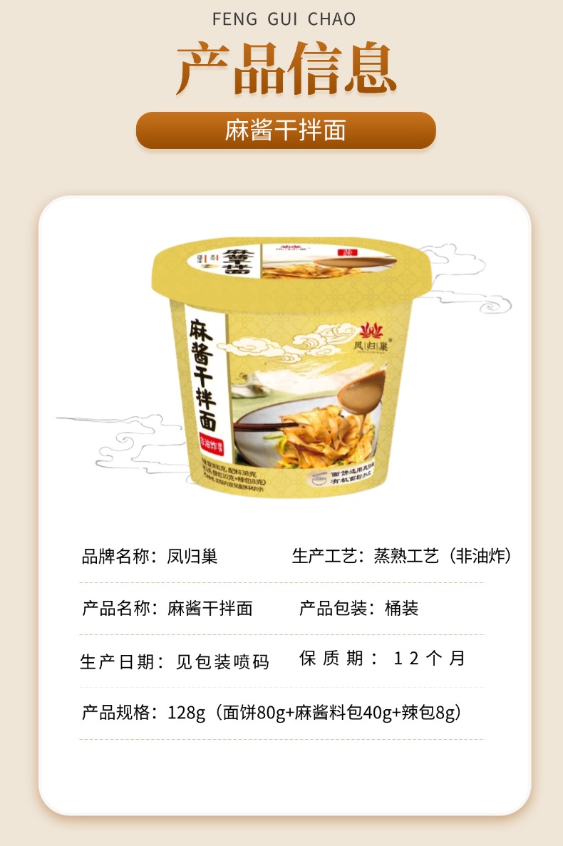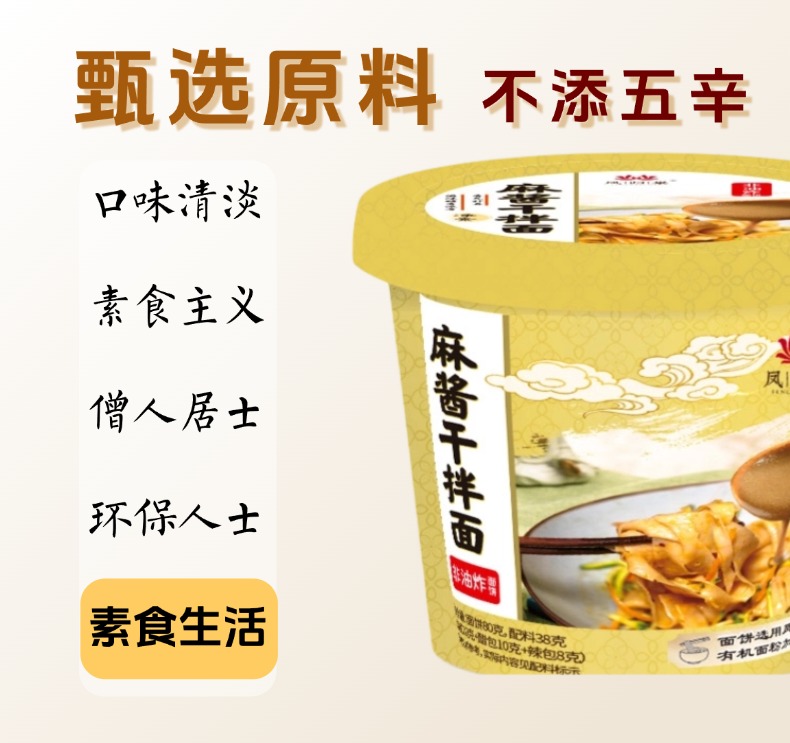 麻酱干拌面非油炸素食方便面 128g/桶 不含五辛 凤归巢 灵魂麻酱配方包裹每根面条,香浓到舔碗底 旅行加班必备