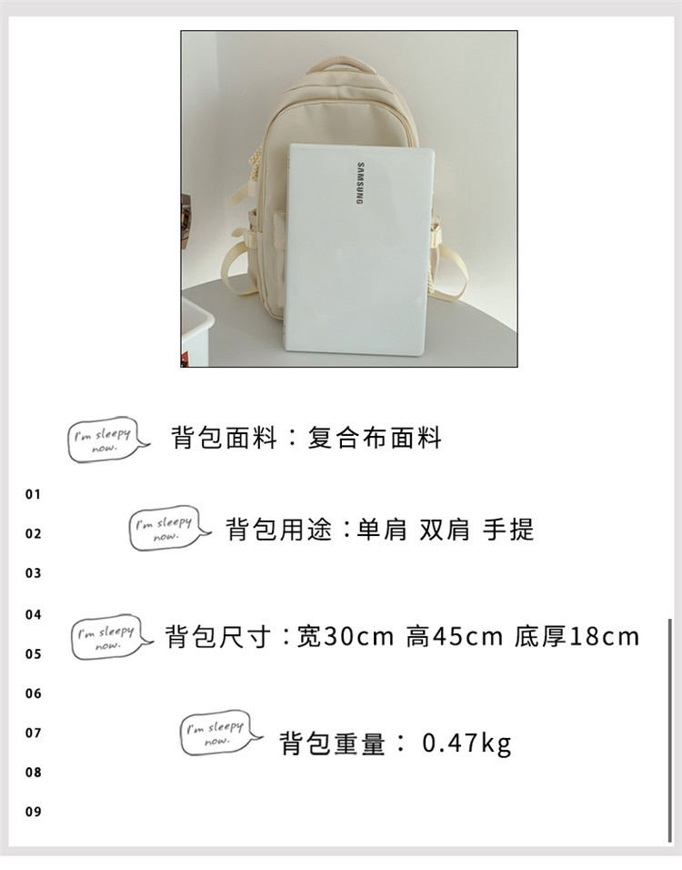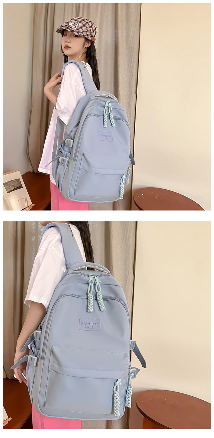 新款百搭学生书包女 森系小清新纯色双肩包 韩版大容量 轻便大学生休闲背包