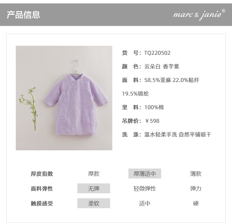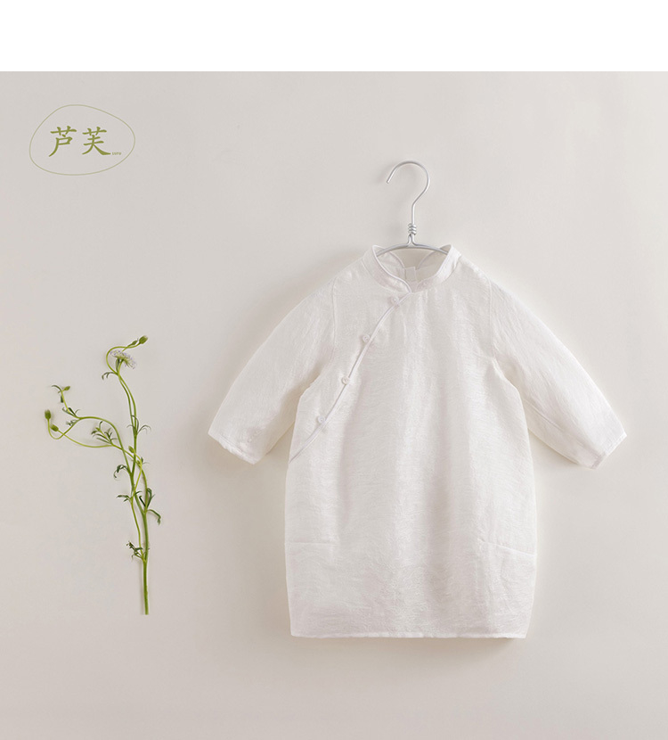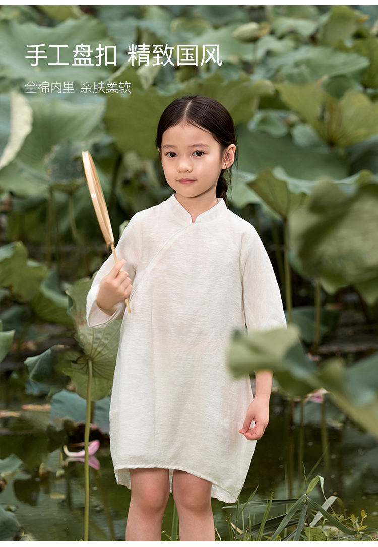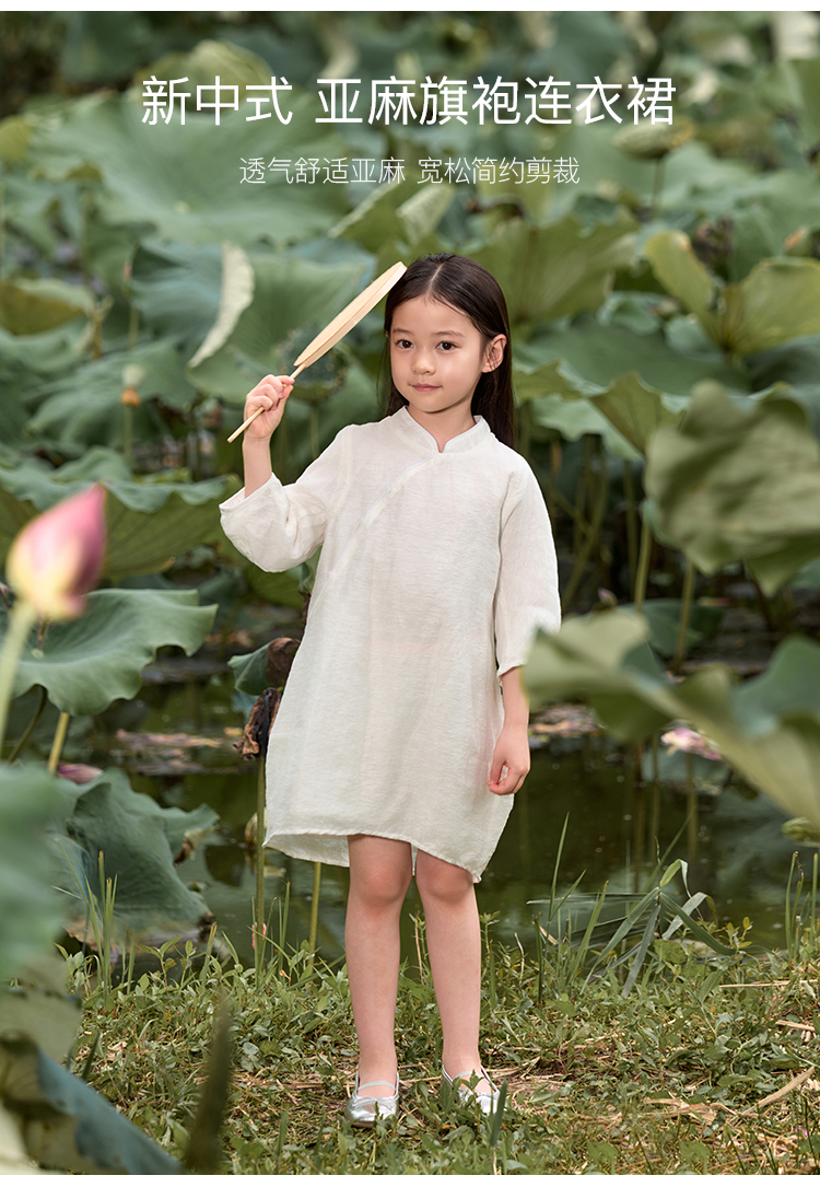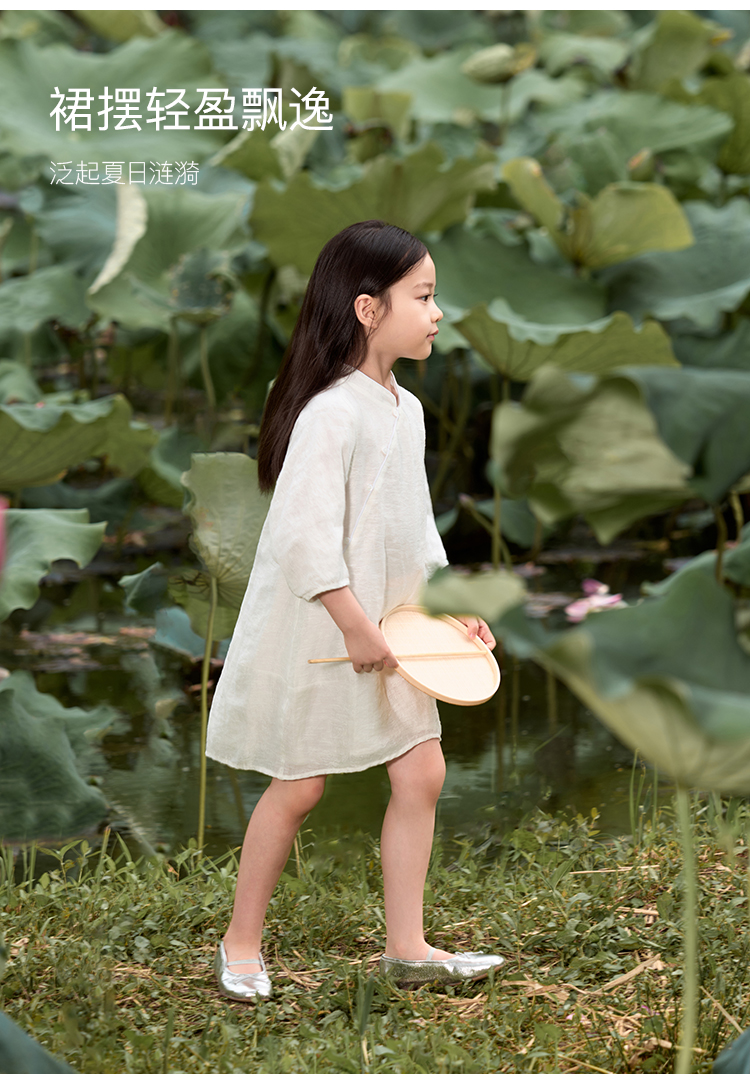 【打折】【马克珍妮 中国风】夏装新款女童麻料提花O型连衣裙220502